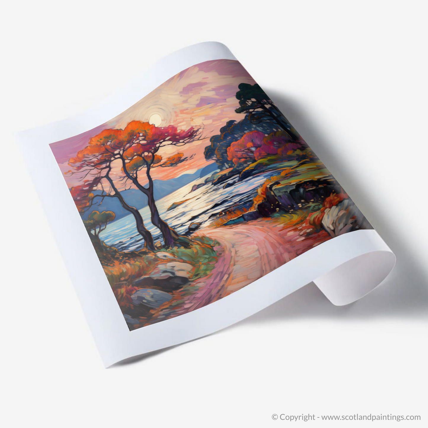 This print radiates with an enchanting colour palette that brings a piece of the wild Scottish landscapes into your space. Ideal for those who wish to be reminded of the untamed beauty of Scotland or to add a dash of intense, emotive colour to their surroundings, this piece is a testament to nature's grandeur, as seen through the eyes of an artist captivated by the fervour of Fauvism.