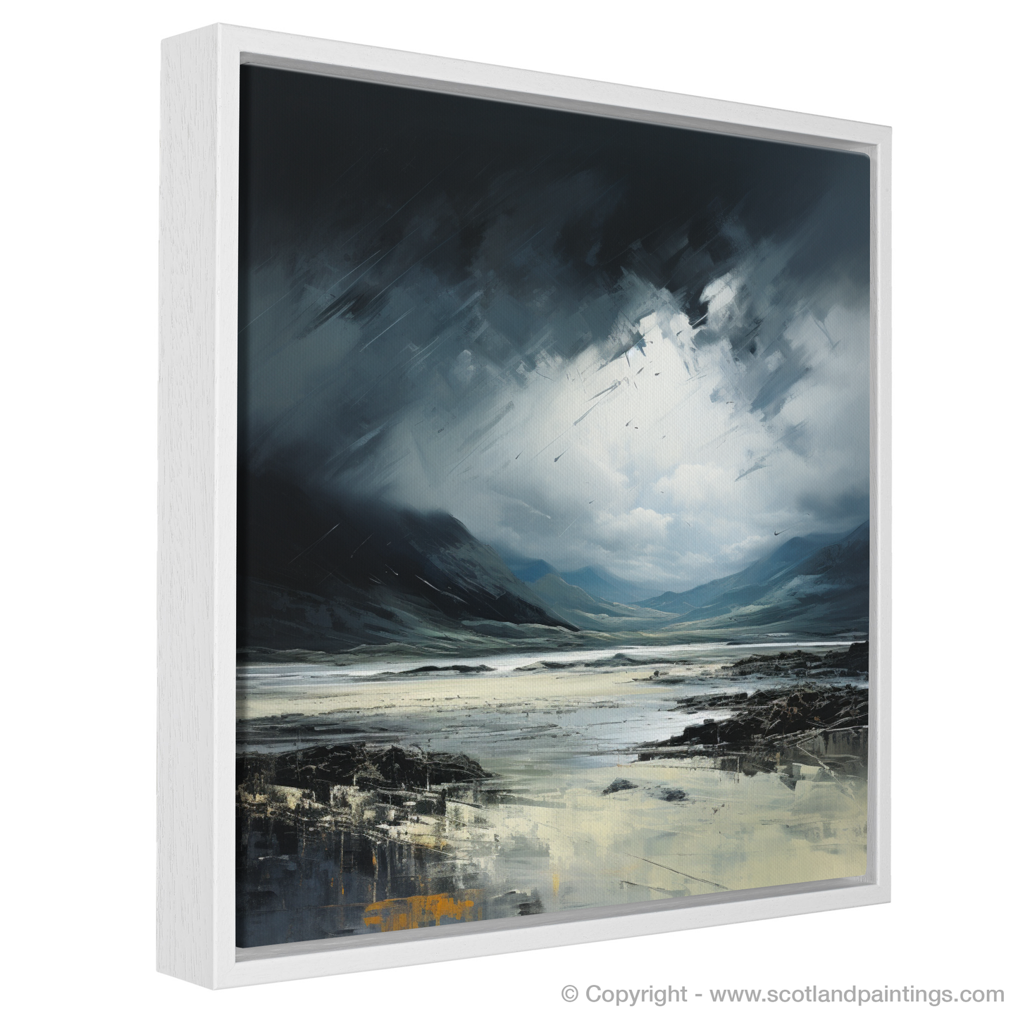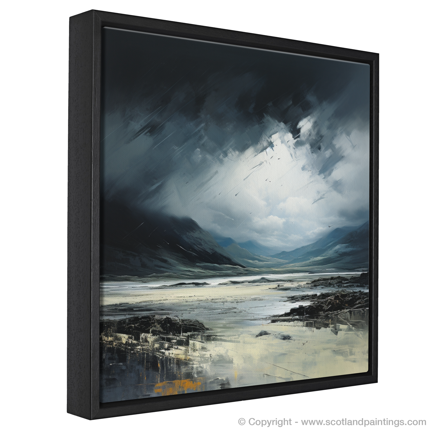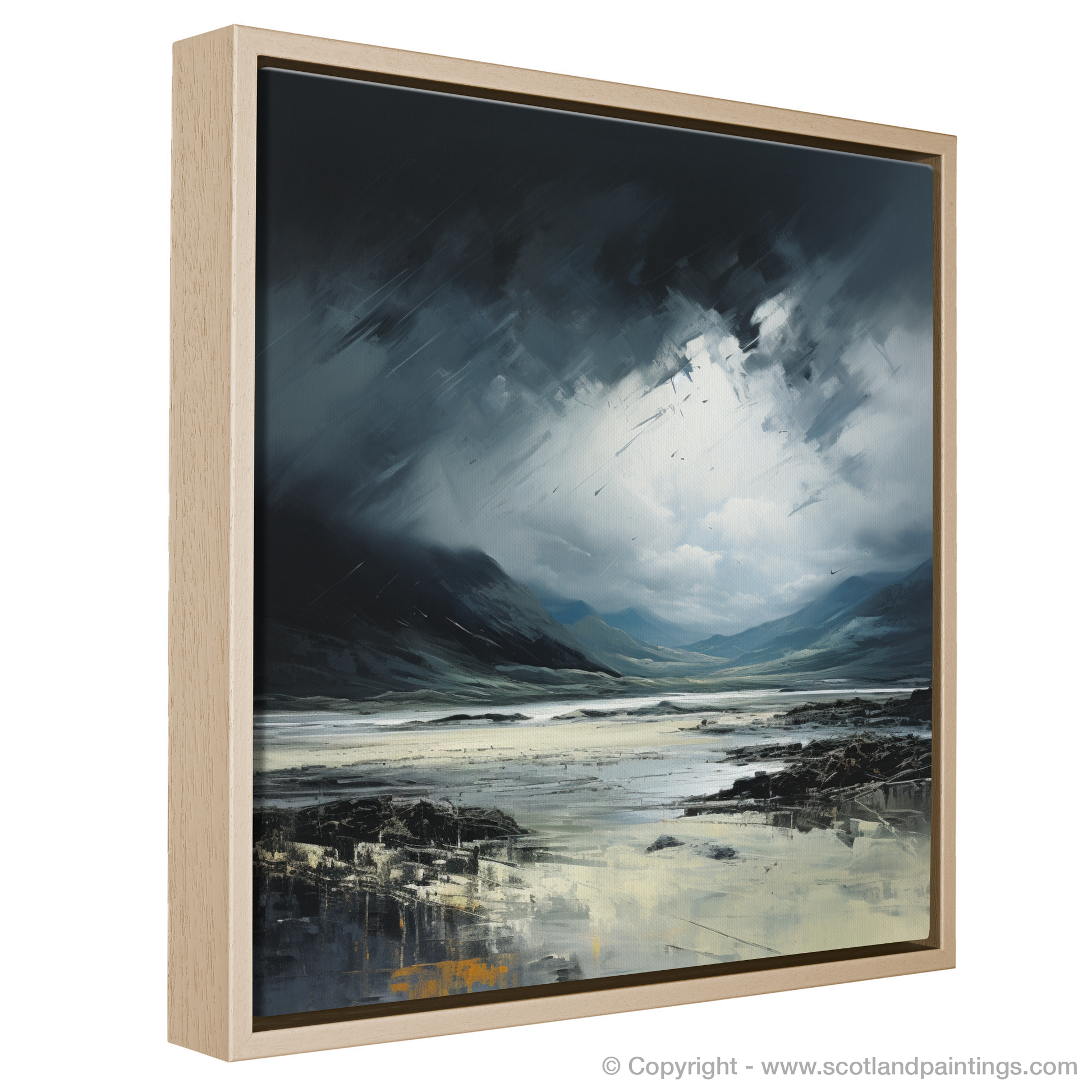 Adding to the overall impact, fine lines and deliberate imperfections mimic the wild, windswept rain, lending the piece a raw, natural energy. With each stroke, the primal force of a Hebridean storm is felt, leaving the viewer with a sense of awe for the untamed Scottish landscape.