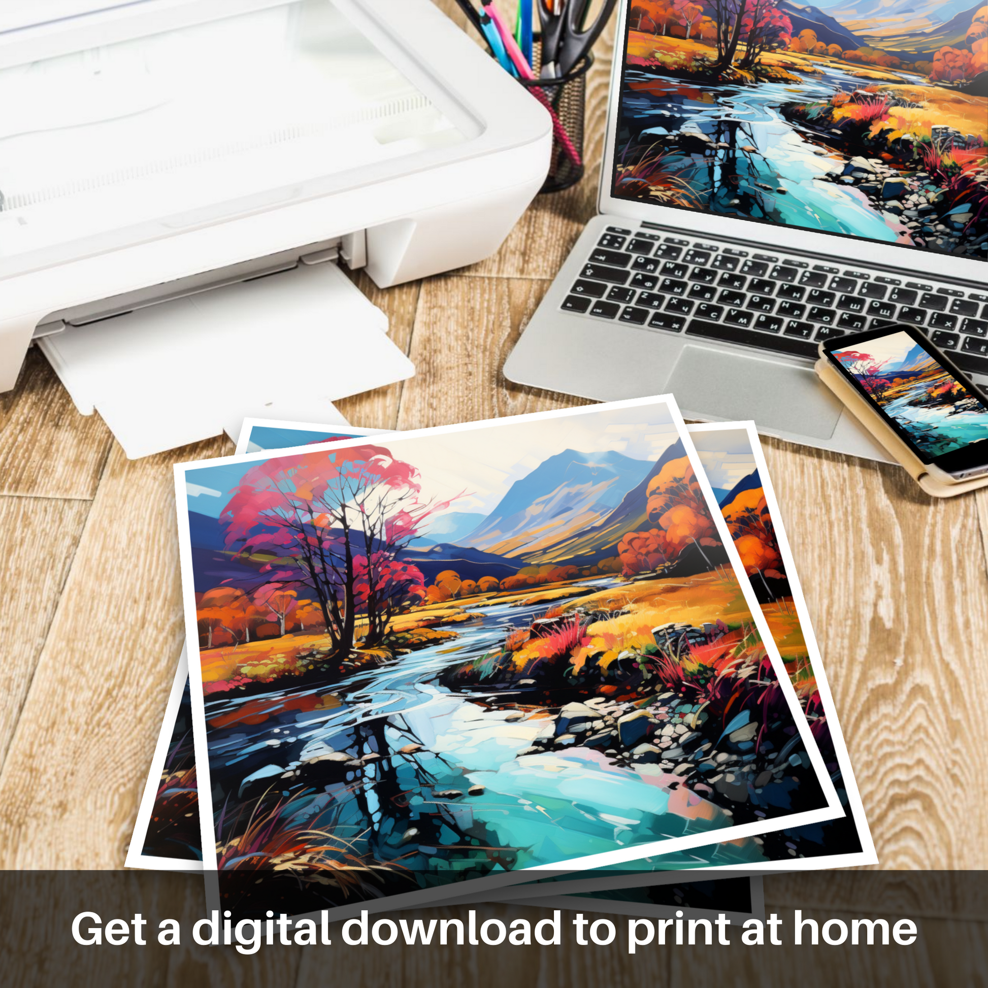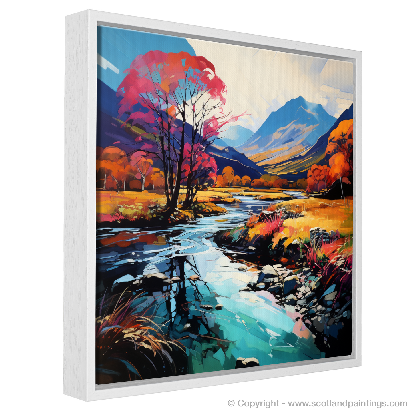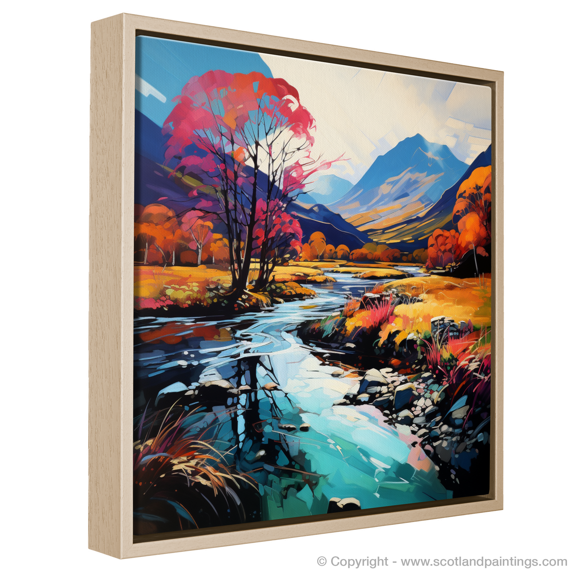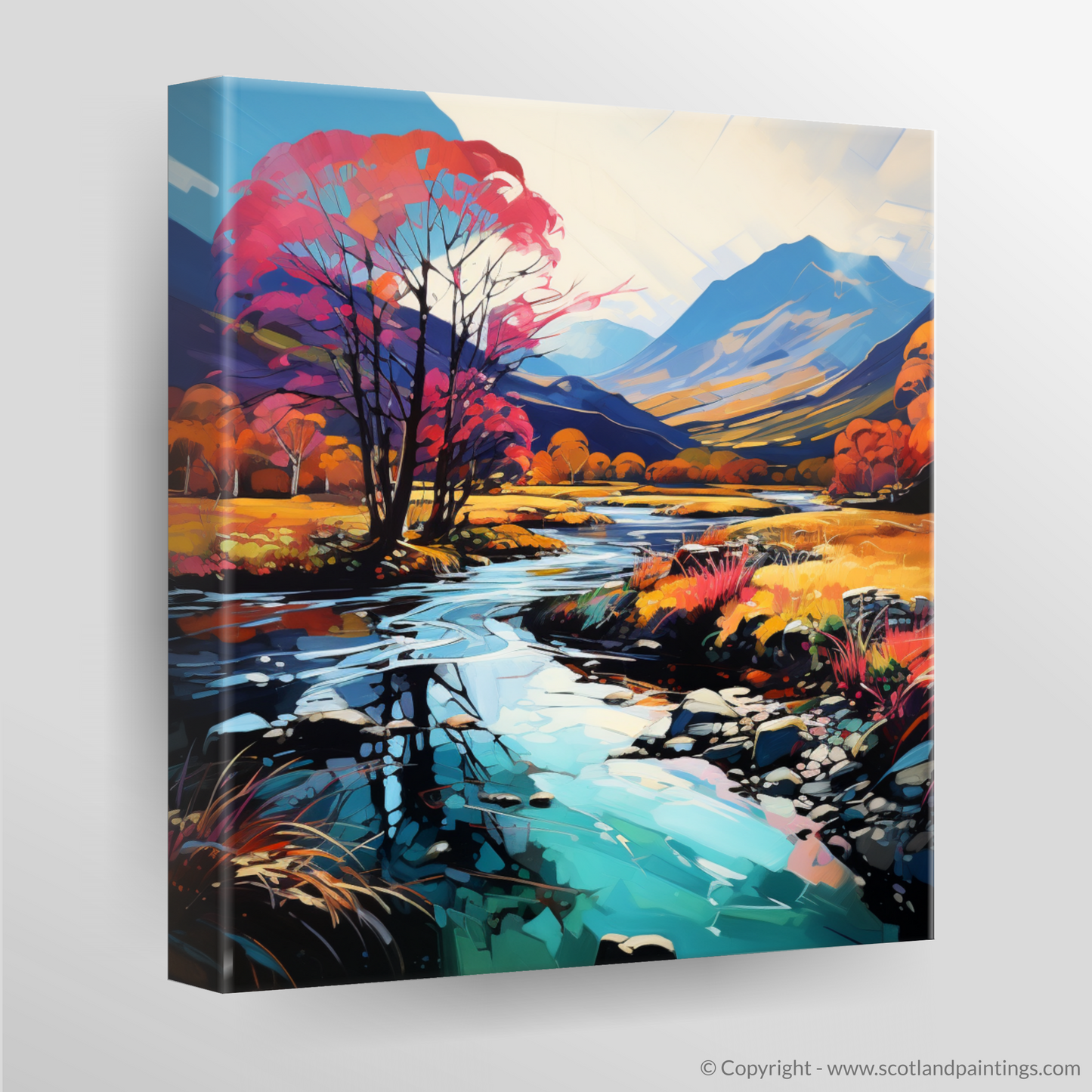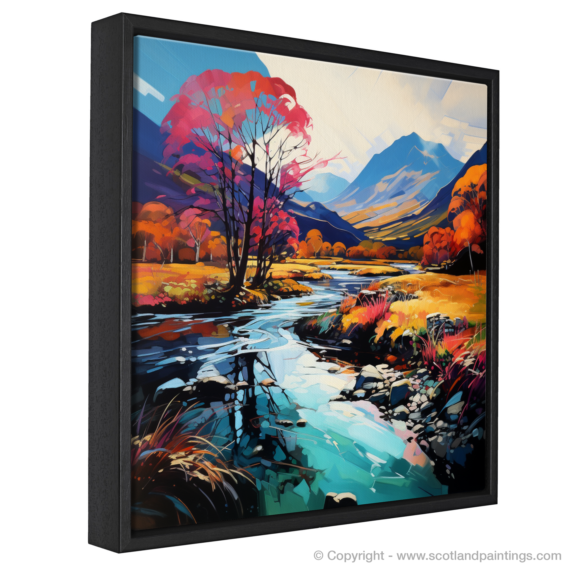 Immerse yourself in a vision of nature where colours riot and the wild Scottish landscape is reimagined through the vibrant lens of Fauvism. This captivating print, part of our 'Glencoe' collection, presents a bold interpretation of the serene River Coe reflections, a spectacle that kindles the imagination and enchants the soul.