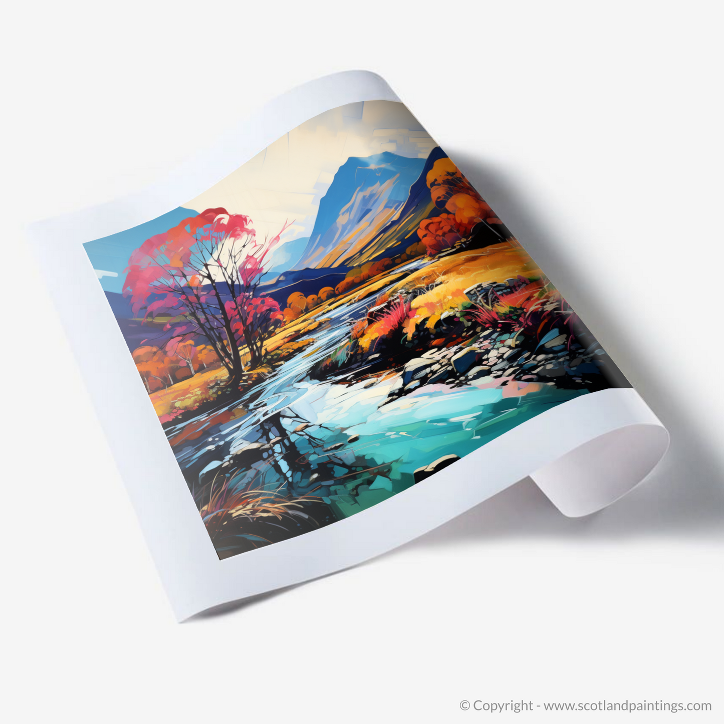 This print offers more than just a view; it serves as a window into a world where emotion takes precedence over realism, and the raw beauty of Glencoe is infused with a dreamlike vibrancy. It is an invitation to lose oneself in the wild romance of the Scottish landscape, as seen through the eyes of an artist who dares to dream in colour.