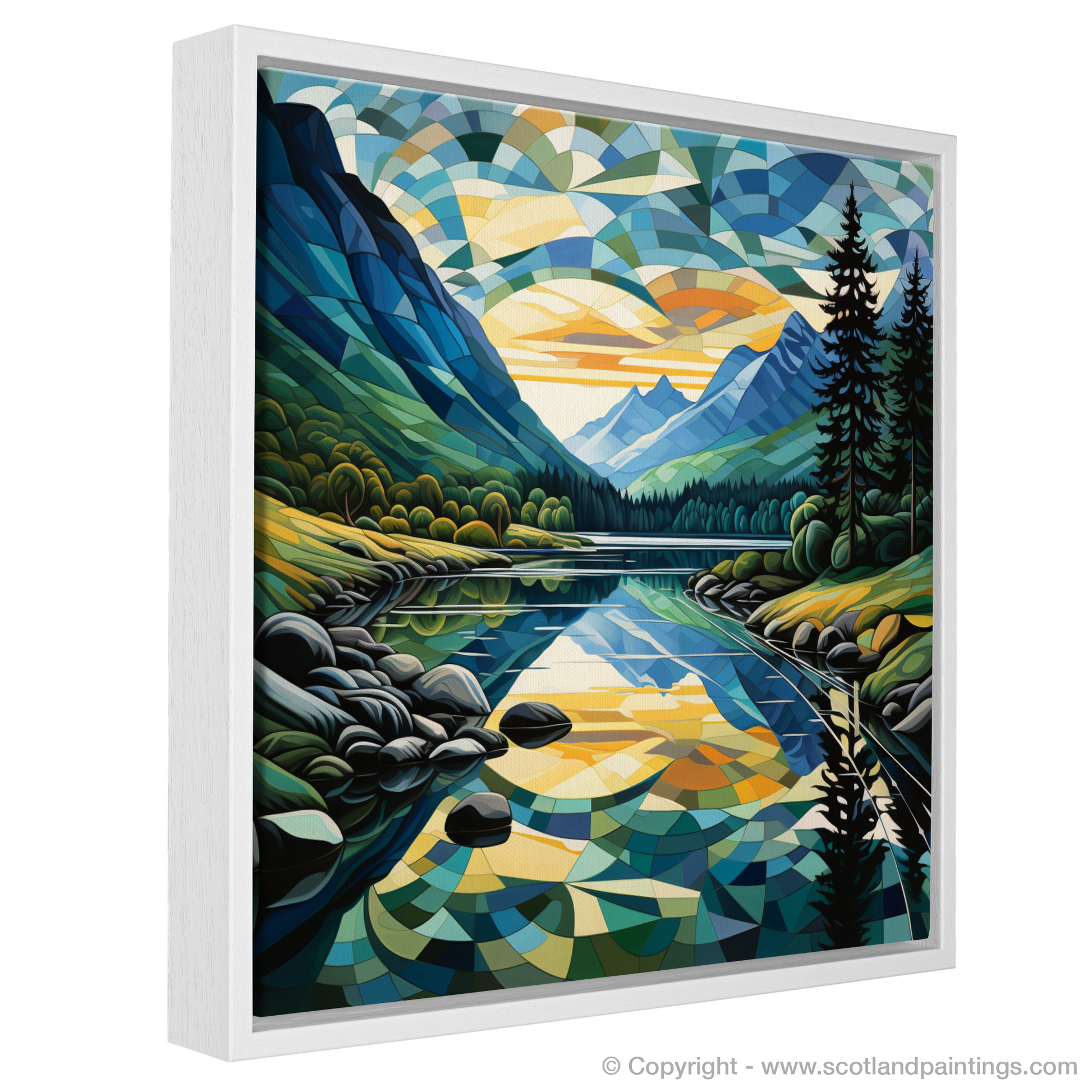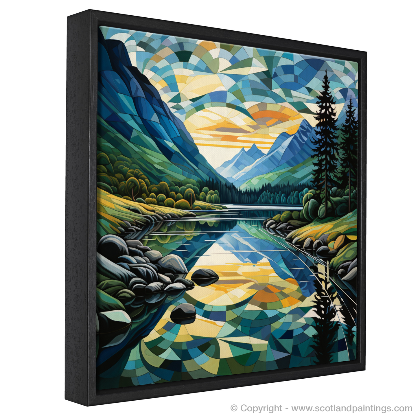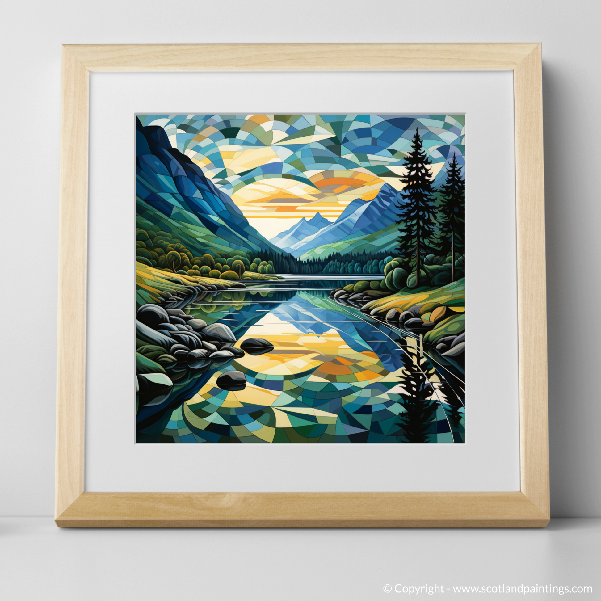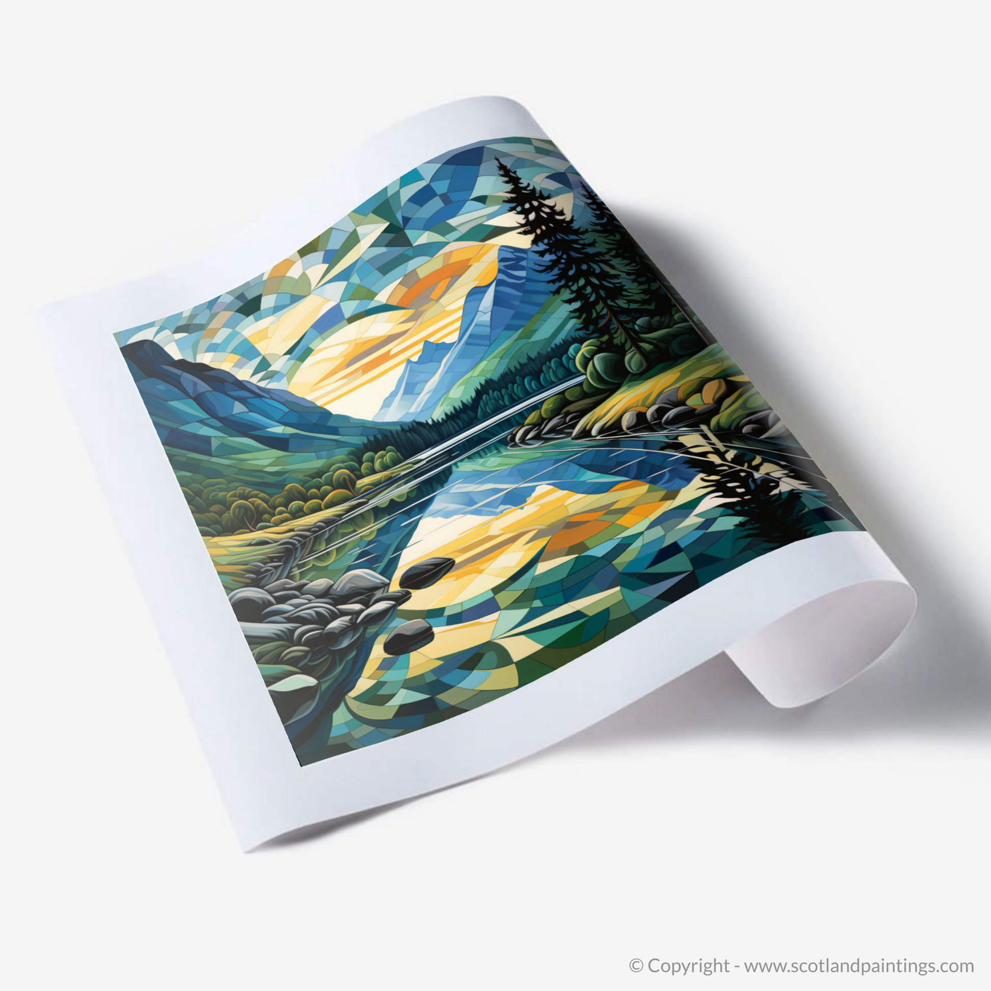 Embrace a symphony of geometric splendour with this captivating print, a contemporary homage to the serene beauty of the River Coe in Glencoe. Behold a mosaic of angular shapes that converge to create a vivid and expressive landscape, where the fluidity of natural reflection meets the discipline of cubist abstraction.