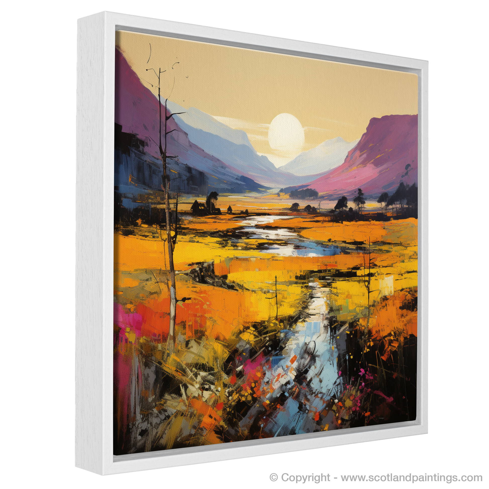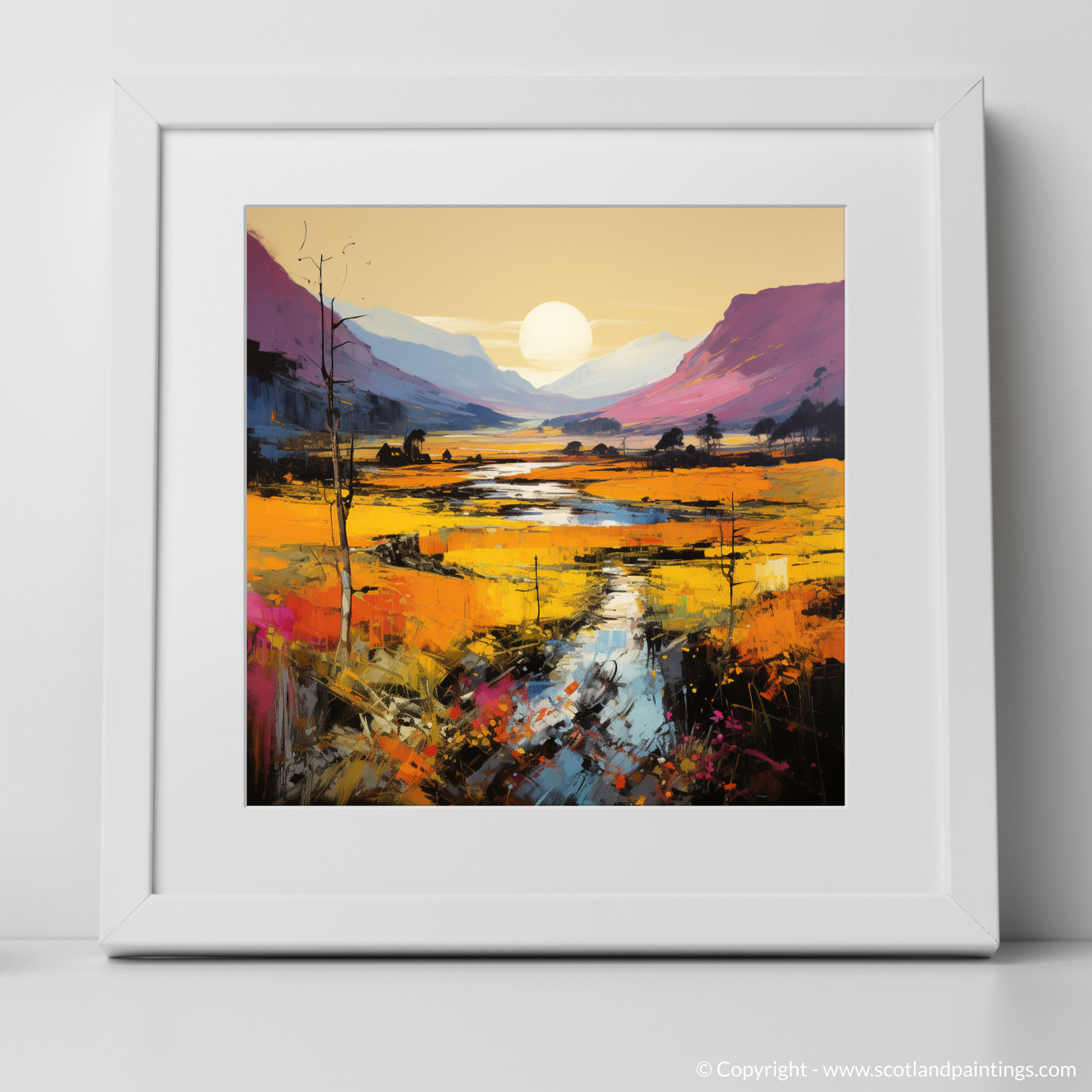 Immerse your space in the vibrant energy of Autumn with this exquisite print, capturing the essence of Glencoe's picturesque scenery under the enchantment of the season's palette. As the centrepiece of the 'Glencoe' collection, this artwork radiates with the warmth of autumnal hues juxtaposed against a backdrop of tranquil mountains shrouded in a soft purple haze.