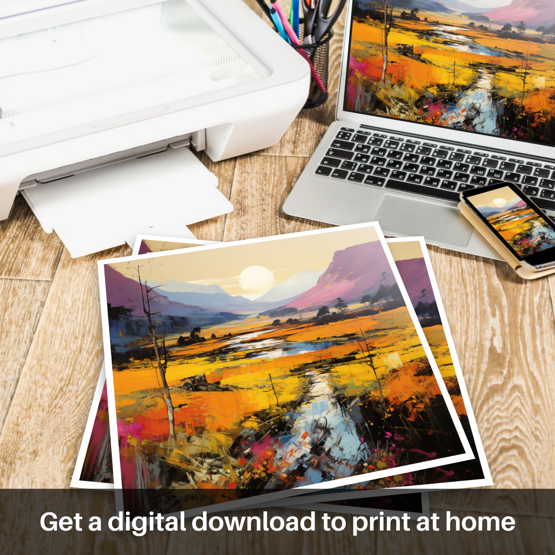 This print will serve as a perpetual homage to the fiery spirit of autumn, offering an ever-present window to the majestic beauty of Glencoe in the comfort of your own home or office. Add this vibrant piece to your décor and let the symphony of autumnal vibrancy and pop art flair reflect your appreciation for nature's grand spectacle and artistic innovation.