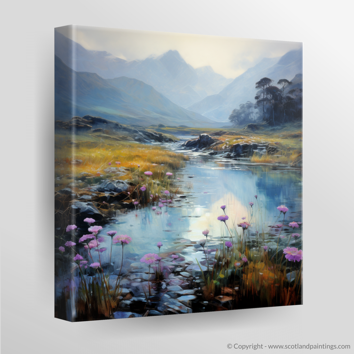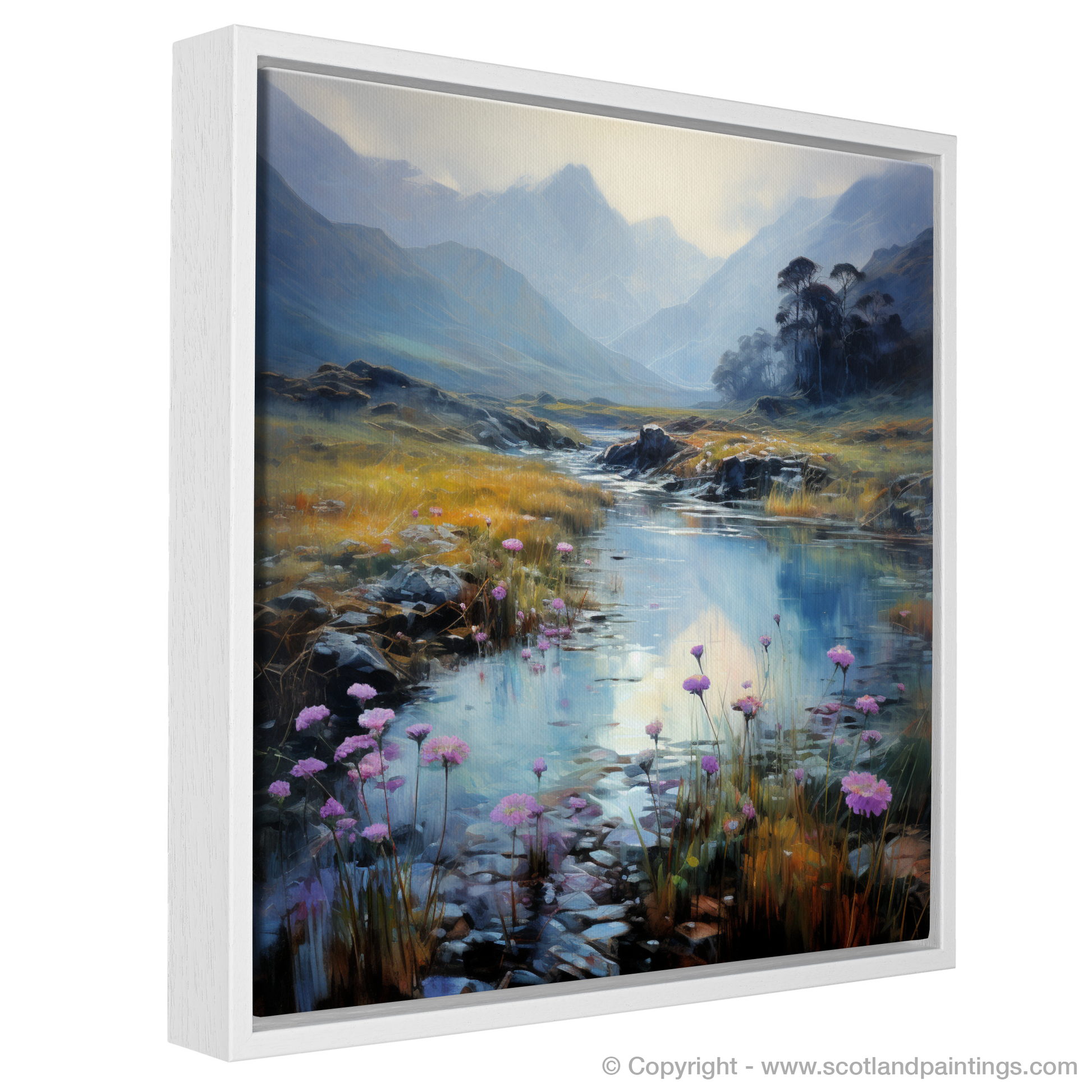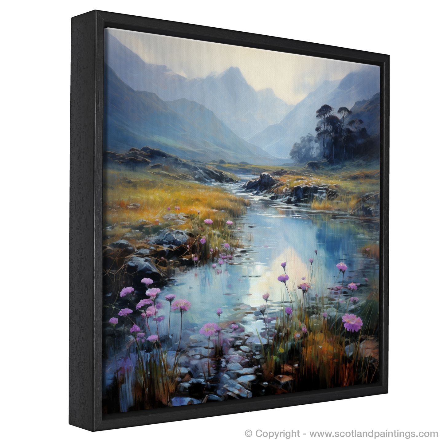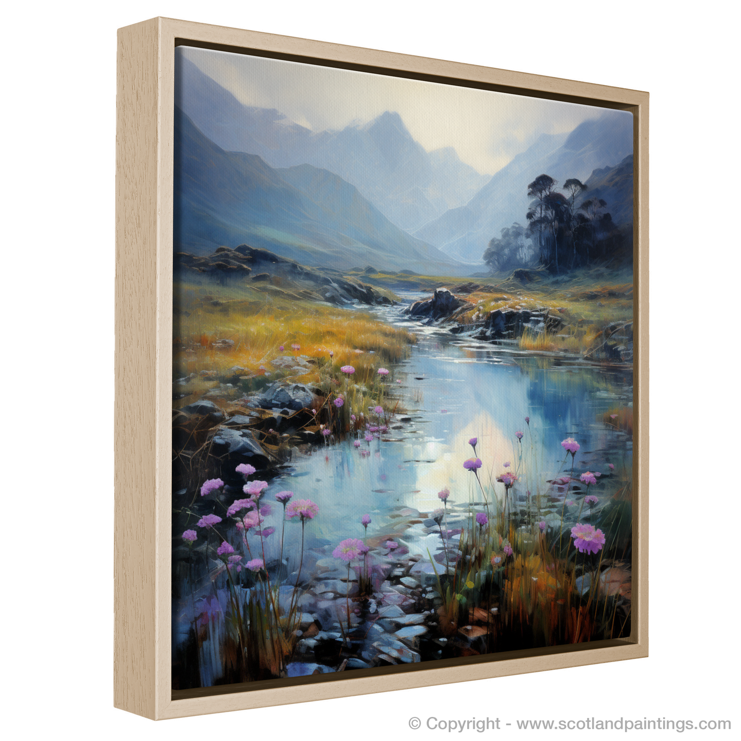 Capturing the ethereal beauty of the Scottish Highlands, this exquisite print taps into the Art Nouveau ethos, blending natural forms with elegant, stylised designs. Gentle morning light filters through the mist, casting a soft glow over the rugged landscape of Glencoe, effortlessly guiding the eye through the serene vista of undulating hills and tranquil waters.