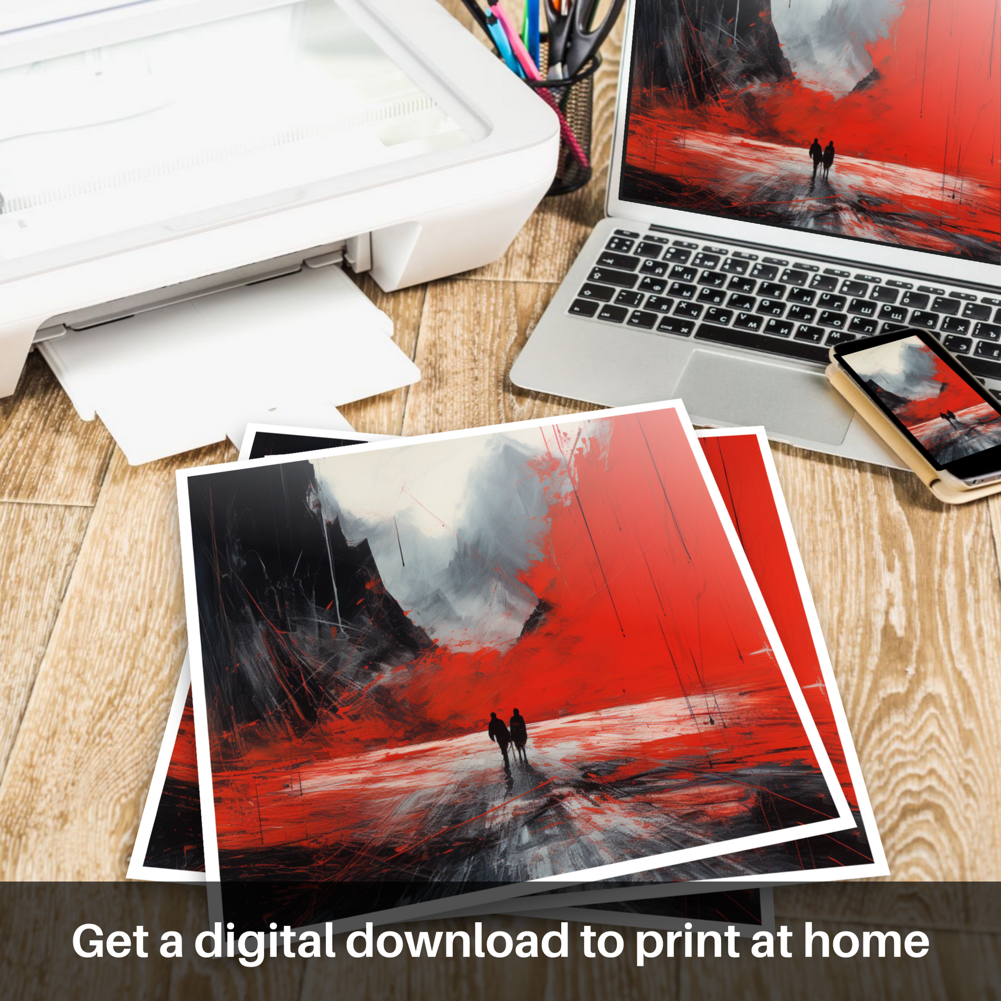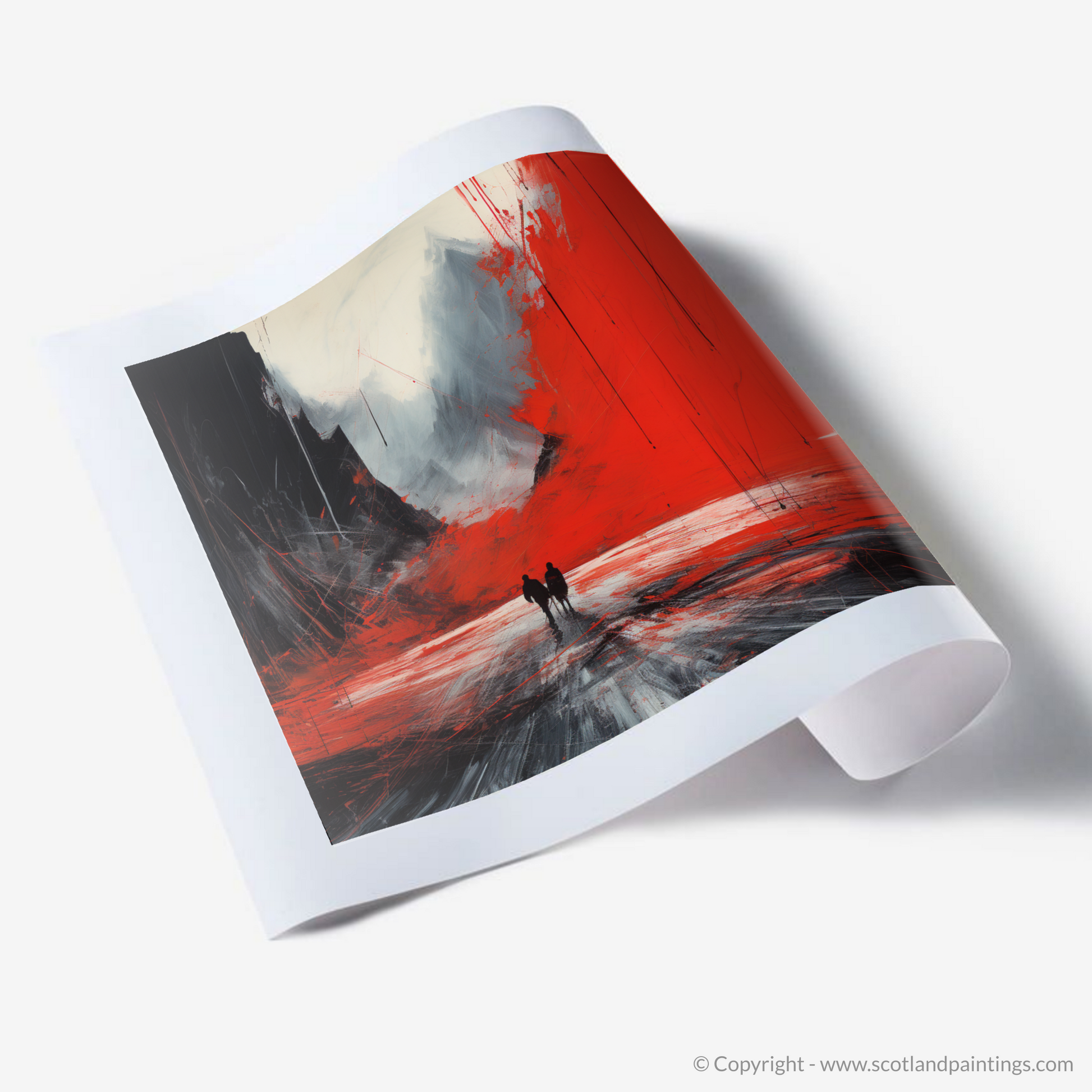 This abstract depiction is not only an homage to the indomitable spirit of mountaineers but also a metaphor for life's arduous journeys and the beauty that can be found within them. It's an invitation to interpret the interplay of form, colour, and texture in your own way, bringing a piece of the Highlands' enigma into your space.