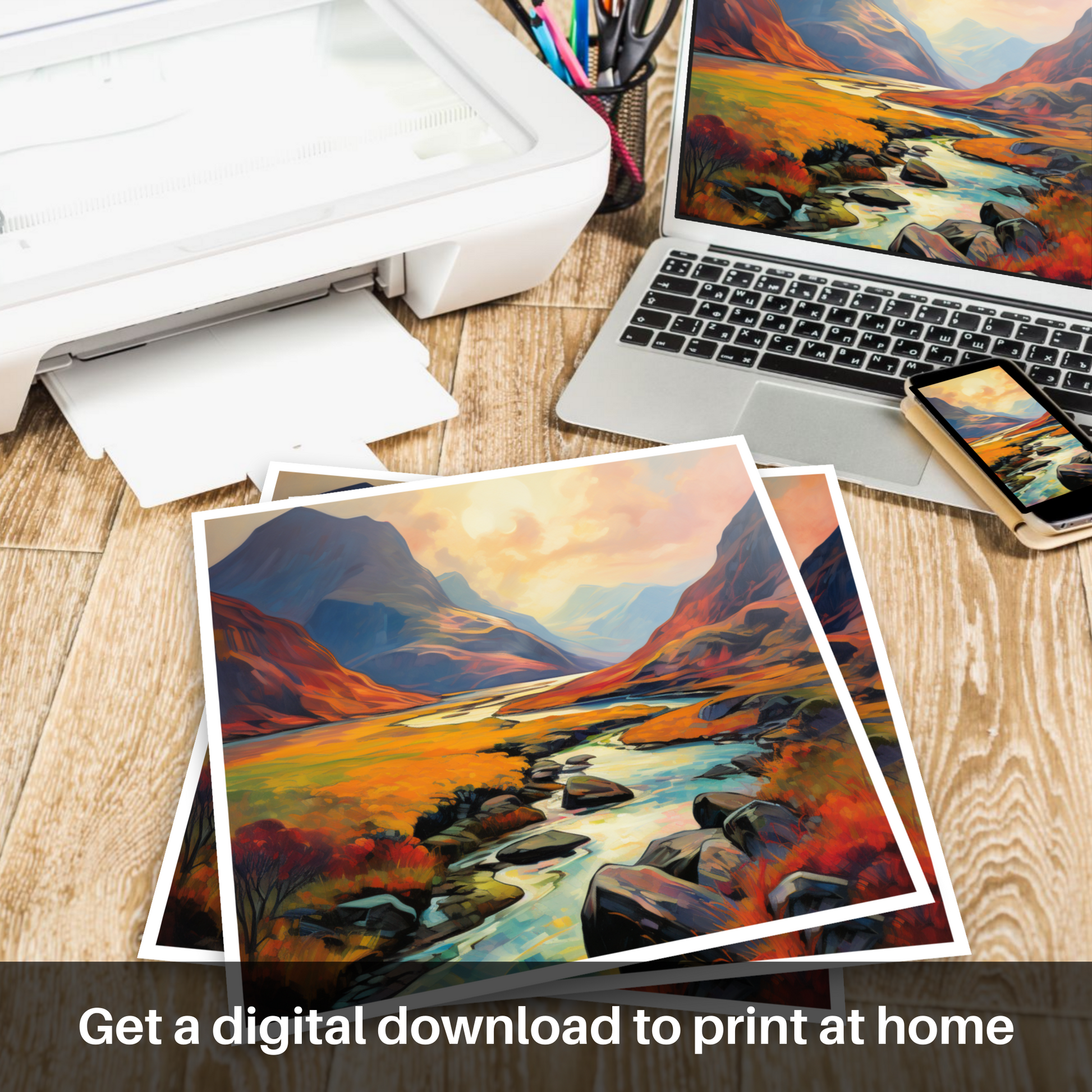 This print promises to be more than mere wall decor; it is an affirmation of life and an impassioned tribute to the wild serenity of one of Scotland’s most iconic settings. It holds the power to transport, to uplift, and to vividly paint an eternal highland autumn within the confines of your own space.