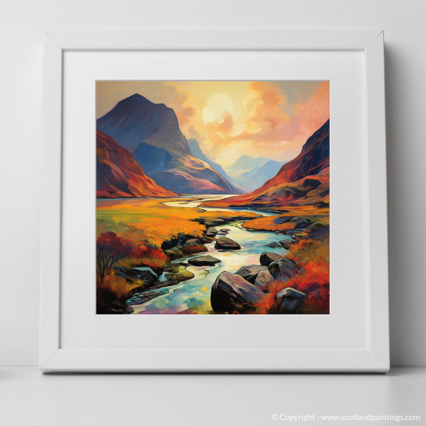 Embrace the rhapsody of vibrant hues and passionate brushwork that evoke the raw beauty of Glencoe's Three Sisters shrouded in mist. This exquisite print vibrates with the bold colour palette and dynamic forms characteristic of Fauvism, inviting the viewer into a world where nature’s majesty is intensified through an exuberant spectrum of colours.