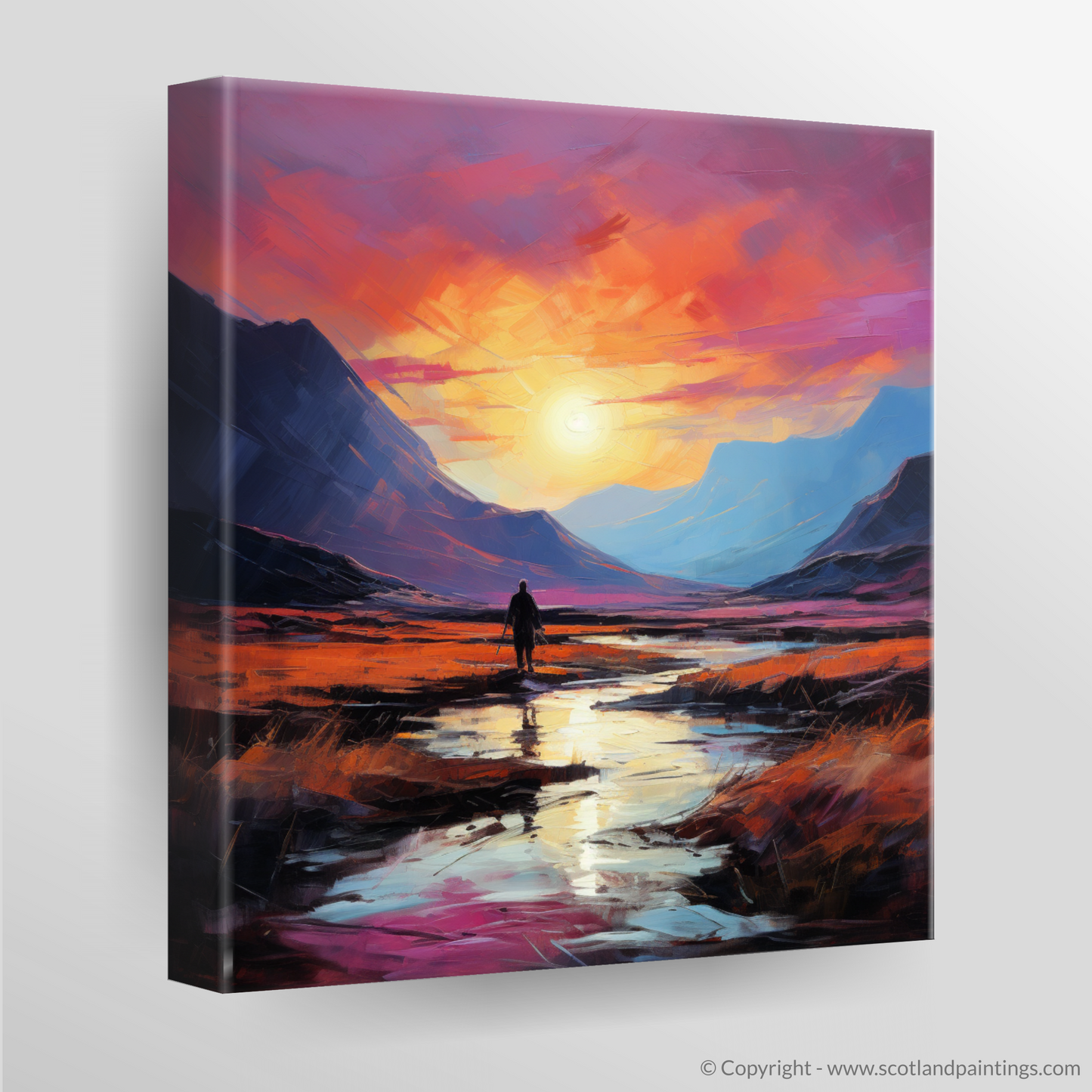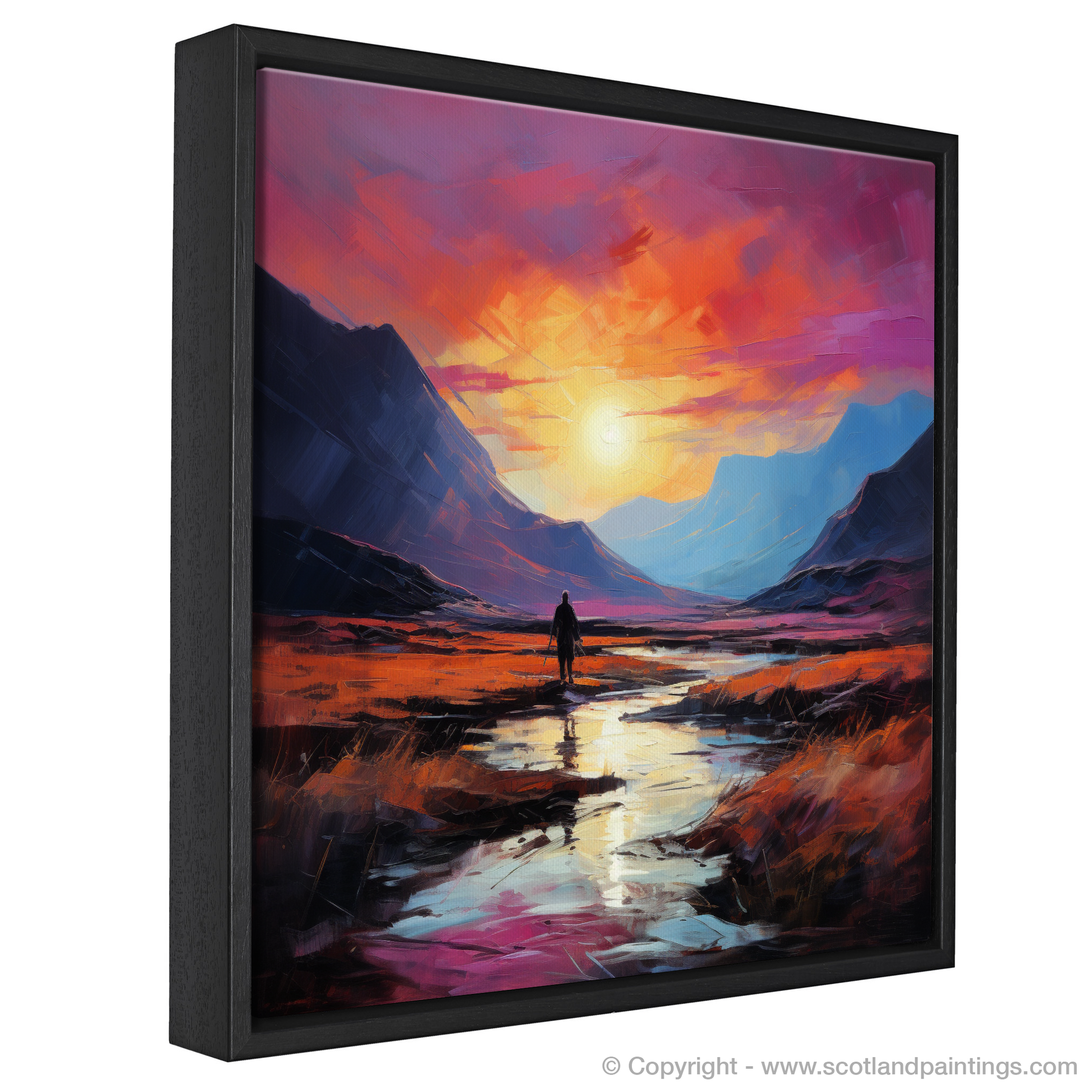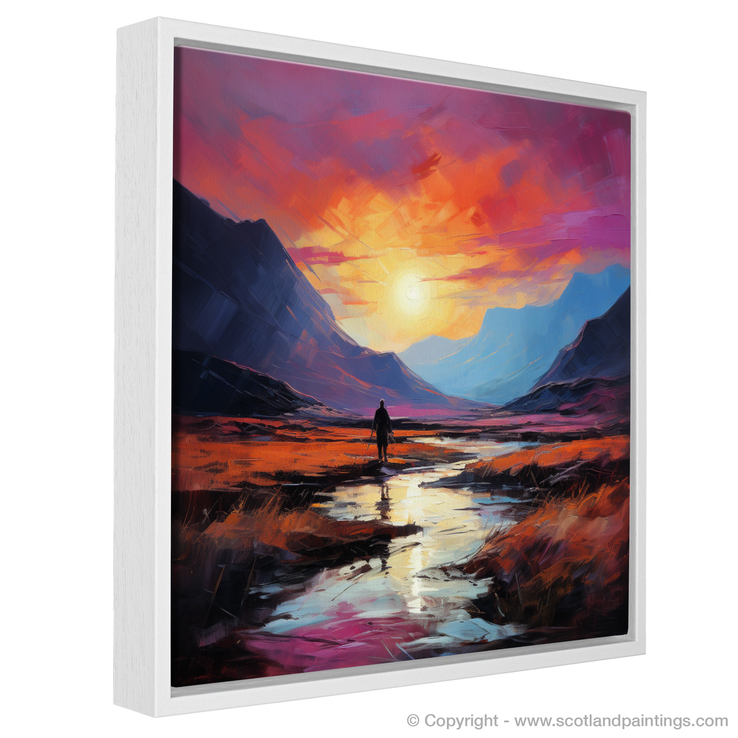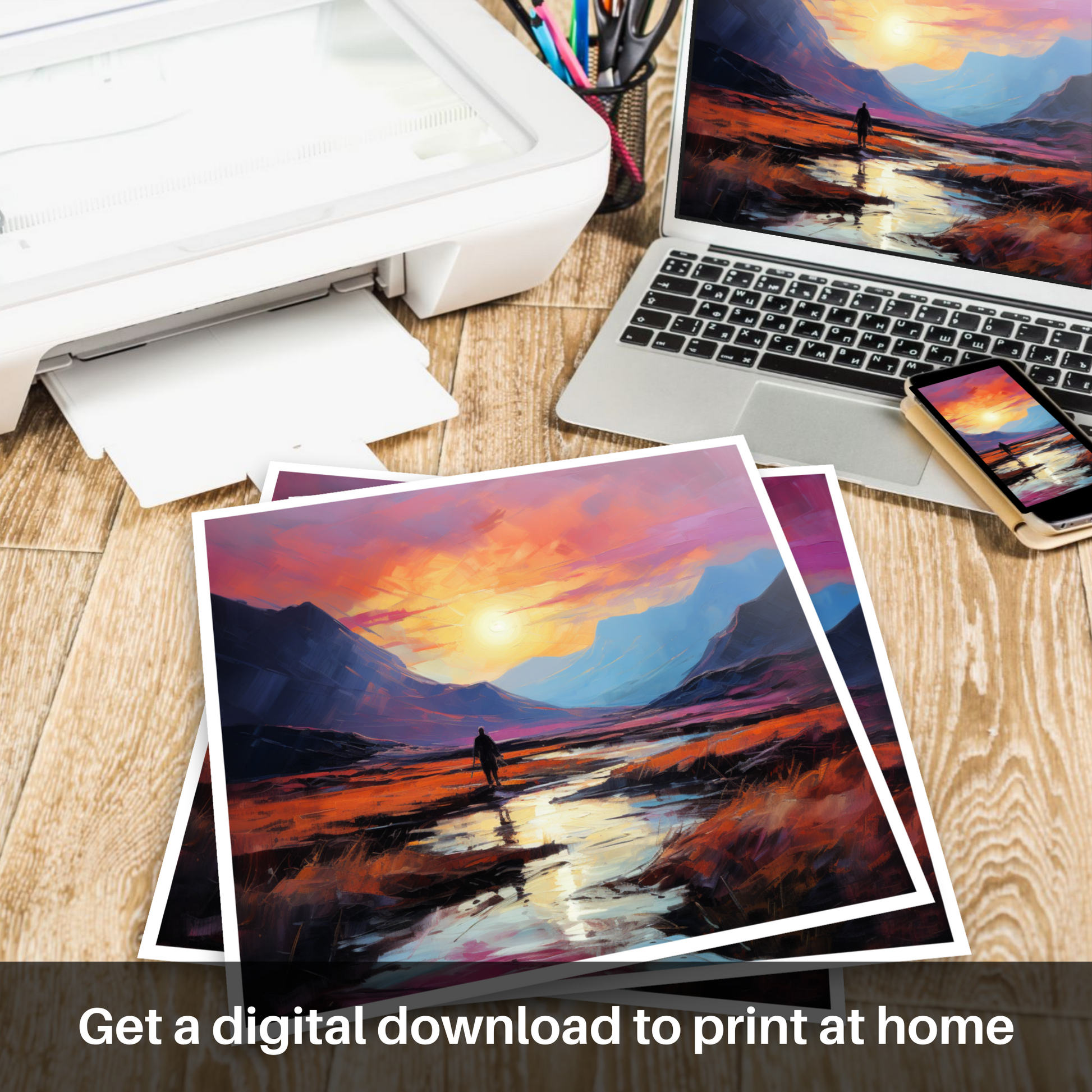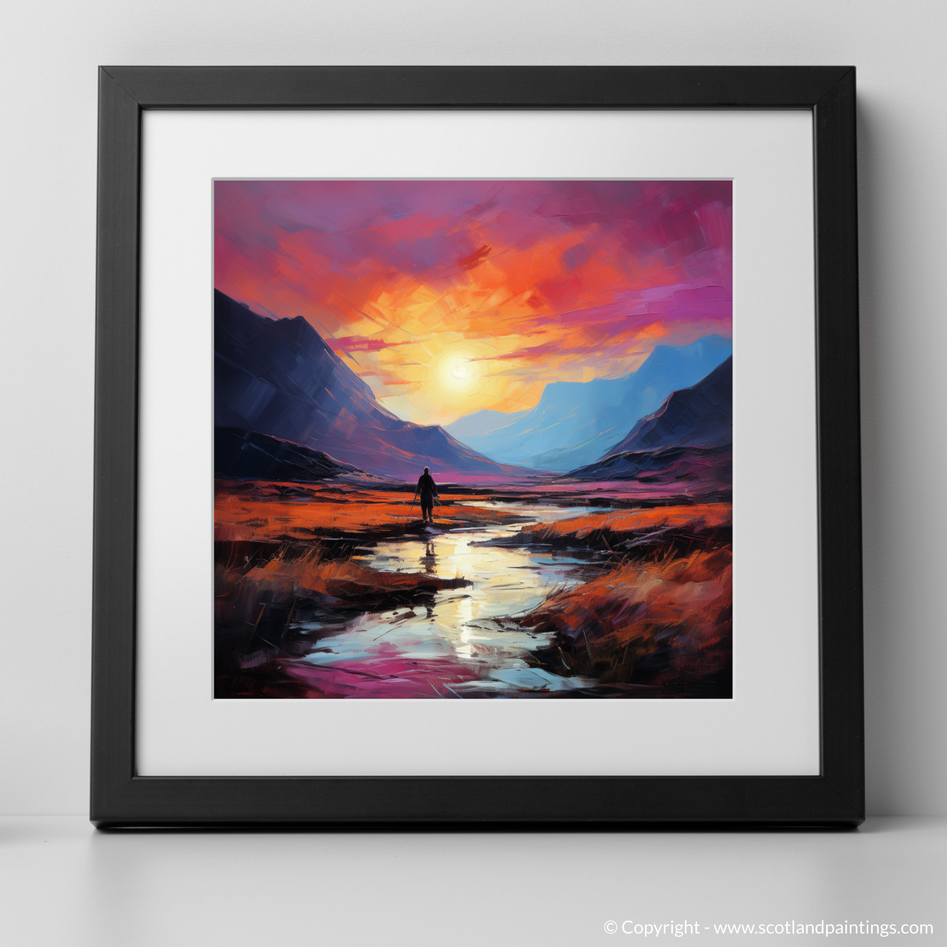This evocative print is a tribute to the untamed spirit of Glencoe, capturing the essence of its brooding landscapes bathed in the glow of dusk. It's an eye-catching celebration of colour and emotion, sure to evoke a sense of wonder and become a focal point in any collection.