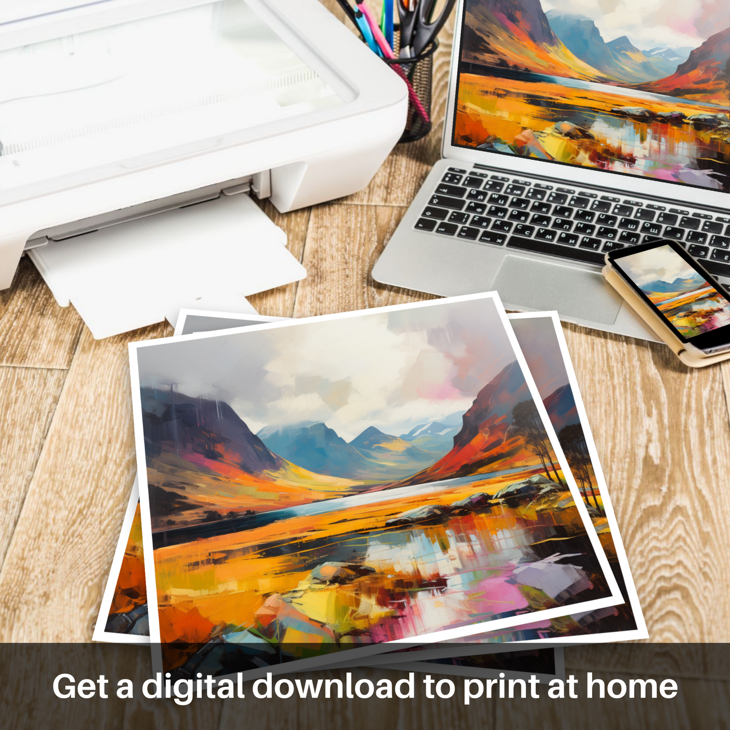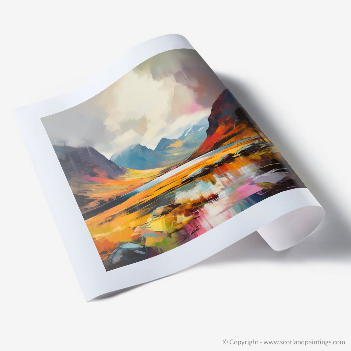 Bringing a slice of Scotland's untamed wilderness into your space, this print promises to be a focal point, drawing viewers into a landscape where reality is infused with the dreamscape of a paintbrush. It is an invitation to lose oneself in the transcendent moments when nature reveals her true splendour.
