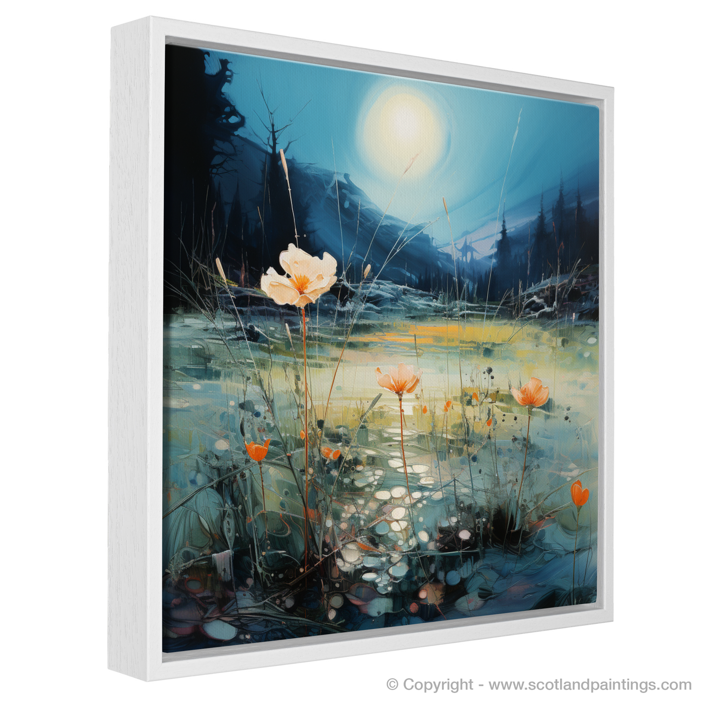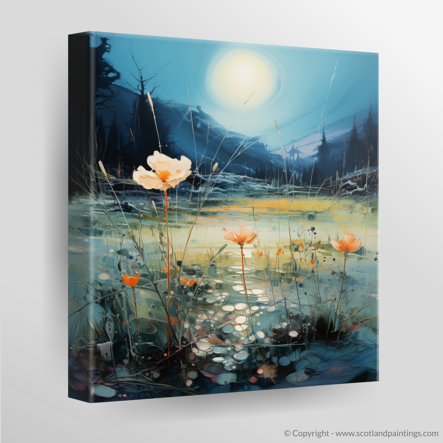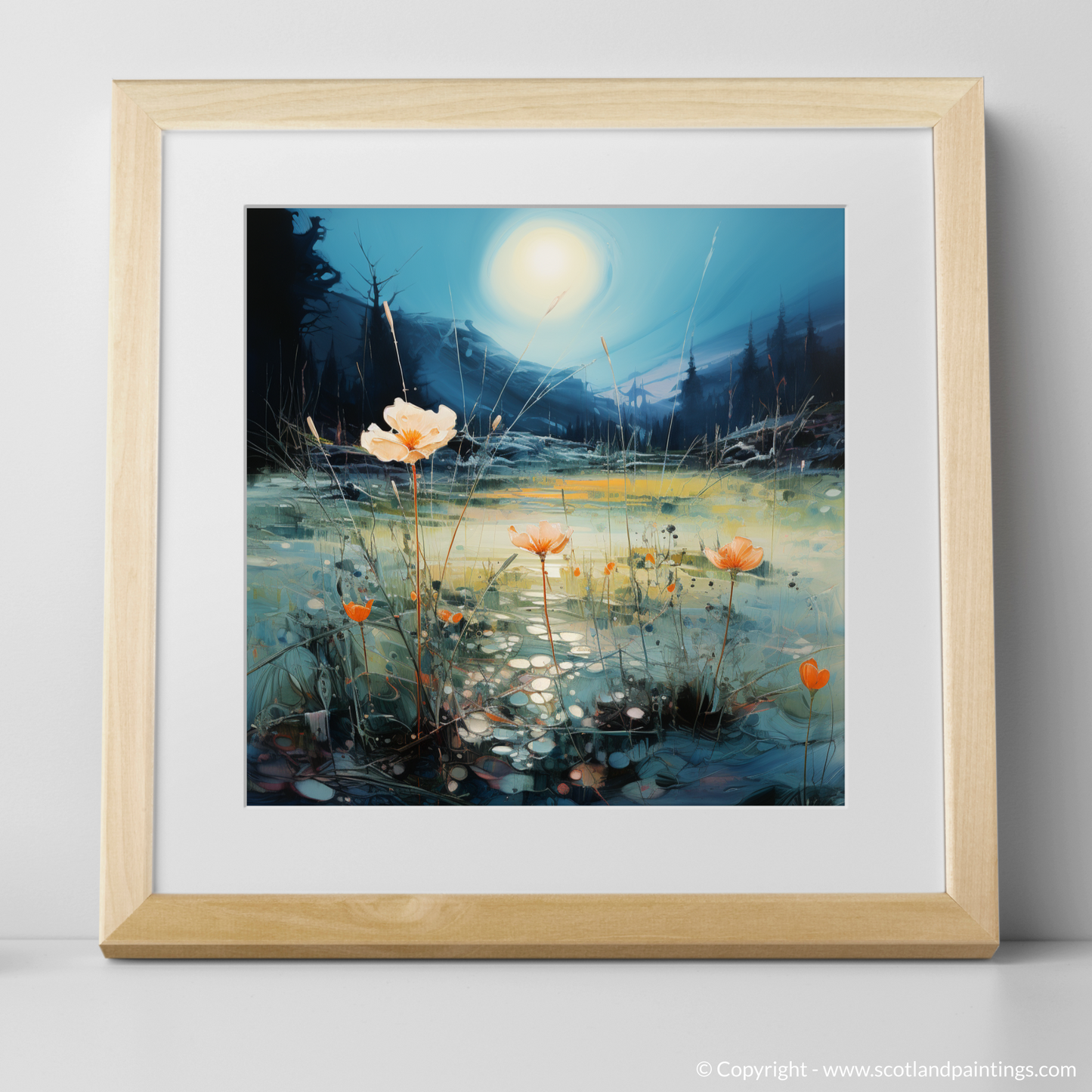 Step into a dreamscape where nature's delicate beauty meets the profound depths of the surreal in this enchanting print from our 'Glencoe' collection. A whimsical portrayal of tormentil—a wildflower native to the Highlands—unfolds against a backdrop that whispers the untold mysteries of Glencoe at the break of dawn.