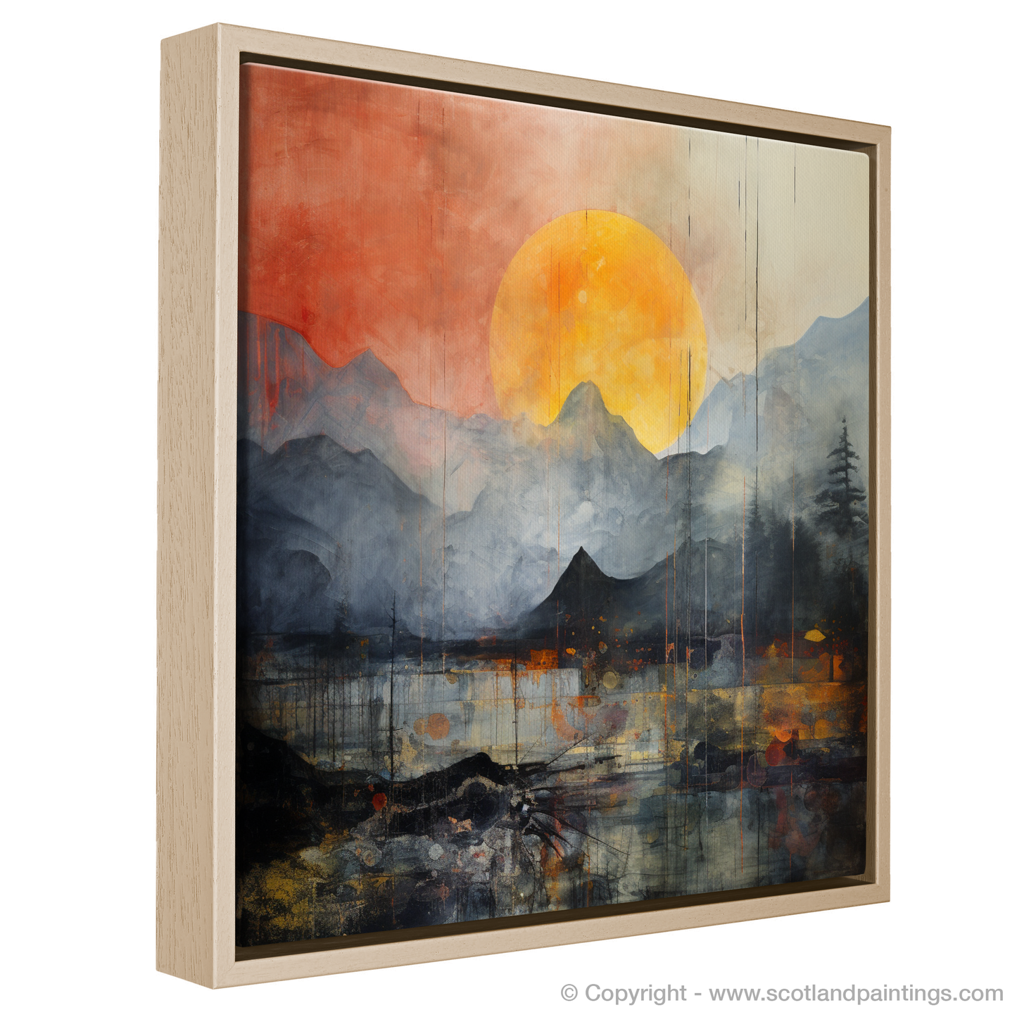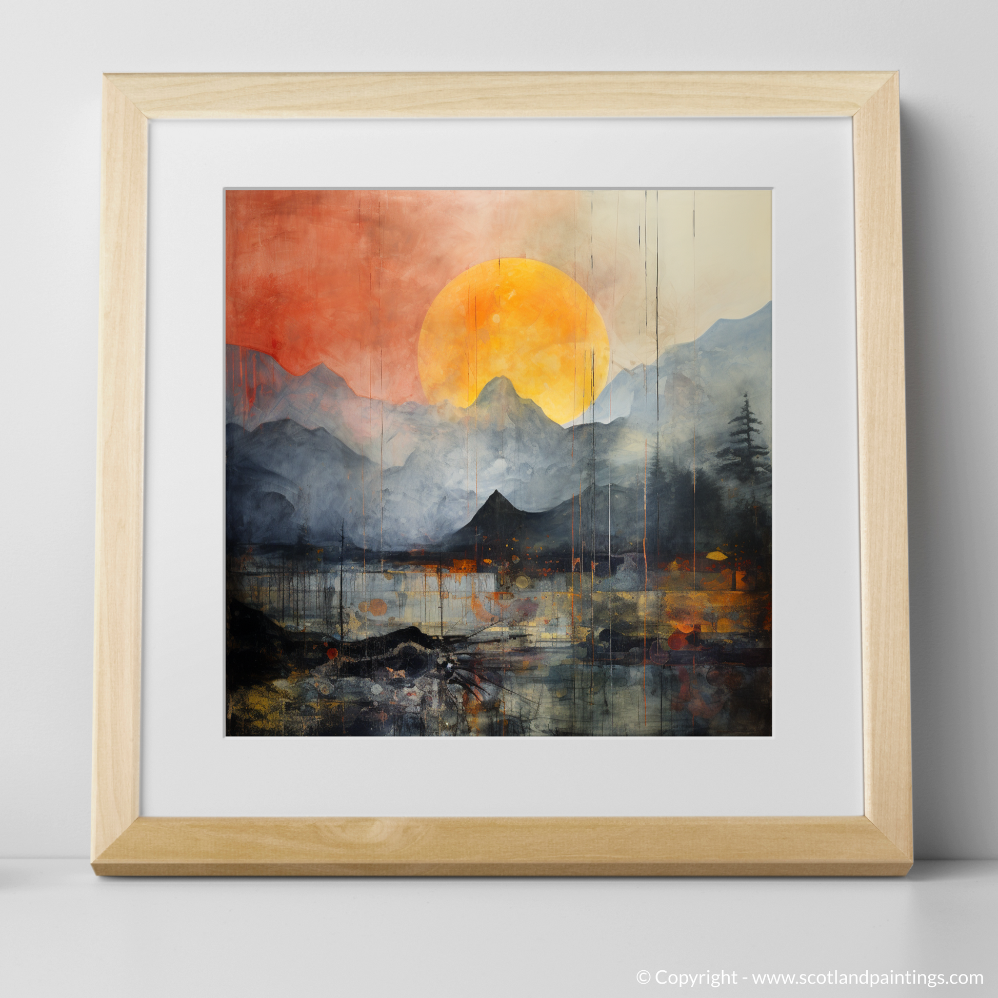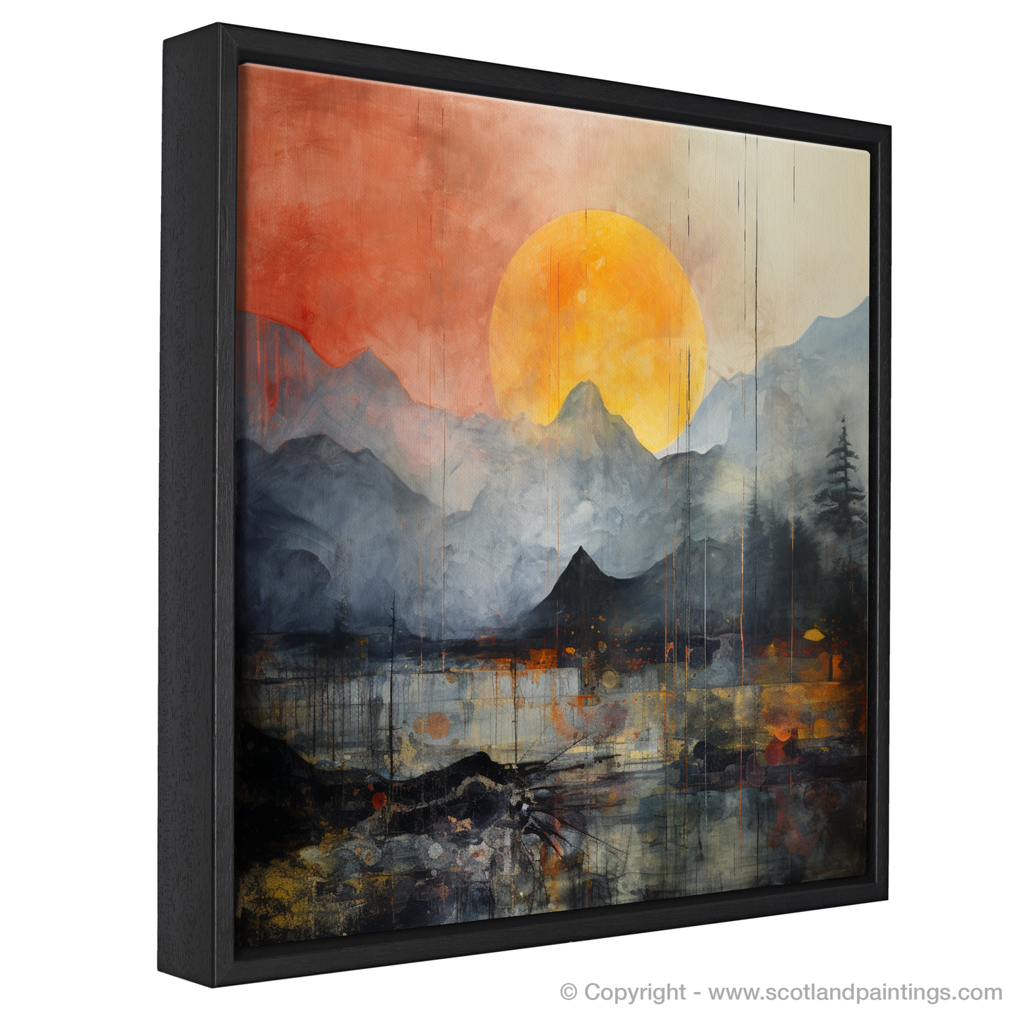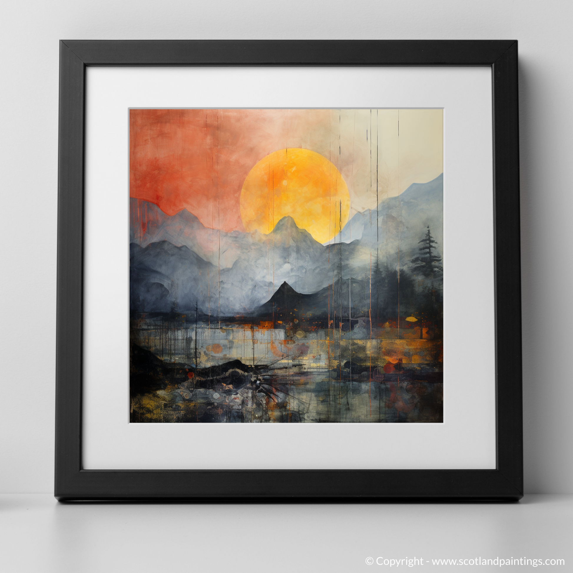 Immerse yourself in the atmospheric spectacle gracing your wall, an evocative piece that captures the ethereal beauty of Glencoe shrouded in rolling fog. Set against a colour palette that merges moody shades of grey with vibrant oranges and fiery reds, this print showcases a visually arresting interpretation of the natural landscape.