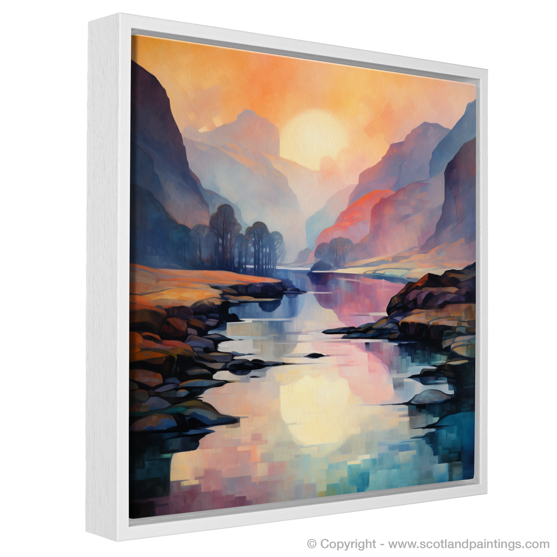 As dawn unfurls its gentle touch over Glencoe, a symphony of abstract hues captures the serene majesty of mist rolling across a calm river. This exquisite print, a part of our revered 'Glencoe' collection, encapsulates the raw beauty of nature wrapped in a cloak of ethereal light and colour.