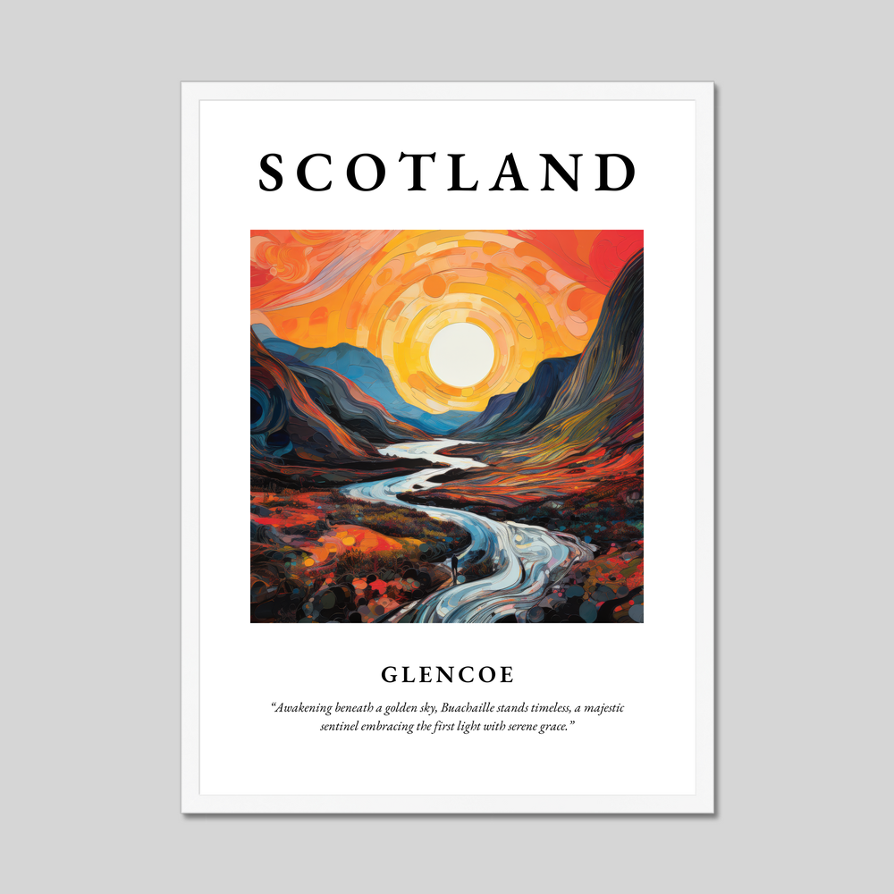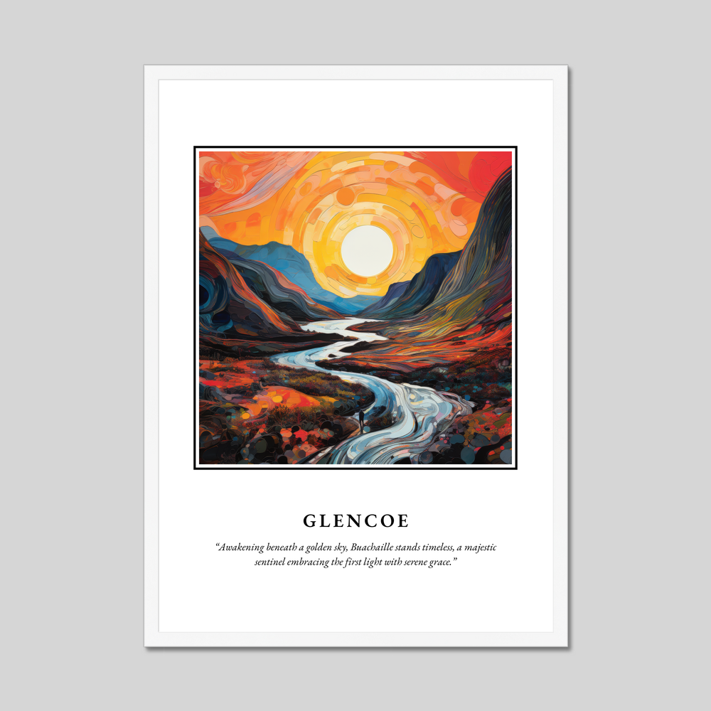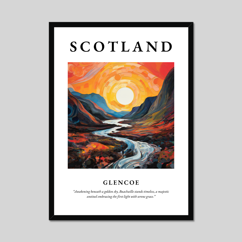 This poster embodies the essence of Glencoe, capturing the spirit of a land where legends linger and nature reigns supreme. Whether you've walked its paths, dreamt of its horizons, or simply cherish the wild beauty of Scotland, this artwork serves as a cherished memento of a place that stands as a testament to nature’s enduring grace.