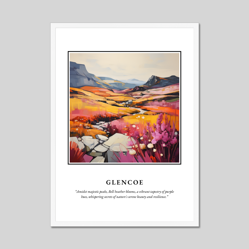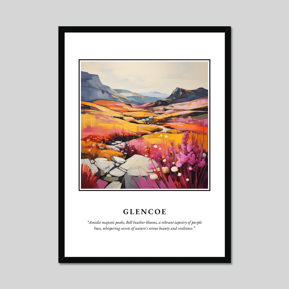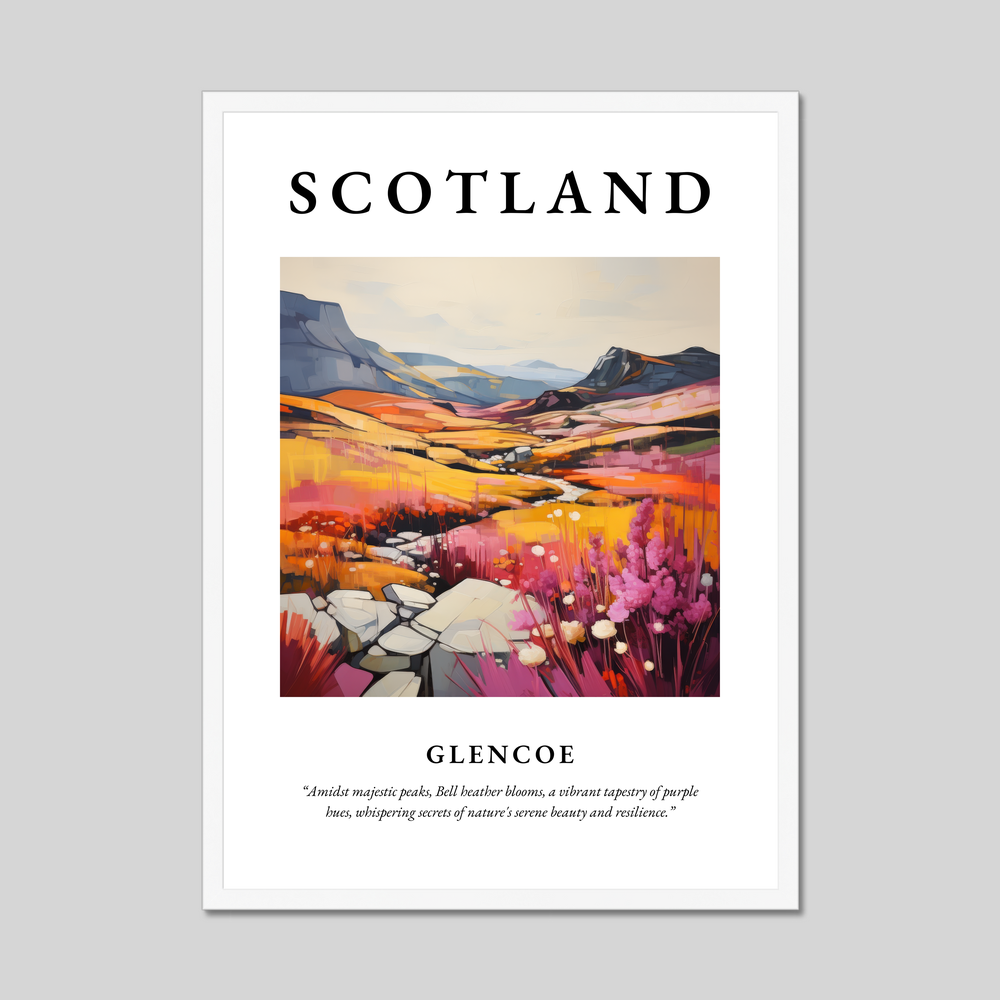 Whether you’ve wandered through its serene trails or simply dreamt of its allure, this poster captures the spirit of Glencoe — a place where nature whispers its ancient secrets and resilience. With this captivating framed print, bring a piece of Scotland's soul into your home.