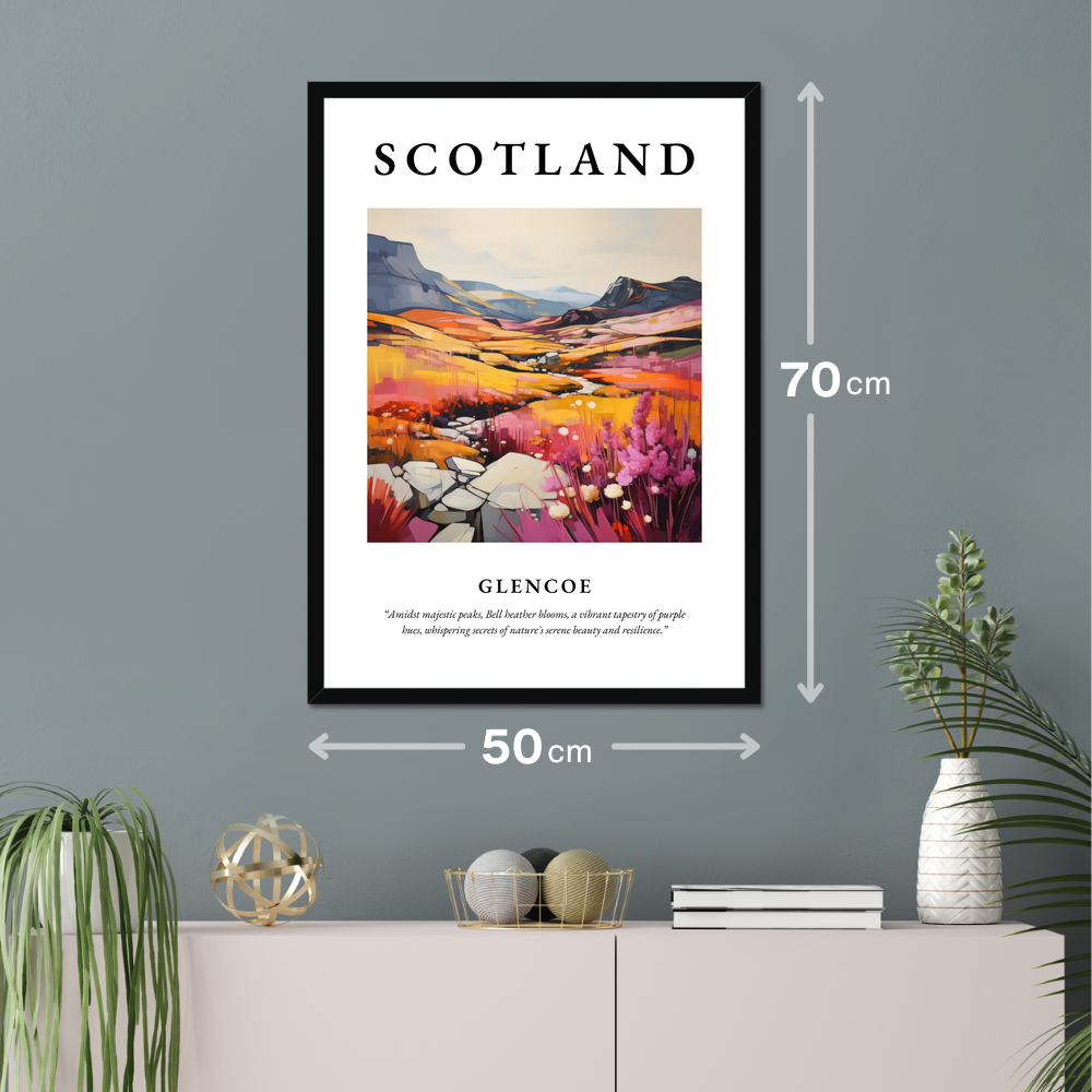 Step into a realm where art and nature intertwine with this exquisite framed poster print from our “Glencoe” collection. Measuring an impressive 50cm x 70cm, this poster commands attention in any room, offering a cost-effective way to transform your space with grandeur and elegance.