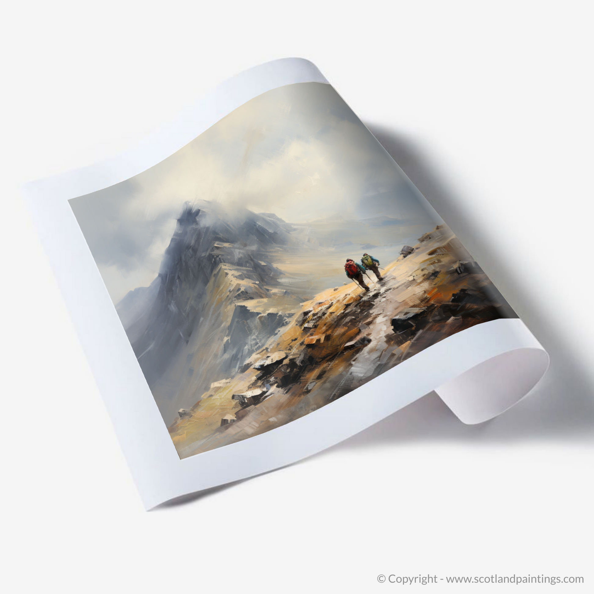Hikers Ascending Buachaille Summit: An Abstract Highland Adventure