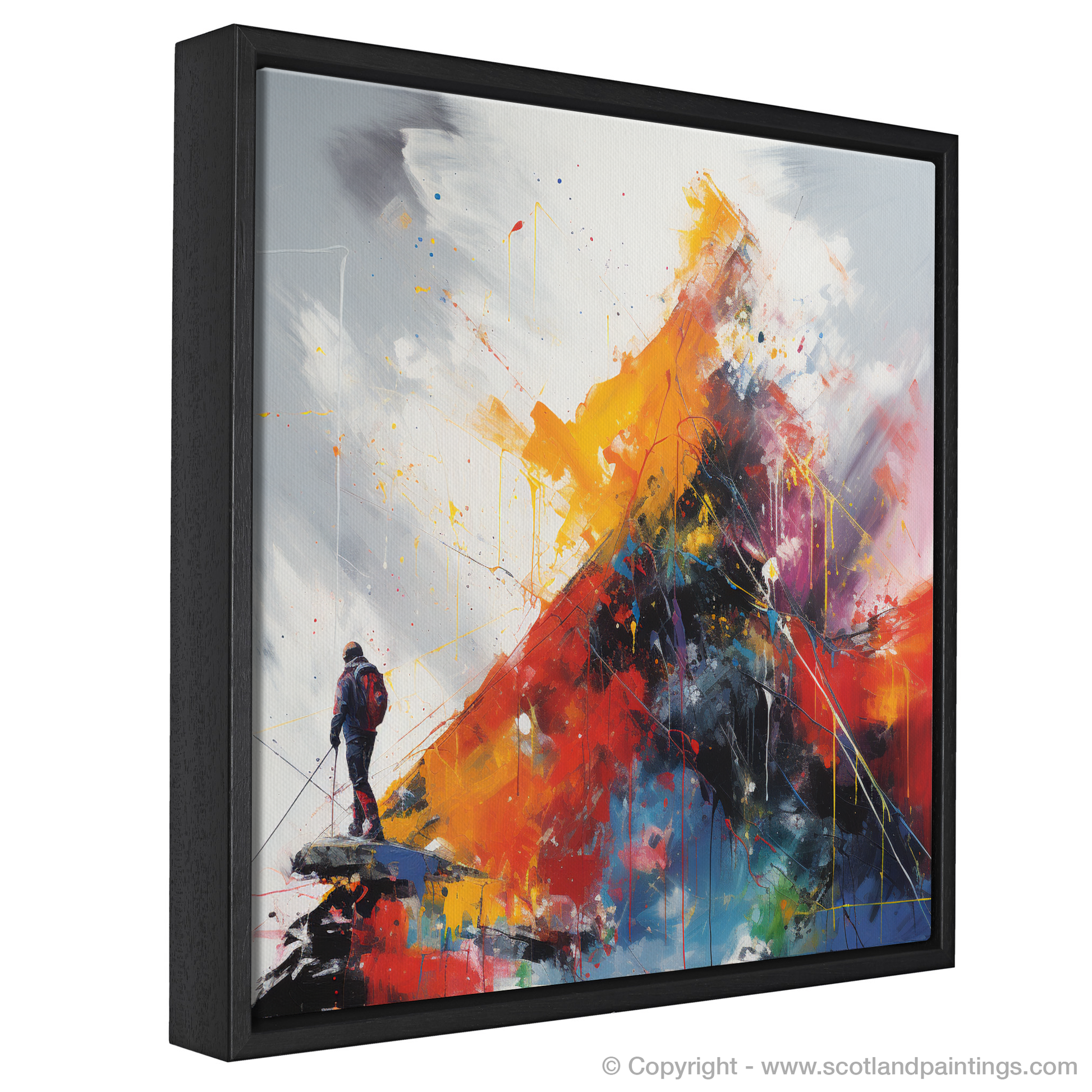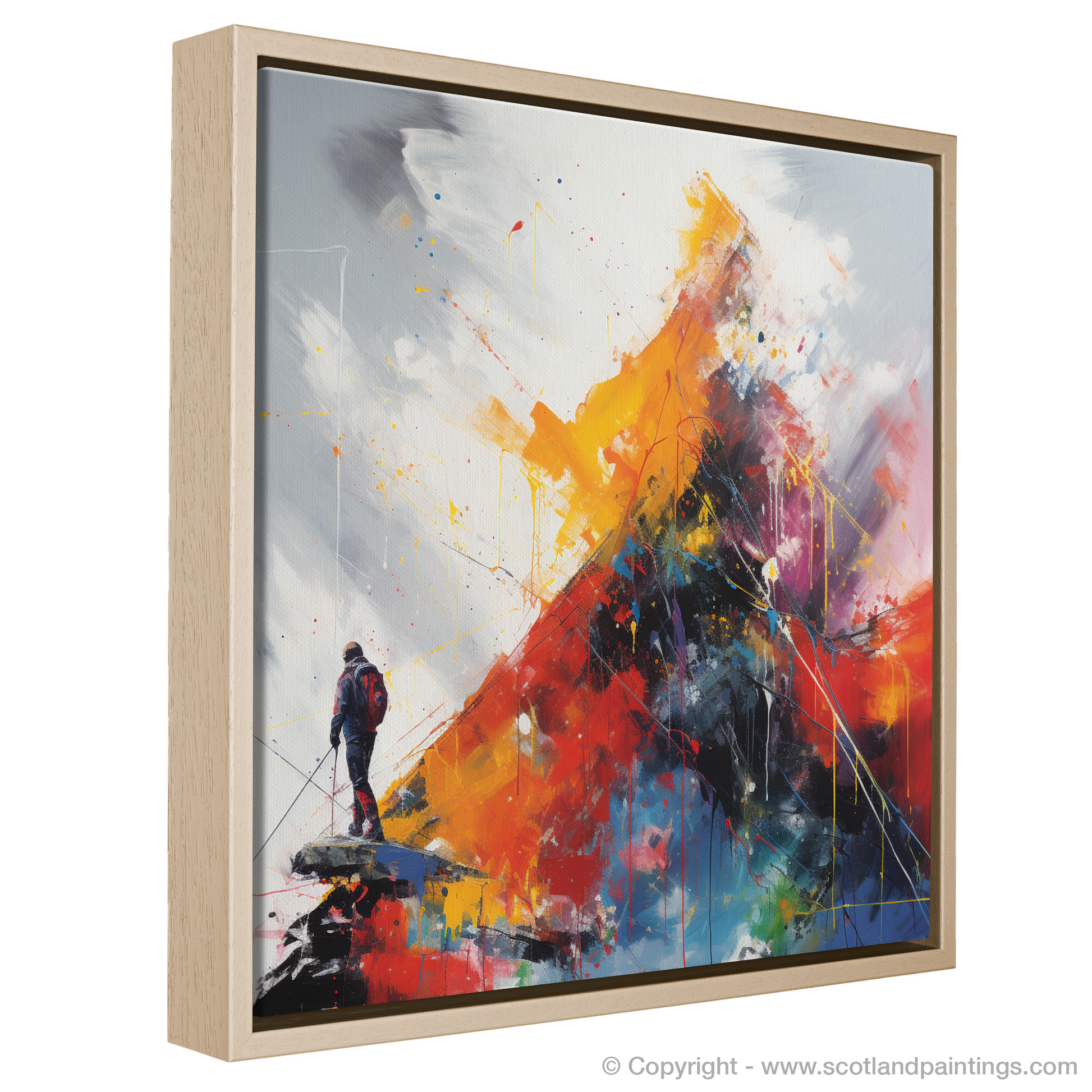 Capturing the essence of adventure in vibrant hues, this evocative abstract print offers a glimpse into the ethereal beauty of Glencoe with a contemporary twist. As the eye travels across the canvas, it encounters a sole climber, subtly rendered in muted tones, ascending amidst a tumult of colour and form. The earthy browns and muted greys of the figure stand in stark contrast to the fiery oranges, stunning yellows, and deep reds that suggest the rugged terrain of mountainous landscapes, imbued with the energy and dynamism of the natural world.