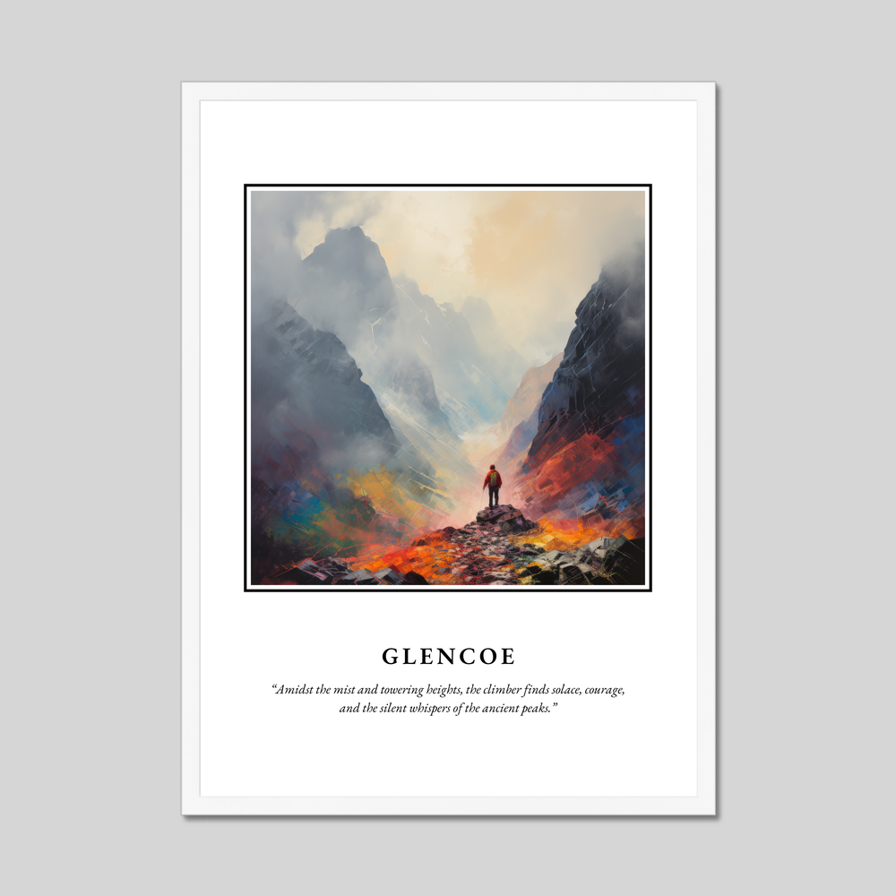 Whether you've strolled through its trails, felt the whisper of its winds, or simply admire the serene majesty from afar, this poster print serves as a magnificent homage to Glencoe. It allows anyone with a connection to this extraordinary place to bring a slice of its magnificence into their home, celebrating the intersection of art and nature in a uniquely vibrant way.