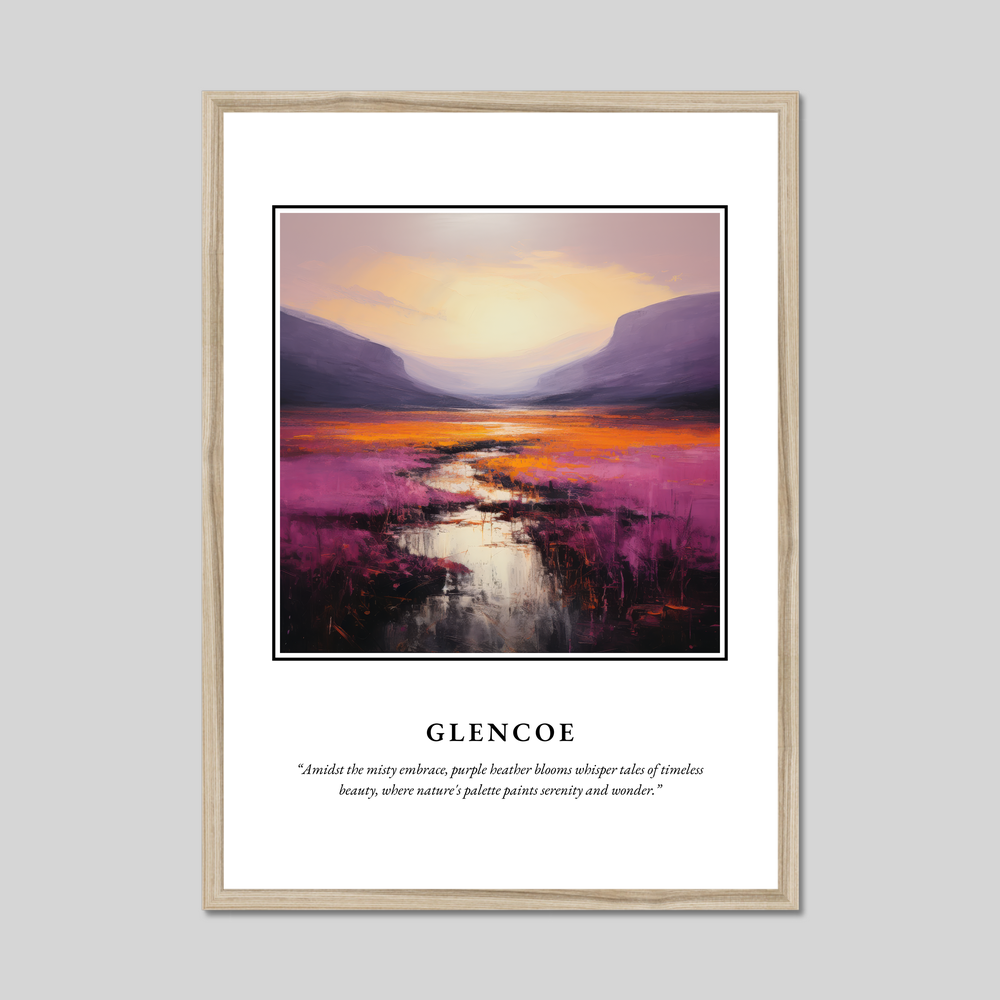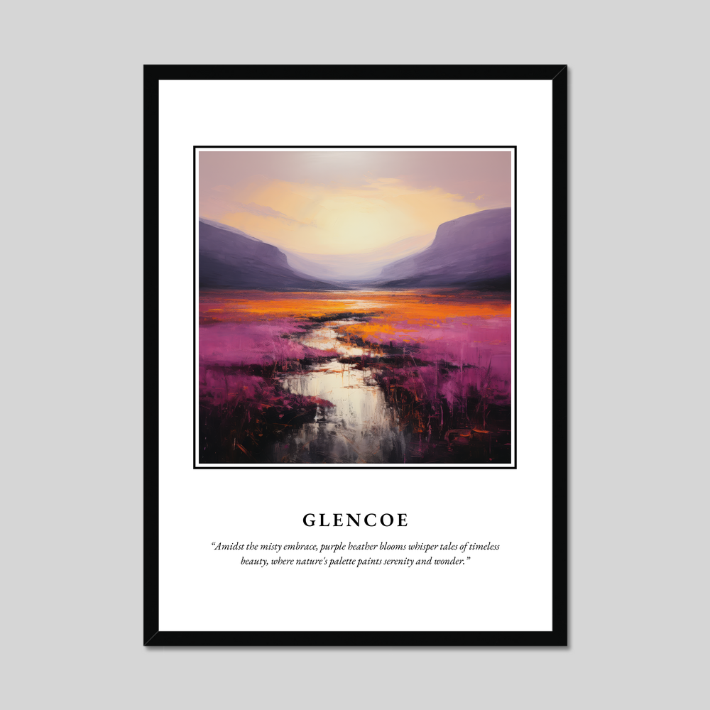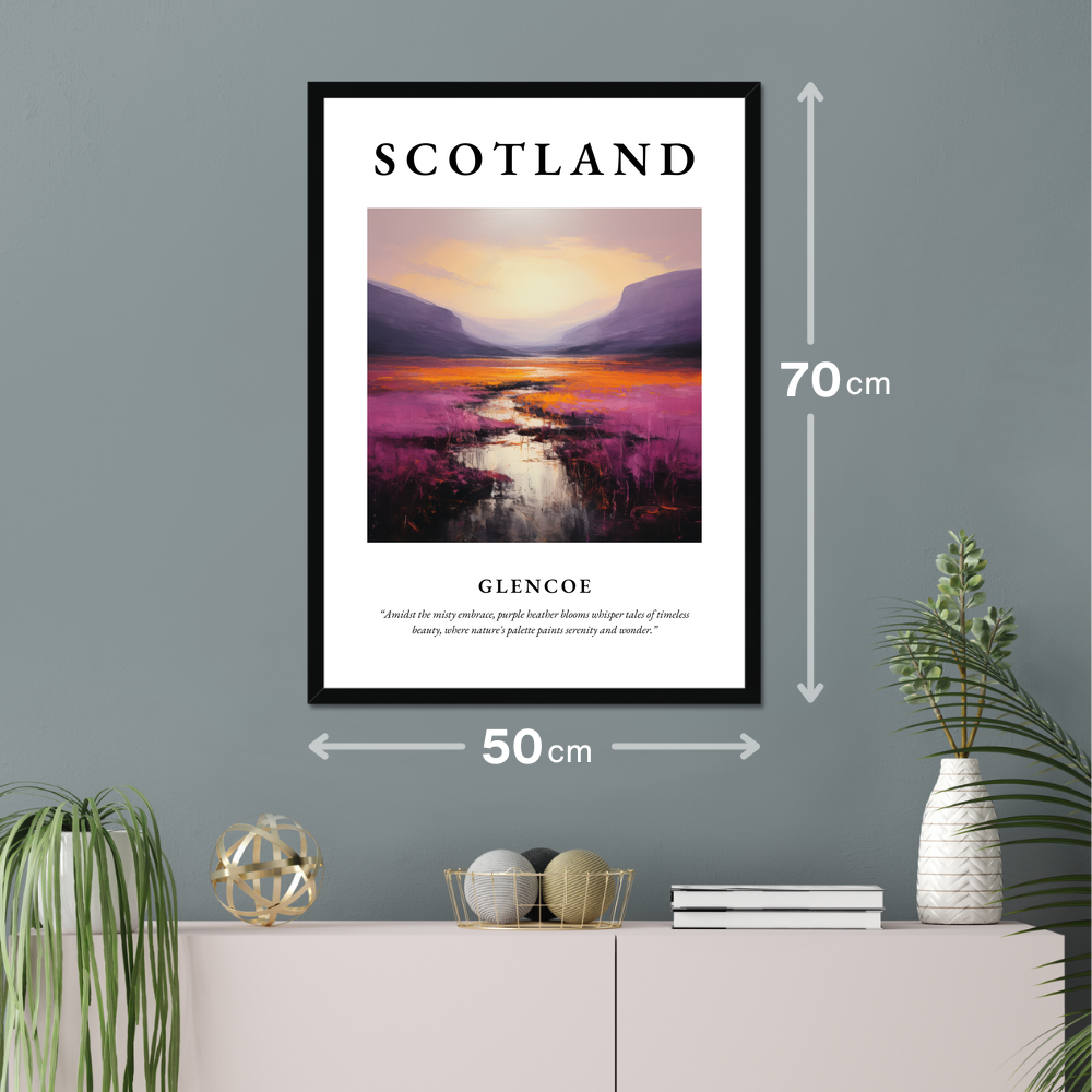 Introducing an enchanting addition to your home or office décor—a large, captivating piece from our "Glencoe" collection that beautifully celebrates Scotland’s majestic landscape. This framed poster print, measuring an impressive 50cm x 70cm, offers a visual journey into the ethereal beauty of Glencoe through an abstract painting that compels both the heart and the imagination.