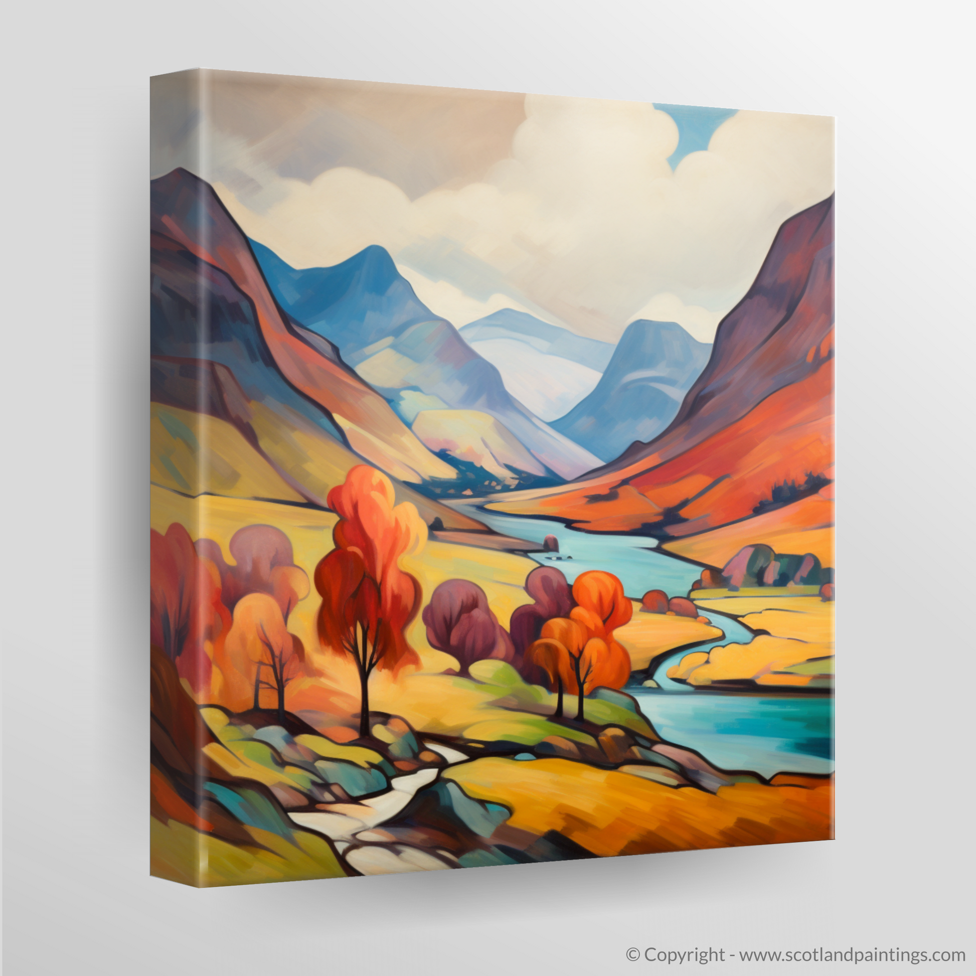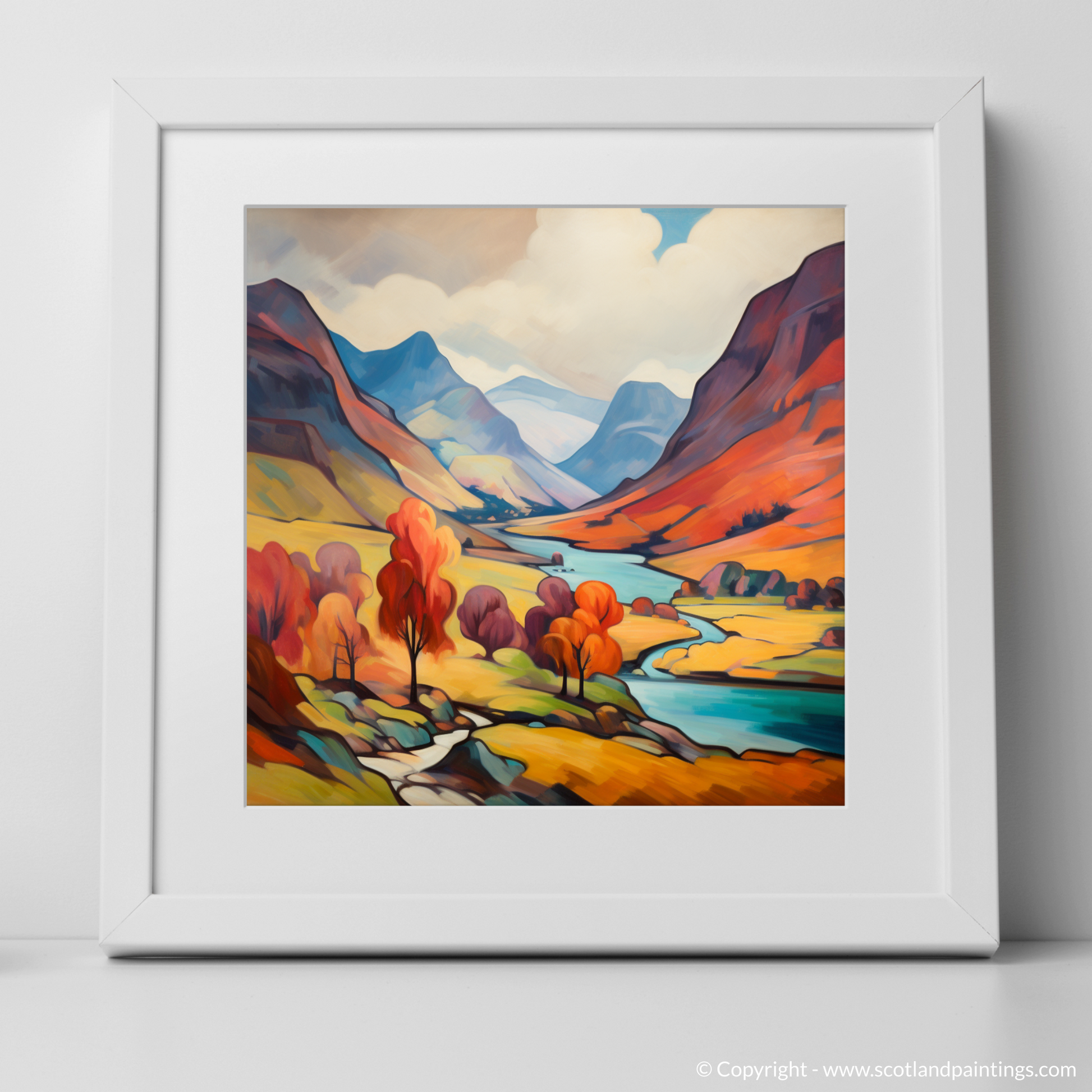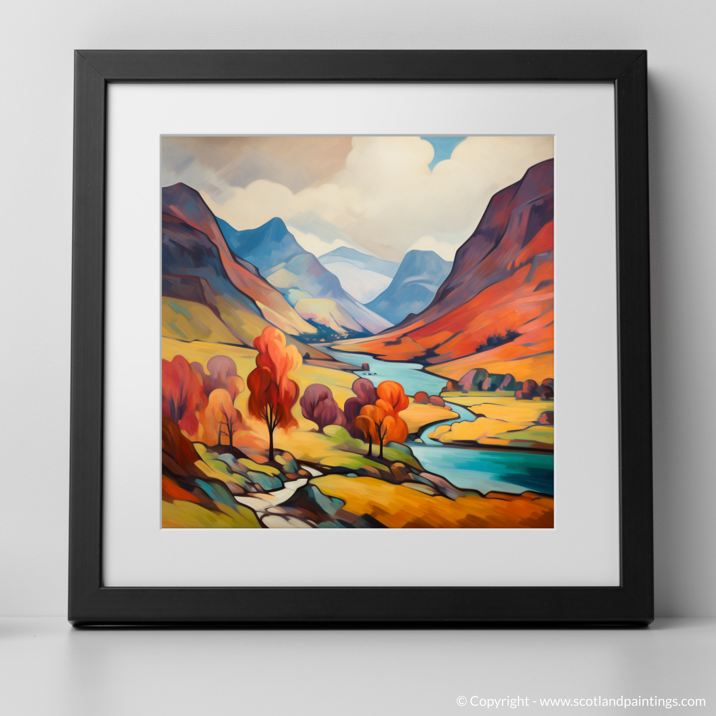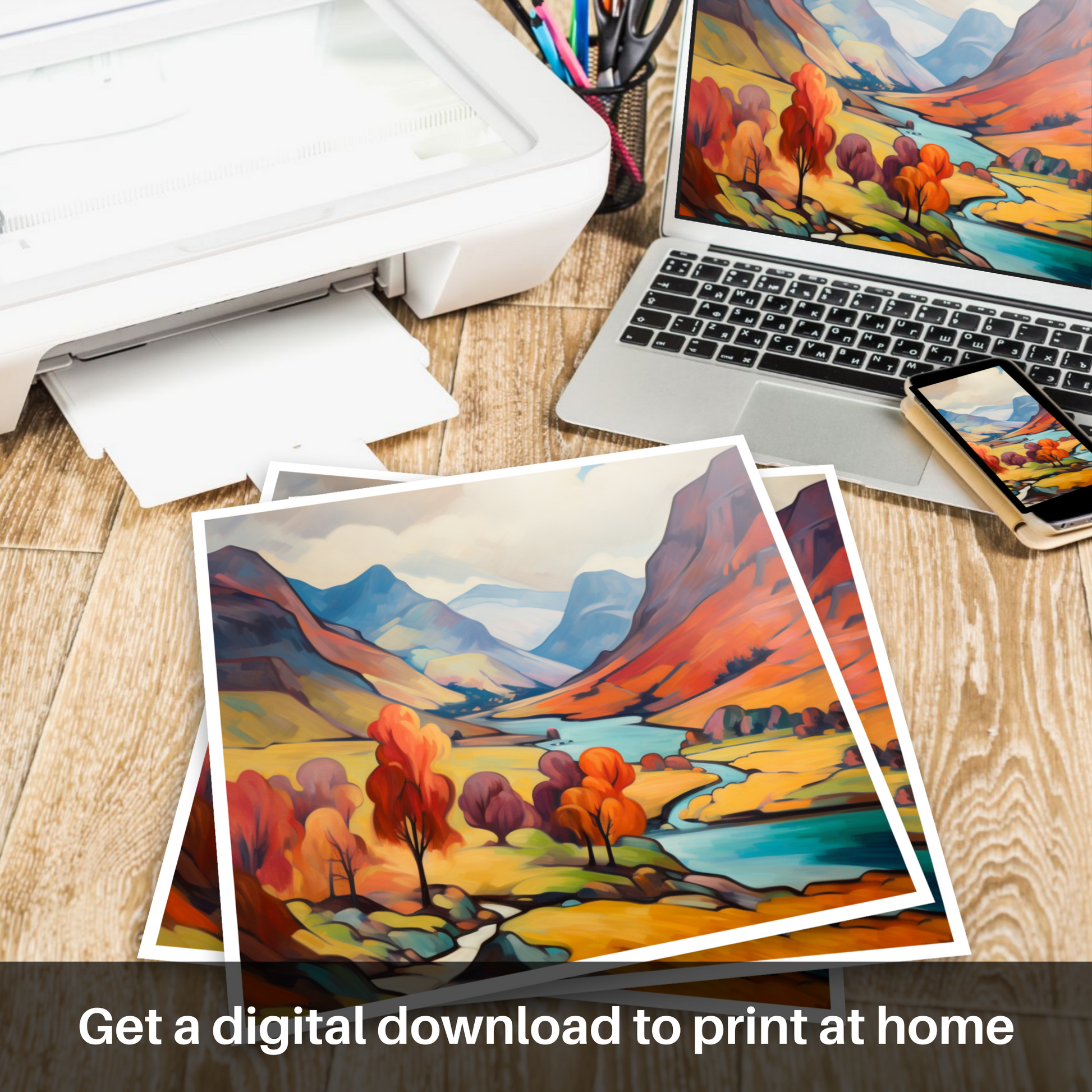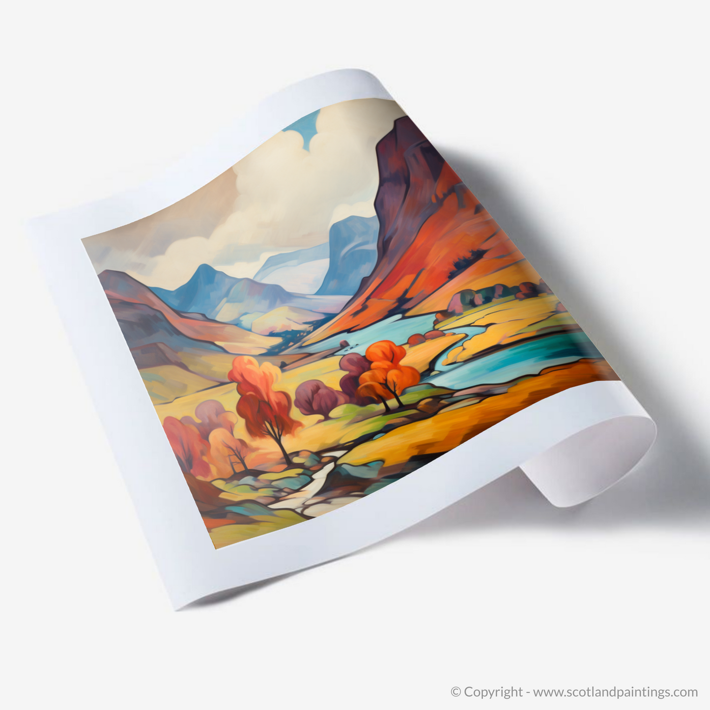 Immerse yourself in the essence of a Scottish autumn with this captivating print, where Glencoe's natural splendour is reimagined through a cubist lens. The artwork invites your gaze to meander through the vibrant, angular landscape, where geometrical forms meld seamlessly with the organic beauty of the highlands.