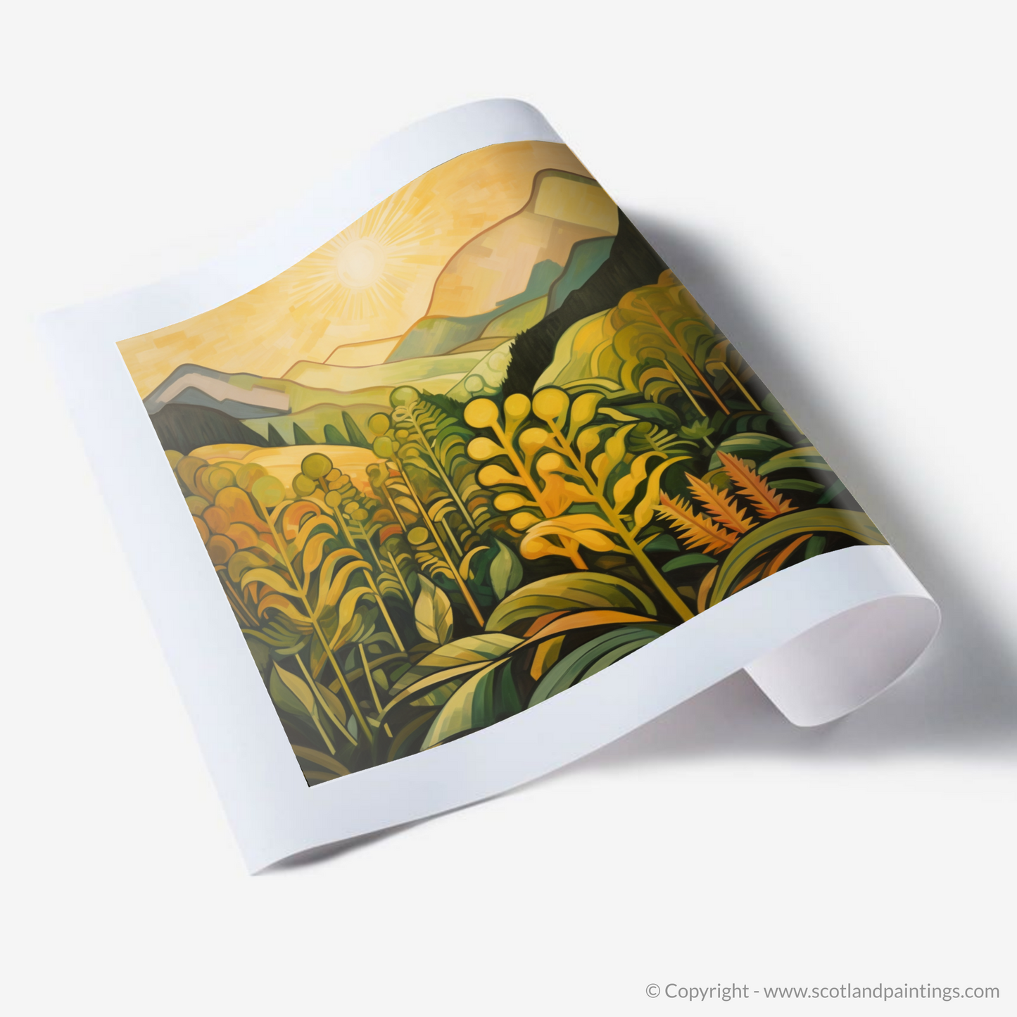 Glowing Ferns at Golden Hour: A Cubist Ode to Glencoe's Enchantment