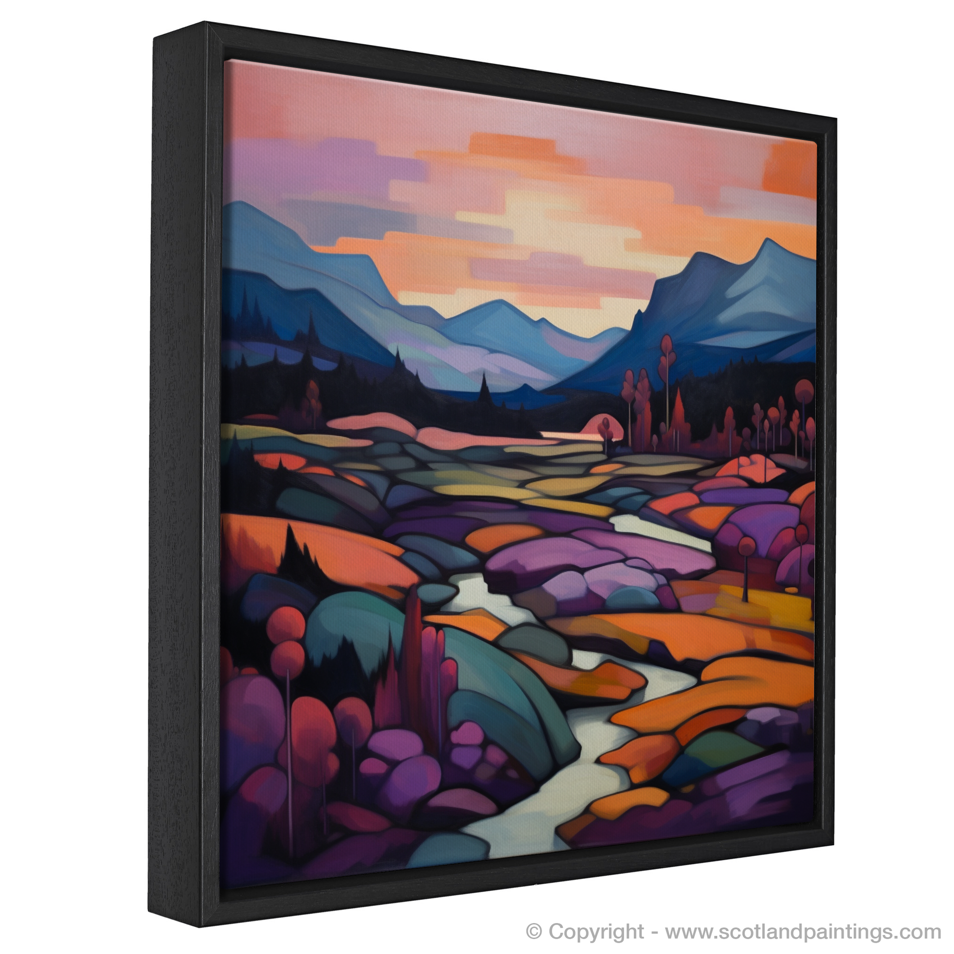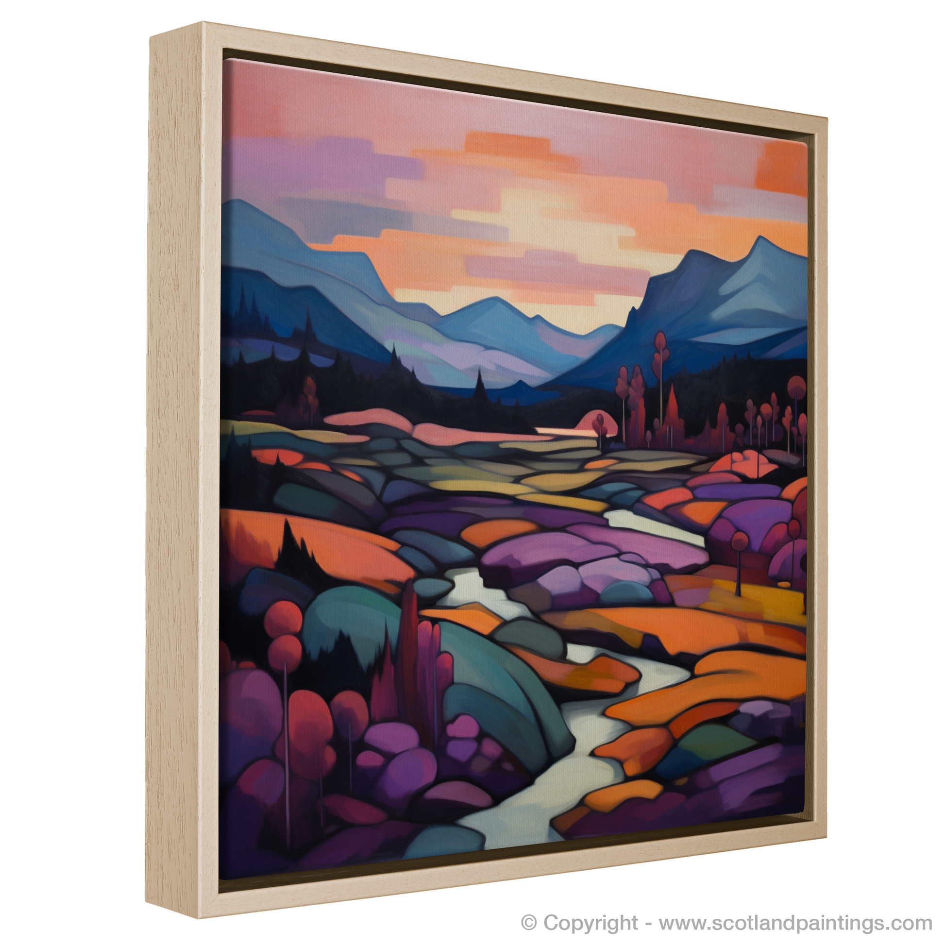In the foreground, crowberry bushes stand clustered like silent sentinels, their rounded forms adding a gentle contrast to the edgy landscapes. Silhouettes of distant trees rise into the pastel-hued sky, standing as testament to the enduring beauty of this Scottish haven. This bewitching print, a part of our esteemed 'Glencoe' collection, is an homage to the serenity and enduring beauty of one of Scotland's most cherished vistas, revitalised through the visionary lens of Cubism. It offers a moment of reflective calm and a bold statement piece for any collector or enthusiast keen to bring a piece of the highland's mystique into their space.