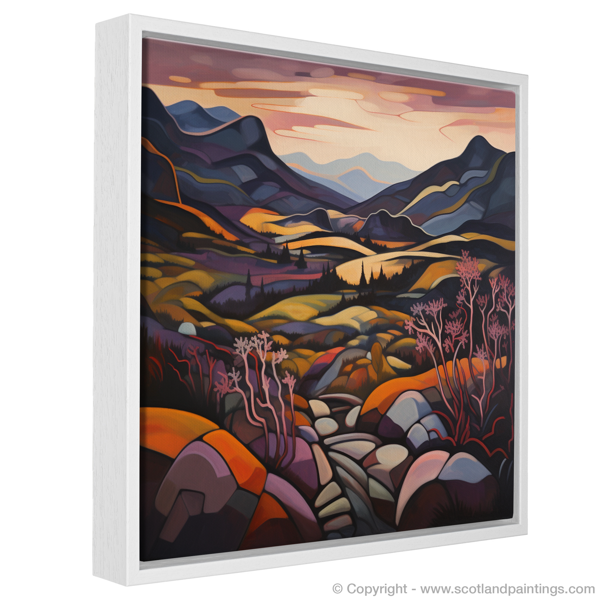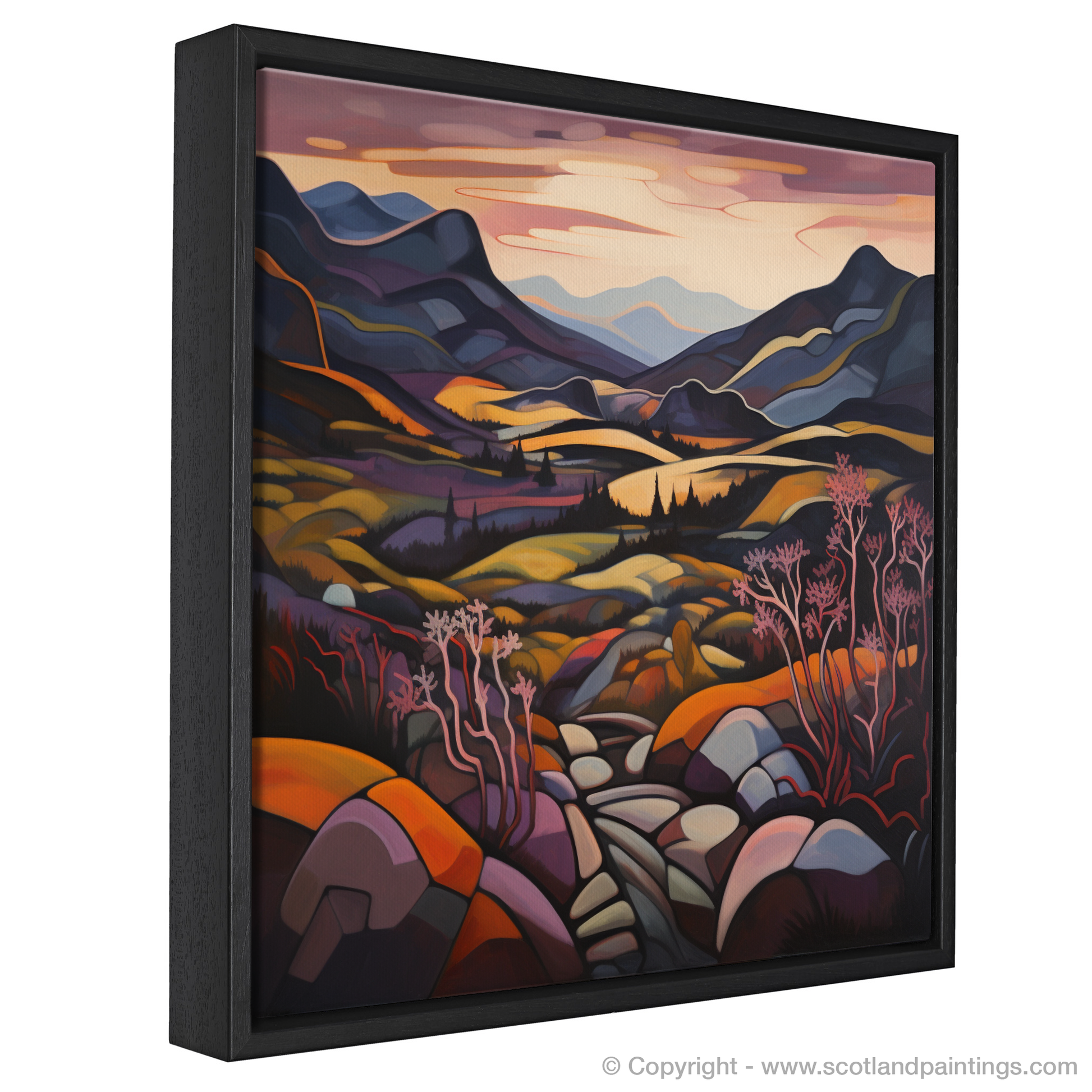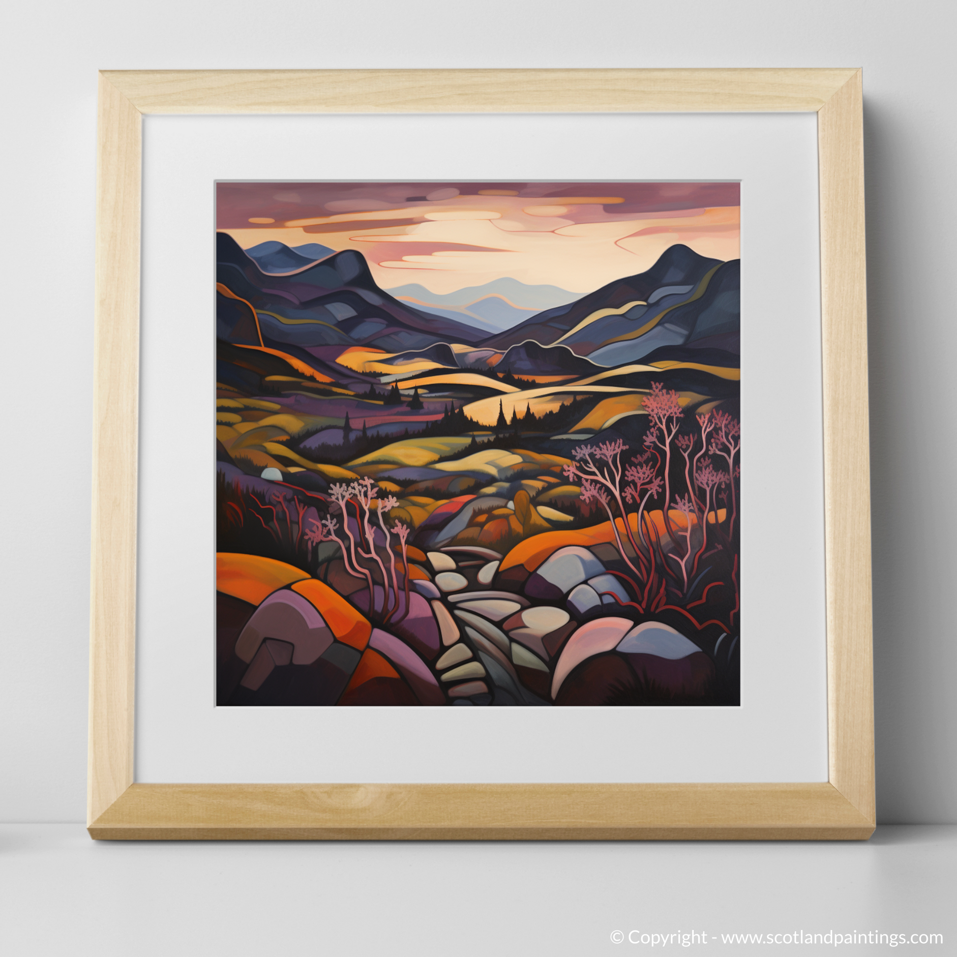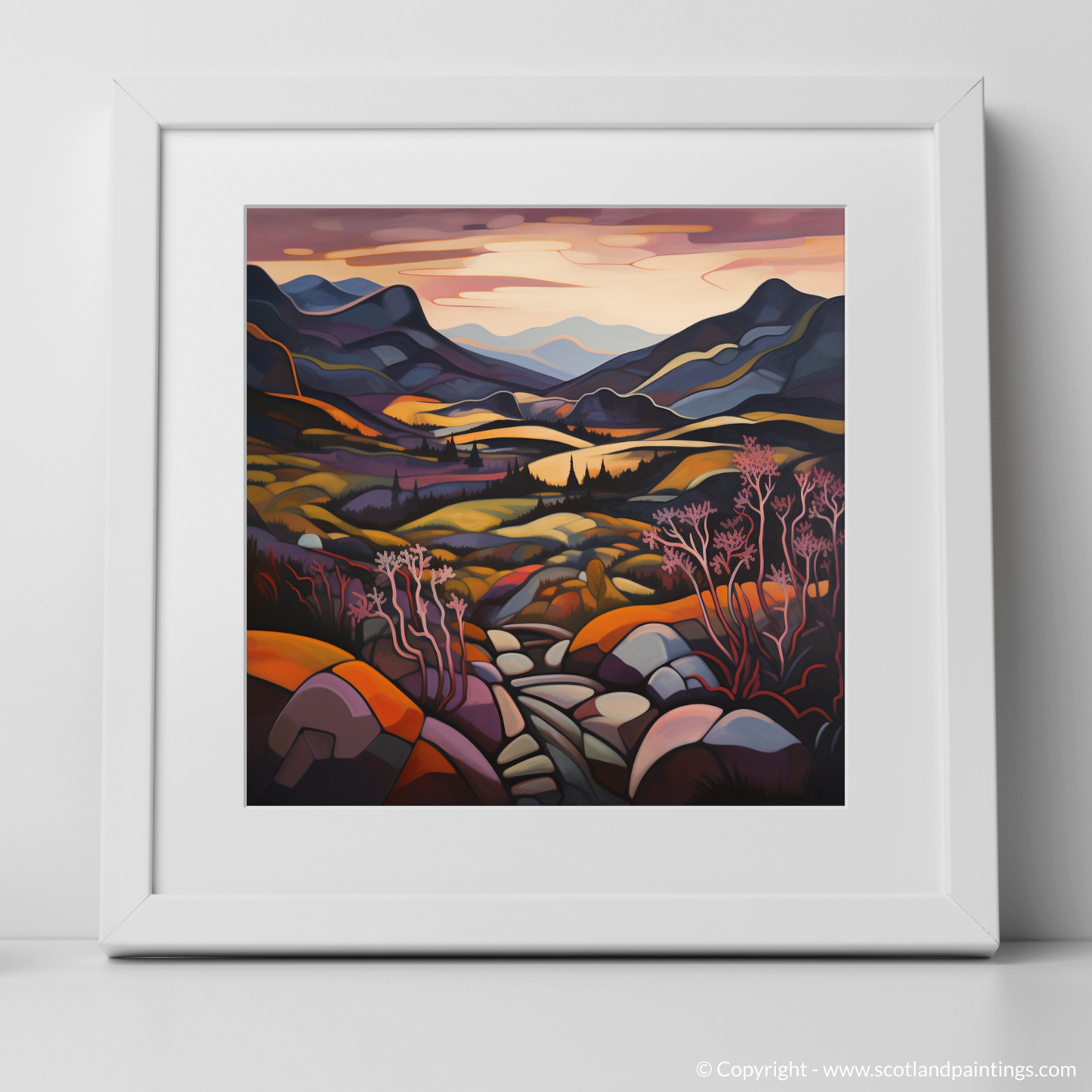 Immerse your senses in the vibrant interplay of colours and shapes with our captivating print. Highlighting the unique beauty of crowberry patches at dusk, this artwork reimagines Glencoe’s enchanting landscape through the prism of Cubism, offering a fresh and dynamic perspective.