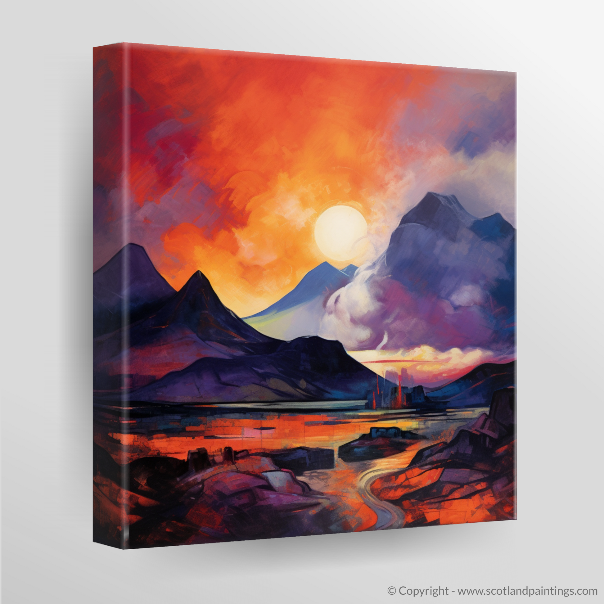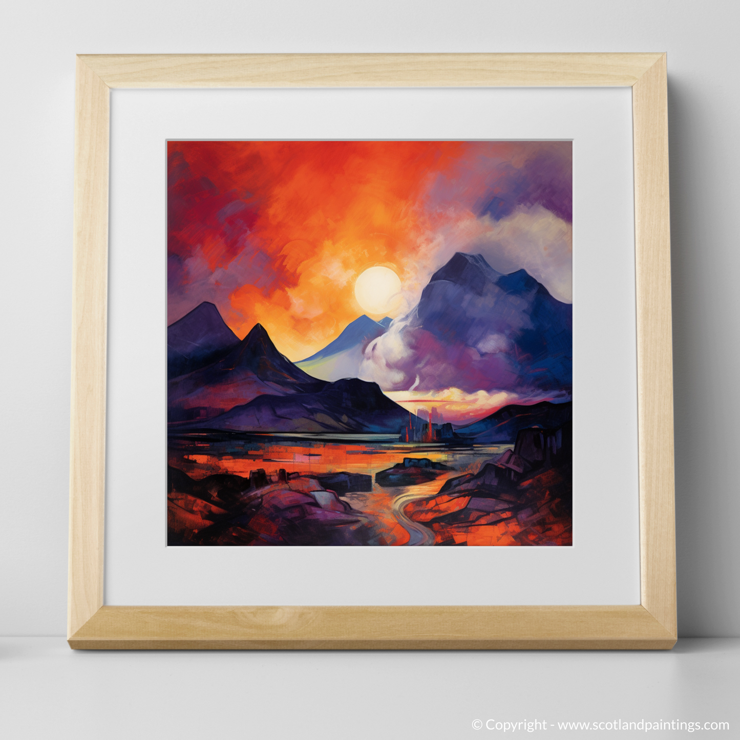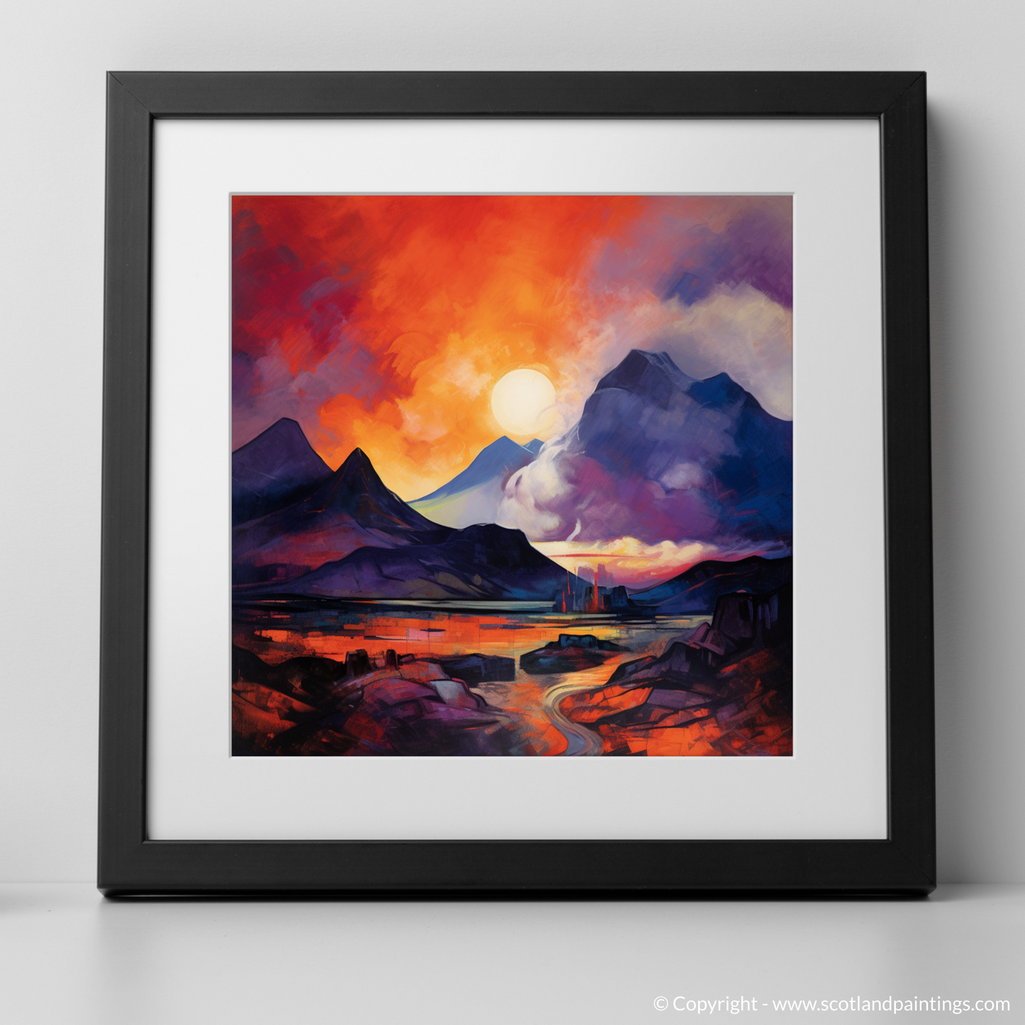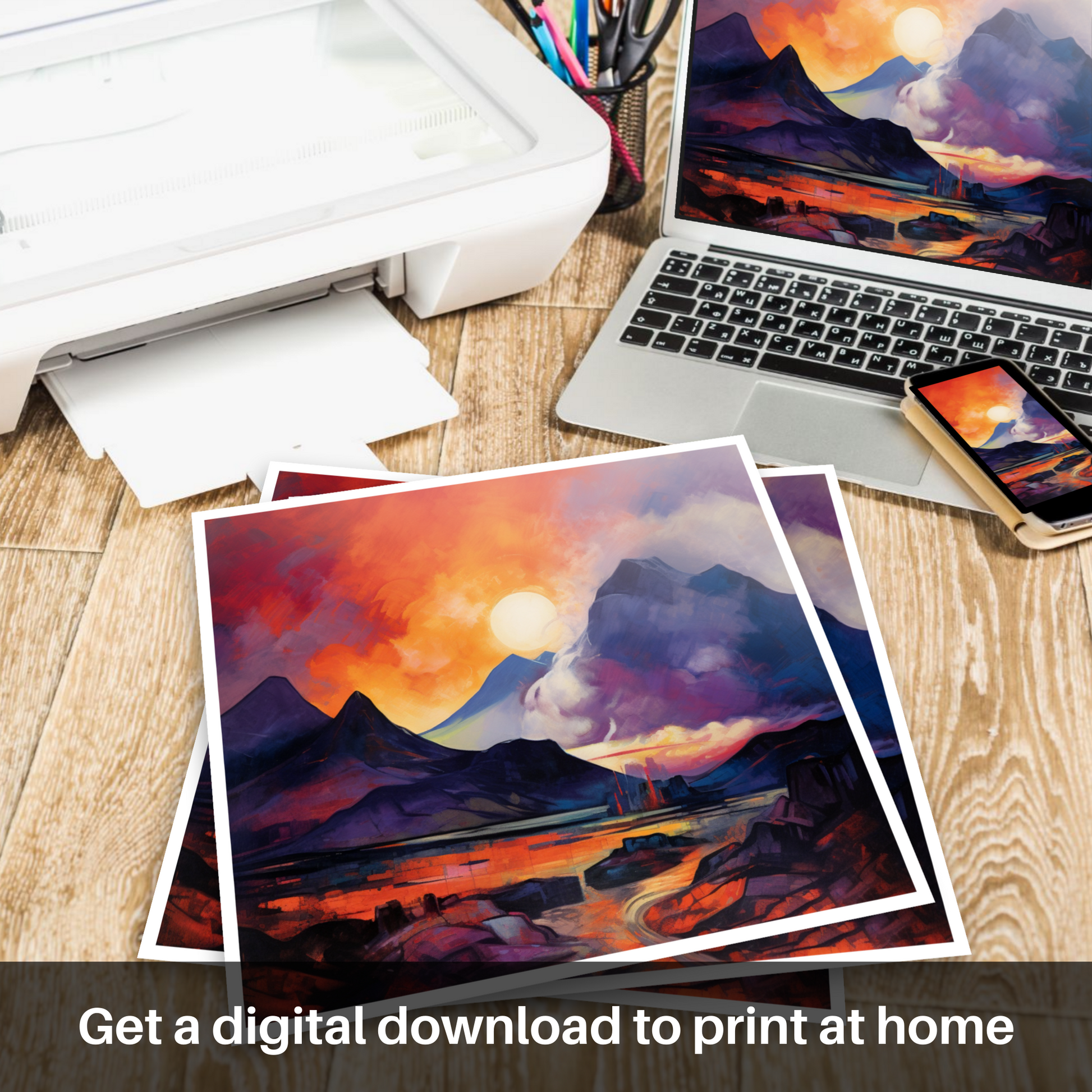 Immerse yourself in the splendour of a highland masterpiece, where the fiery hues of a Glencoe sunset meet the fractured forms of Cubism. This evocative print captures the raw beauty of Scotland's famous glens with a modern twist, reimagining the natural majesty through asymmetric shapes and vibrant colour play.