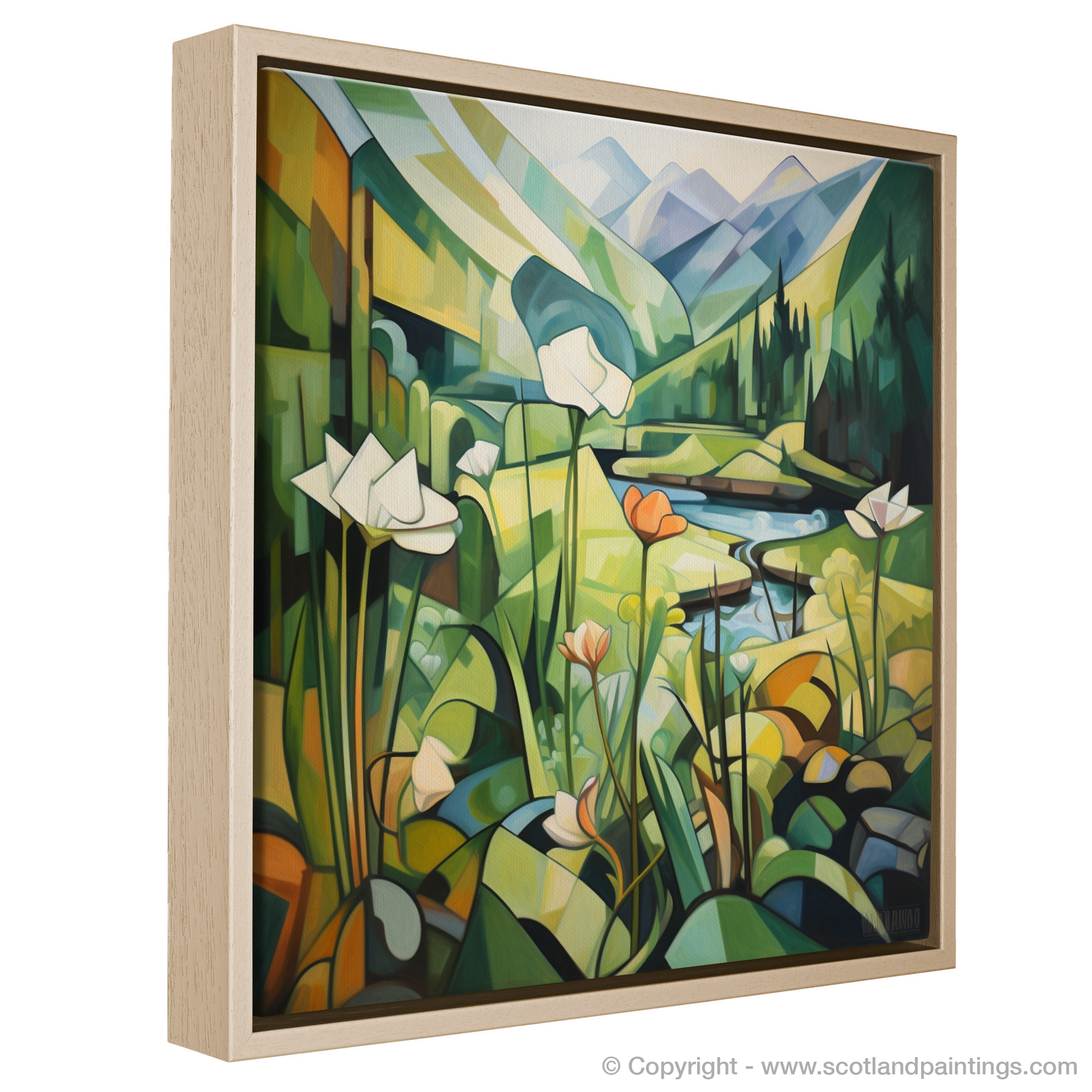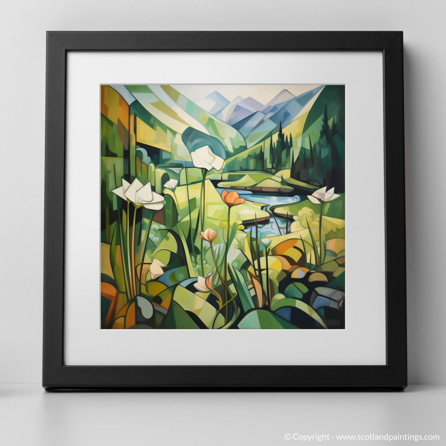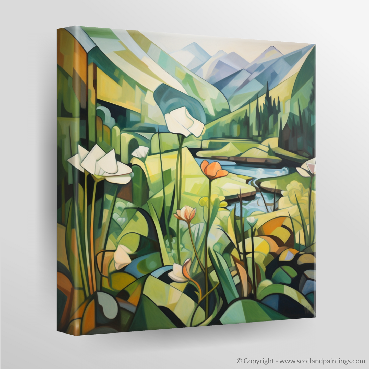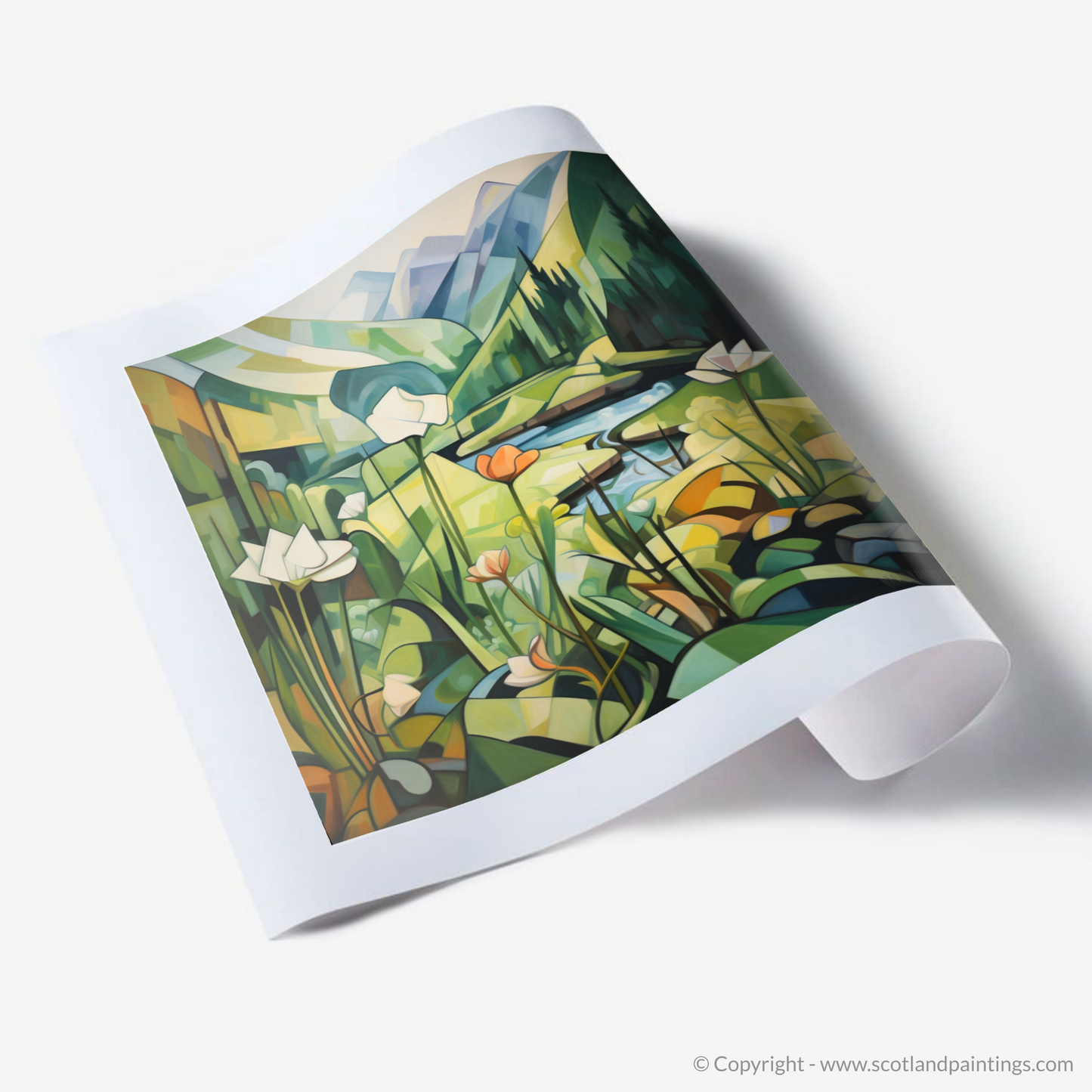 Capturing the essence of dawn's gentle caress over the serene Glencoe landscape, this exquisite cubist interpretation presents a captivating dance of geometry and light. Onlookers are transported to a world where nature's organic intricacies meet the stark lines and vibrant planes of cubism, sparking a delightful visual dialogue.