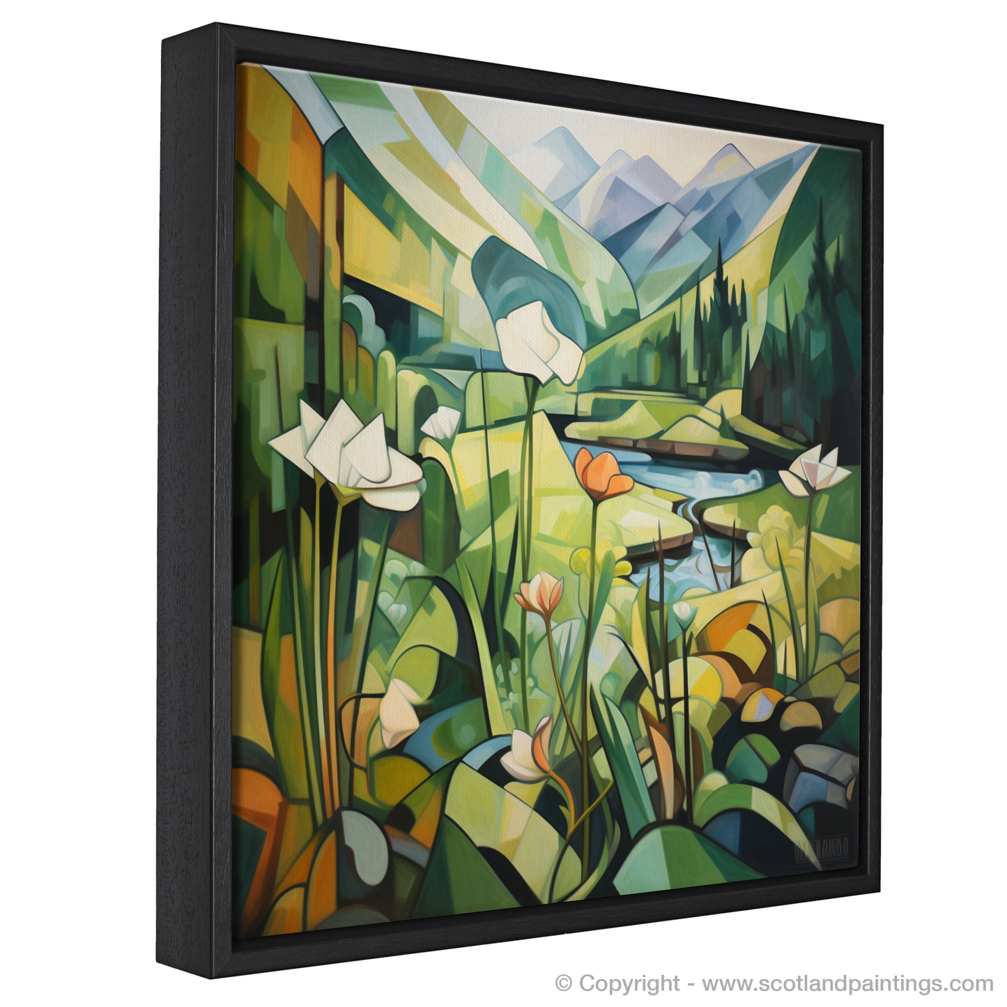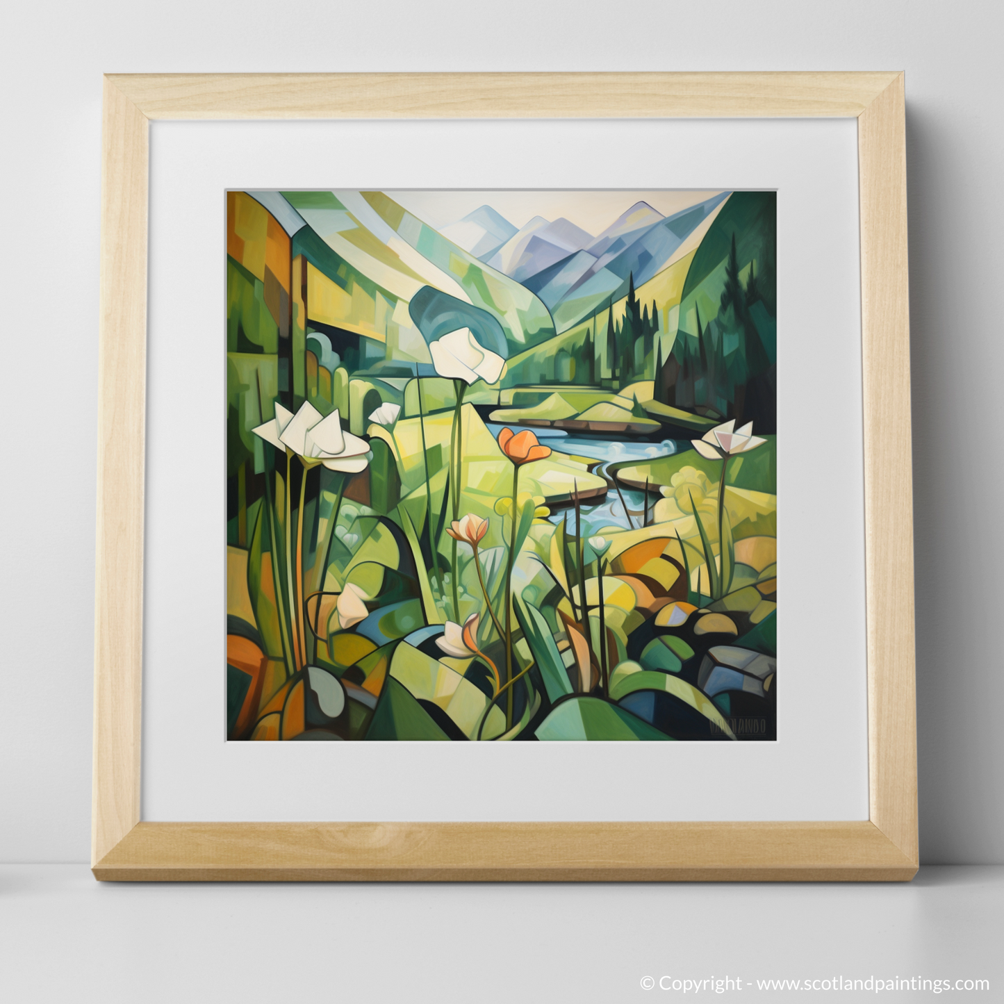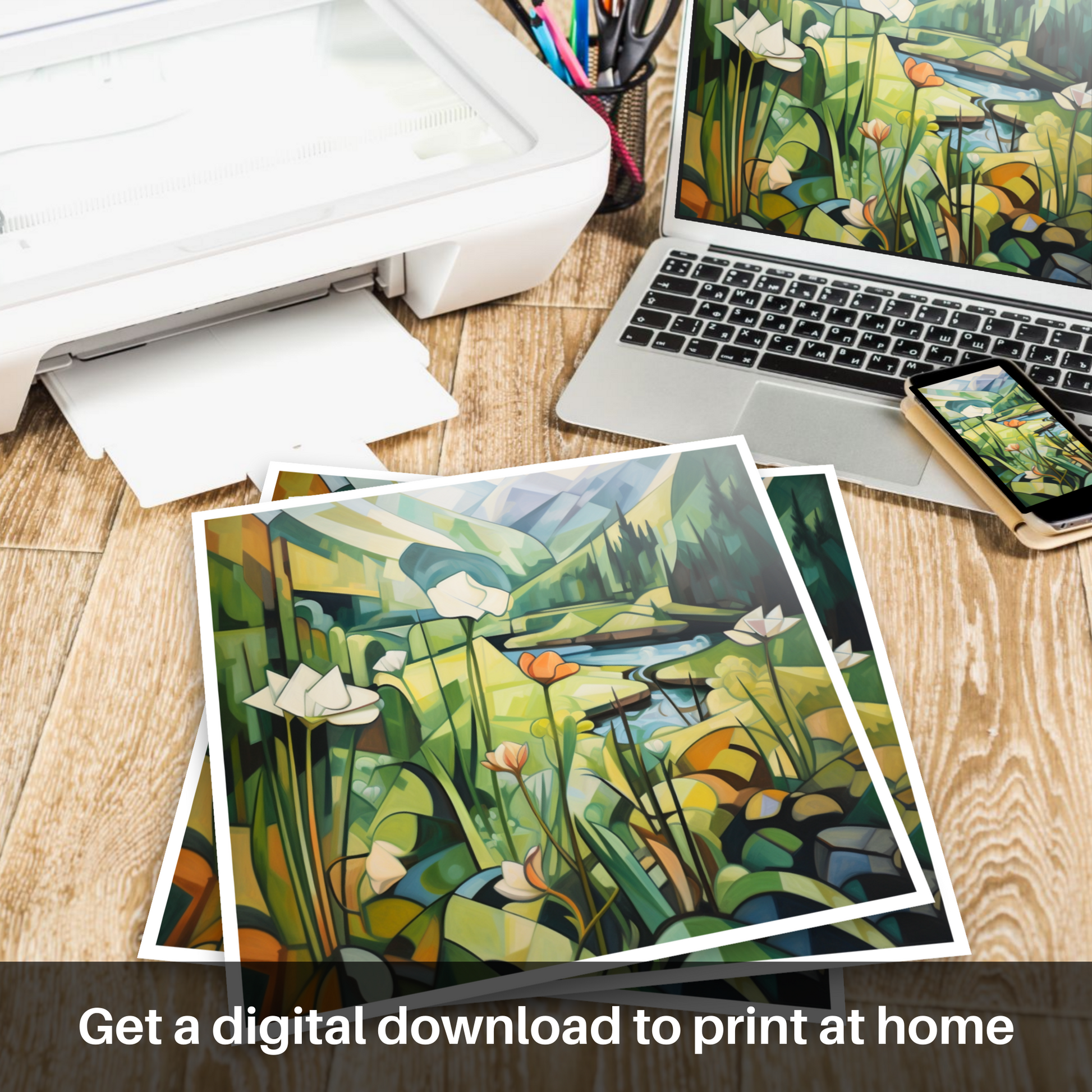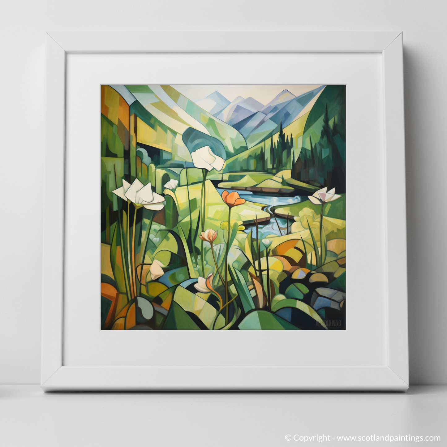 Capturing the essence of dawn's gentle caress over the serene Glencoe landscape, this exquisite cubist interpretation presents a captivating dance of geometry and light. Onlookers are transported to a world where nature's organic intricacies meet the stark lines and vibrant planes of cubism, sparking a delightful visual dialogue.