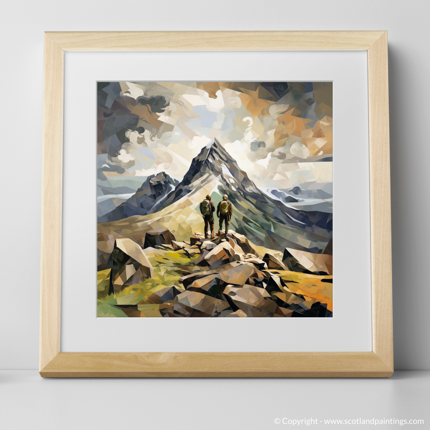 Embark on a visual journey with this captivating print, where the rugged beauty of Buachaille summit in Glencoe is reimagined through the transformative lens of Cubism. Angular splendour and earthen hues combine to elevate the Scottish landscape to a stunning abstraction of nature's grandeur.