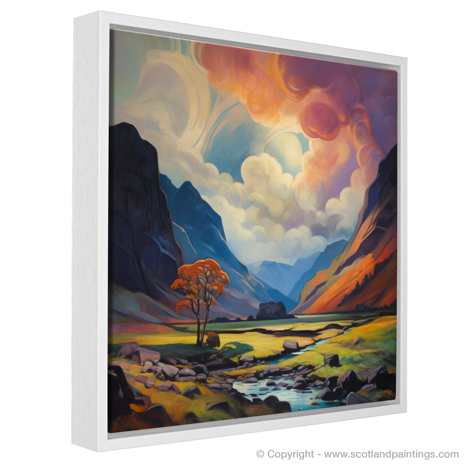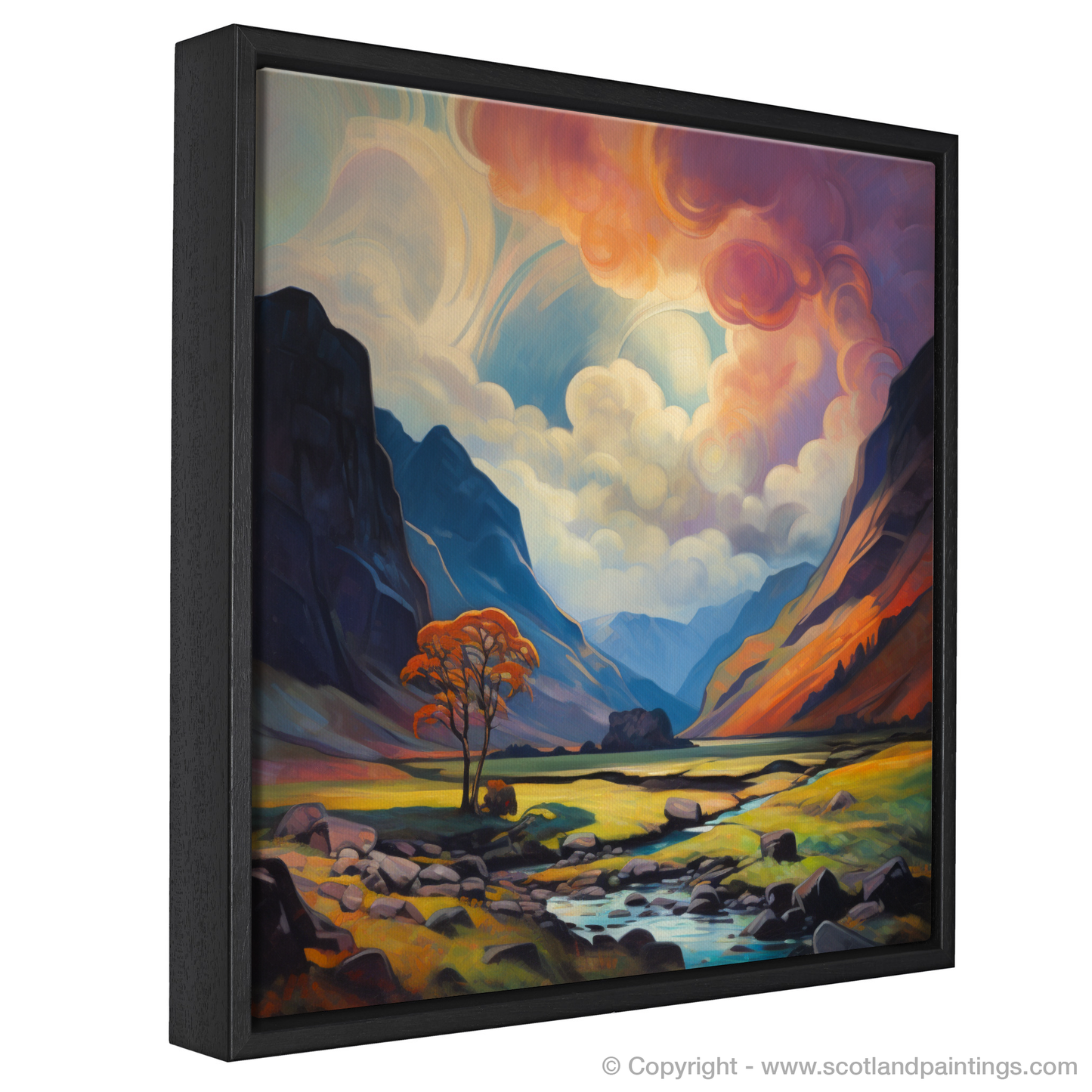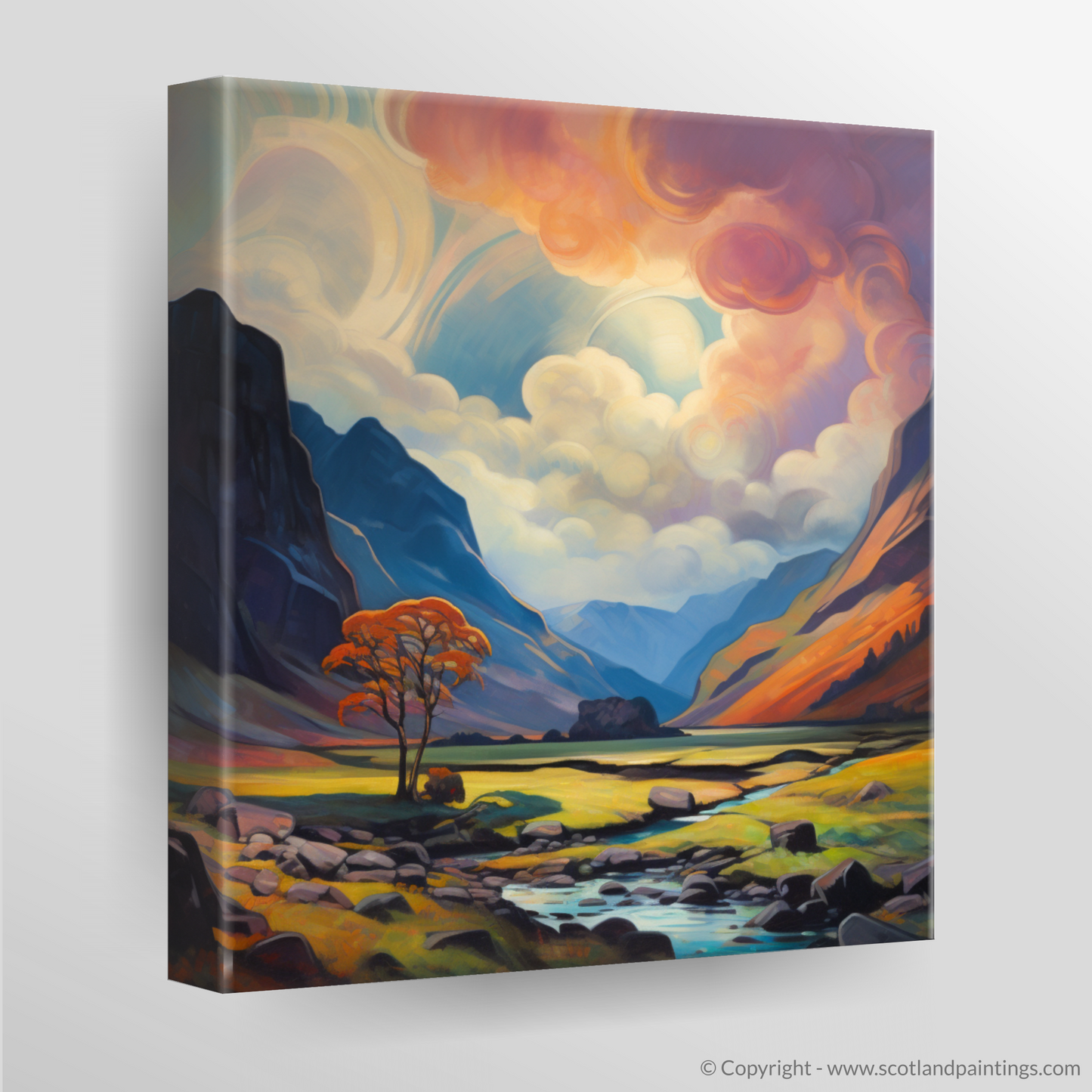 Encapsulating the essence of the wild Scottish Highlands, this captivating print draws its viewer into a harmonious symphony of nature. It interprets the dramatic and untamed beauty of Glencoe with a vibrant cubist twist, infusing the timeless landscape with a flush of modern vitality.