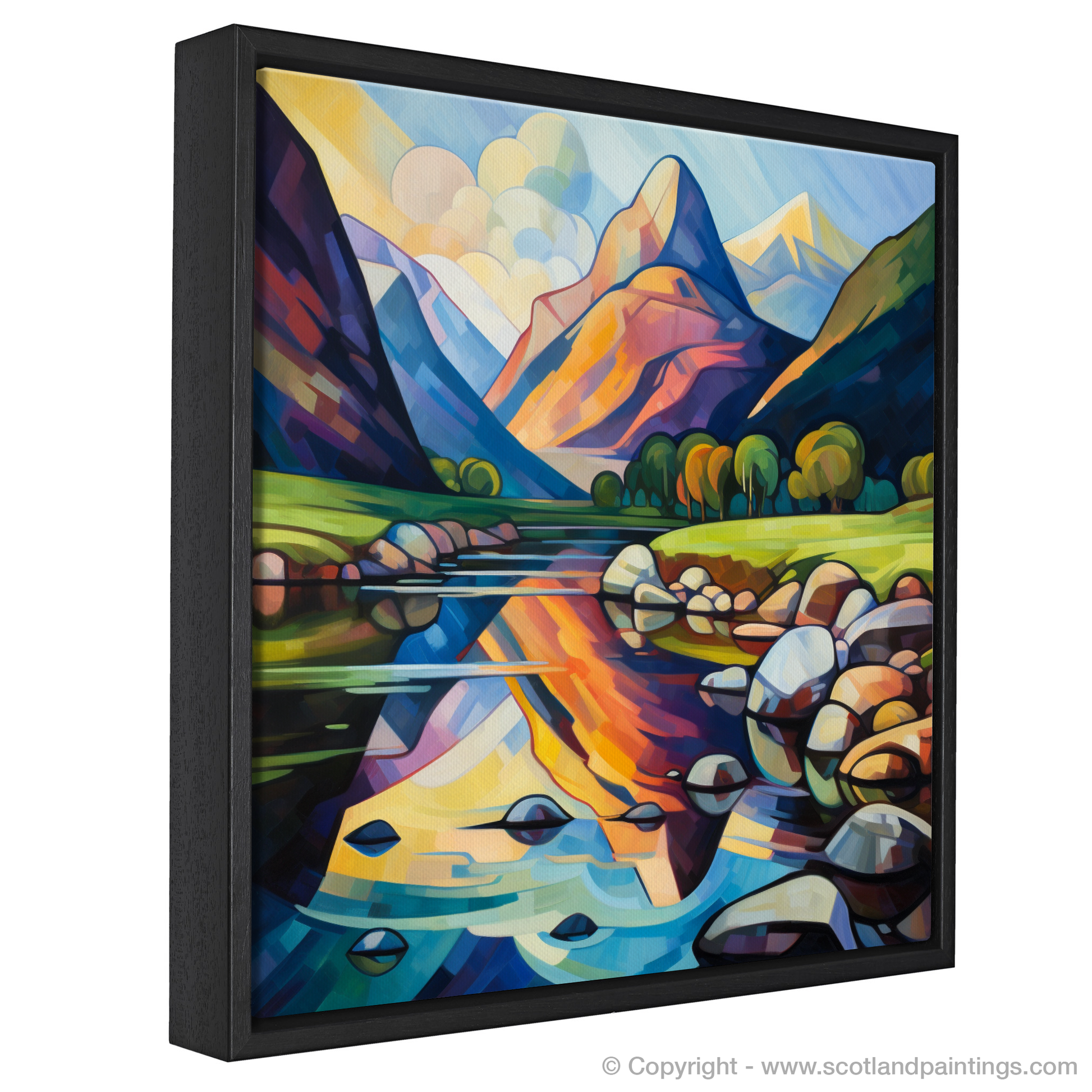 Immerse yourself in a kaleidoscope of nature as this stimulating print brings the essence of River Coe's reflections to life through the prism of Cubism. Geometric shapes interlock and overlap, portraying the rugged beauty of Glencoe's landscape with vivid juxtapositions of colour and form.