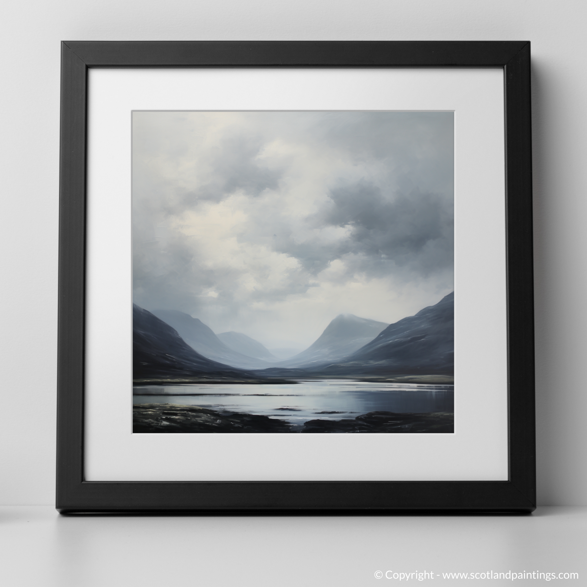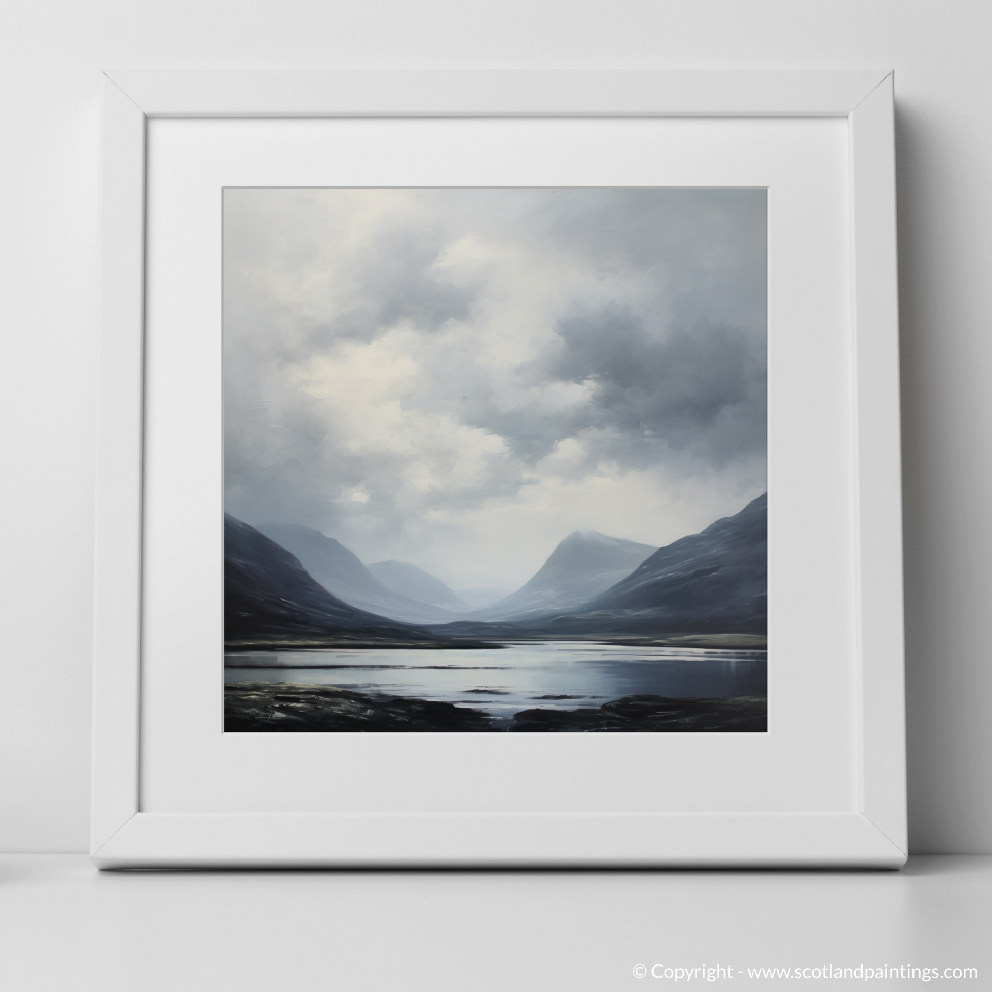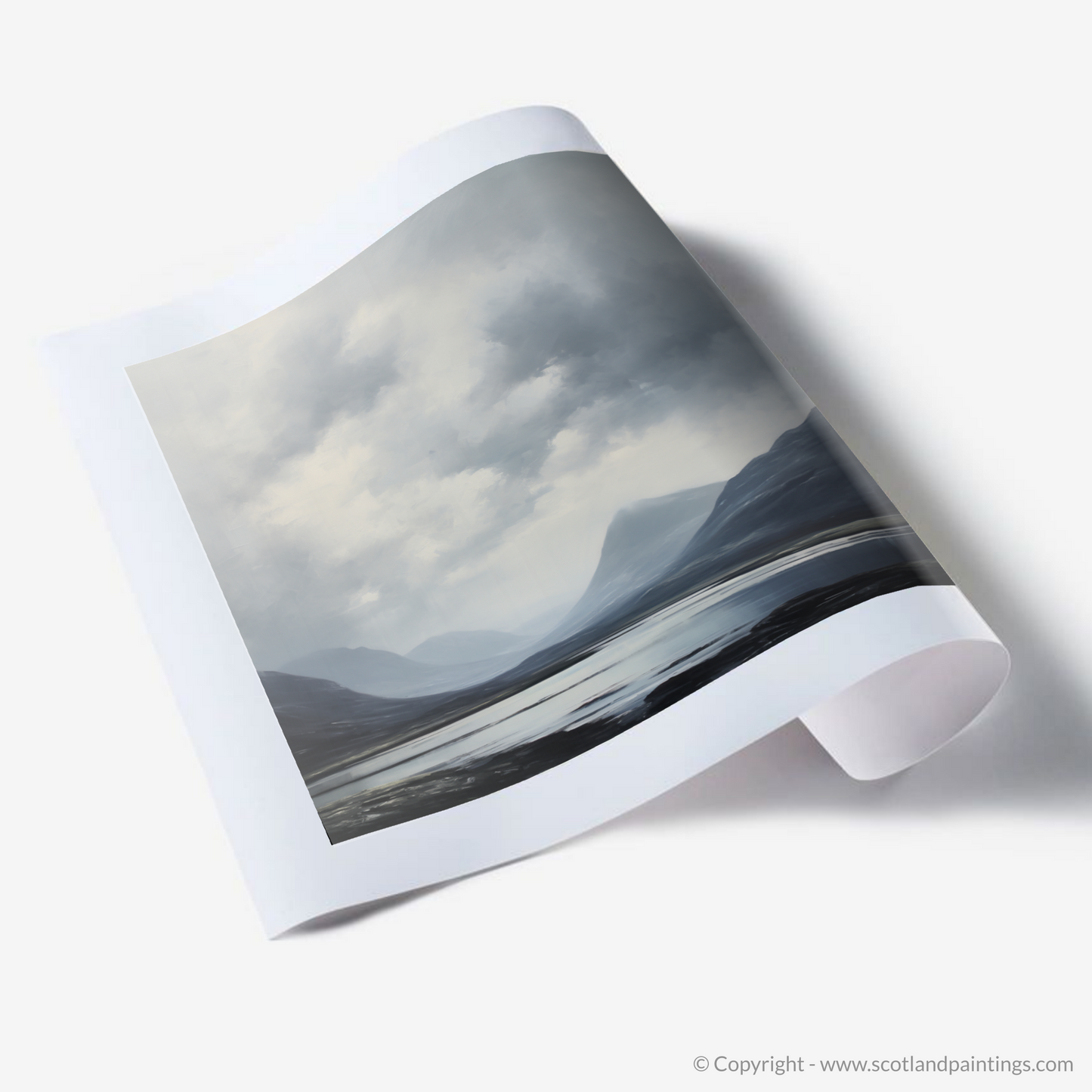 Let the essence of the Scottish Highlands envelop your space with this evocative minimalist piece inspired by the brooding drama of Glencoe's skies. Embracing the power of simplicity, this print captures the vastness and the stirring emotion of one of Scotland's most iconic landscapes. The artwork's restrained colour palette is dominated by shades of grey, with subtle gradations invoking the fleeting, ephemeral light unique to this enchanting region.