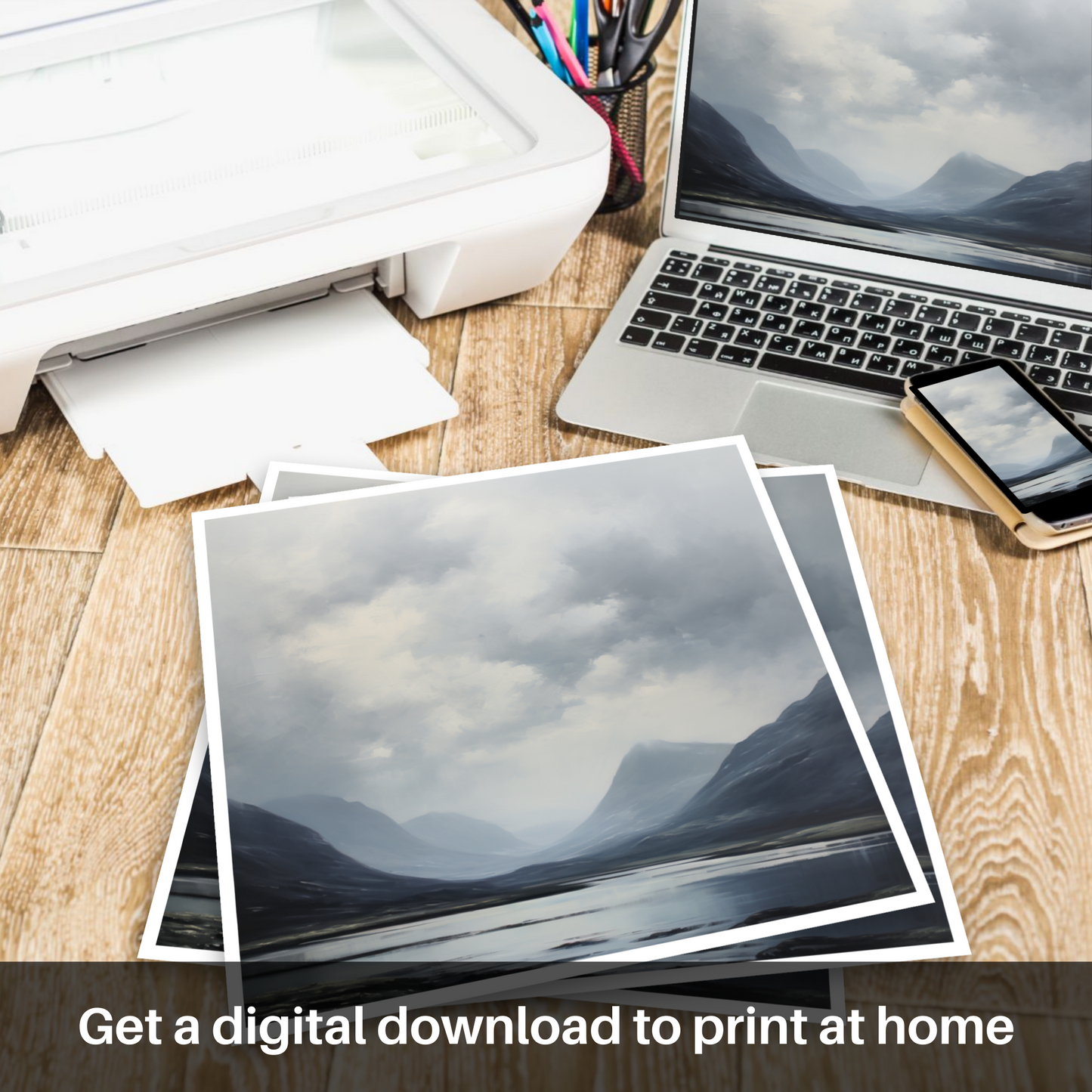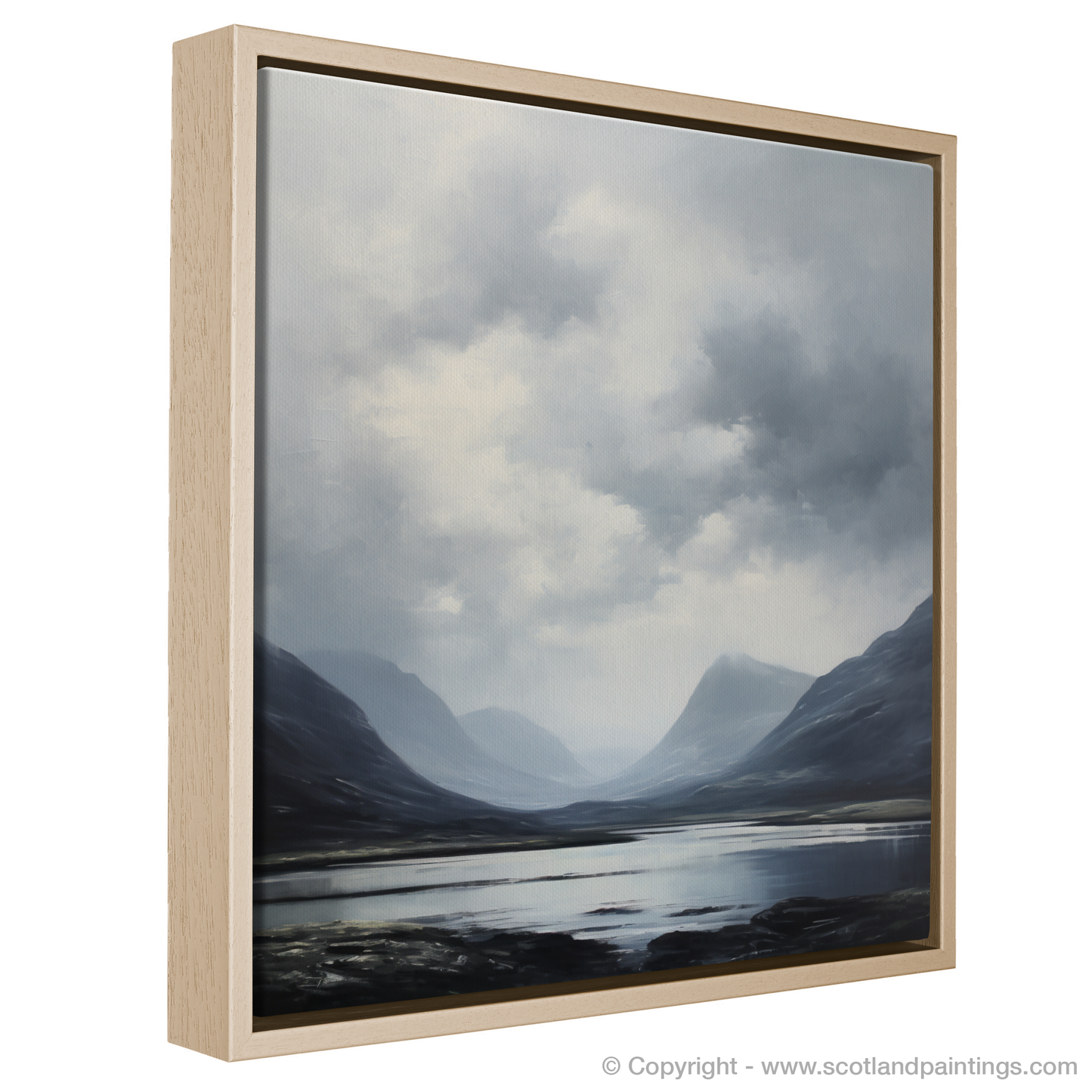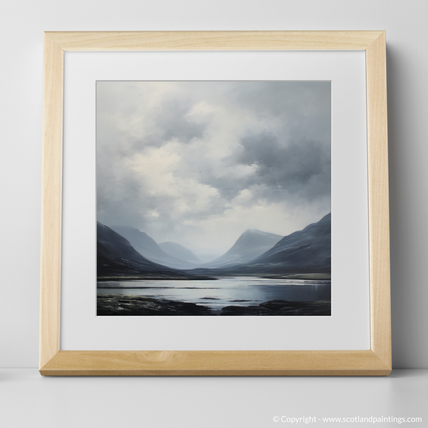Let the essence of the Scottish Highlands envelop your space with this evocative minimalist piece inspired by the brooding drama of Glencoe's skies. Embracing the power of simplicity, this print captures the vastness and the stirring emotion of one of Scotland's most iconic landscapes. The artwork's restrained colour palette is dominated by shades of grey, with subtle gradations invoking the fleeting, ephemeral light unique to this enchanting region.