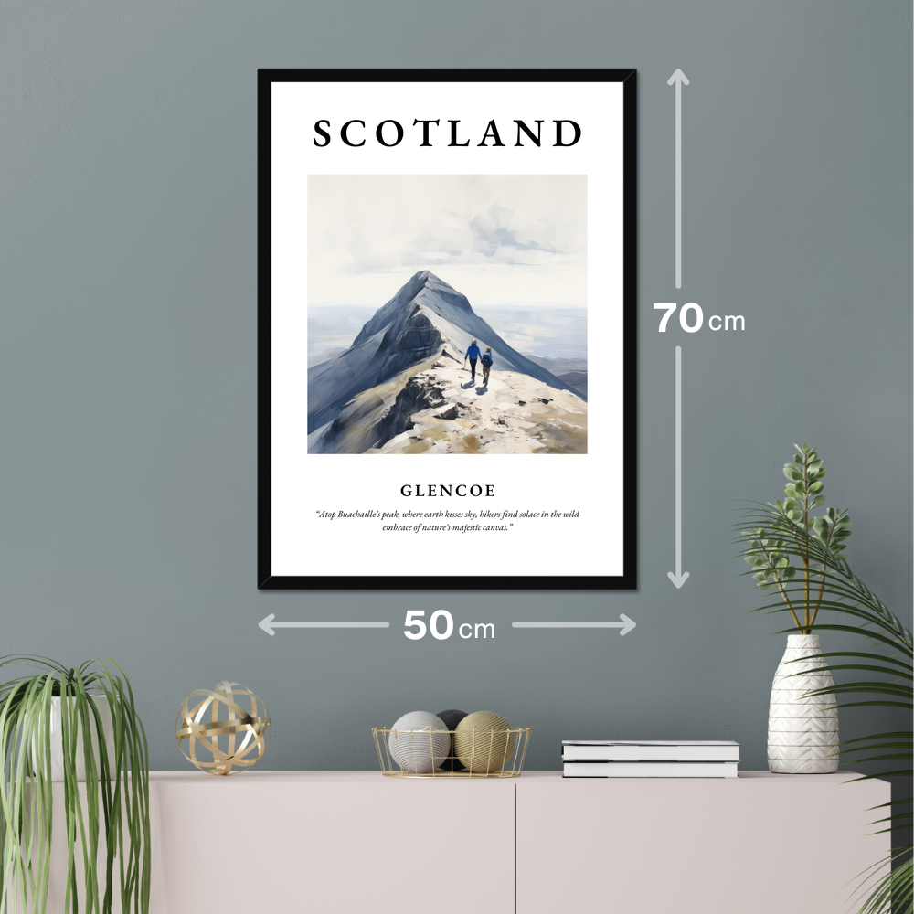 Immerse yourself in the breathtaking beauty of Scotland with this exceptional framed poster from our "Glencoe" collection. Measuring an impressive 50cm x 70cm, this minimalist masterpiece is more than just a picture; it’s an evocation of memory, adventure, and natural splendour. The word "SCOTLAND" crowns the image in bold lettering, boldly proclaiming its heritage, while a serene depiction of Glencoe unfolds just below.