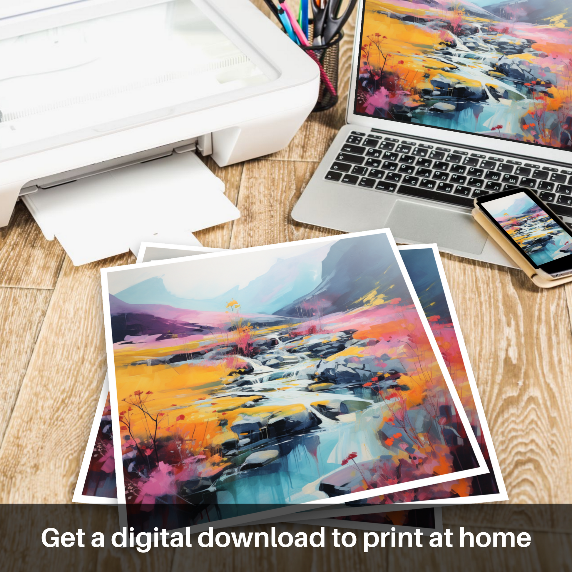 Evoke the mystery and majesty of one of Scotland's most legendary landscapes with this print, an exquisite addition to any room that seeks to stir the soul with its natural allure and artistic charm. Whether you're a lover of abstract art or a devotee of the Highlands, this print promises to become a focal point of admiration and conversation in your collection.
