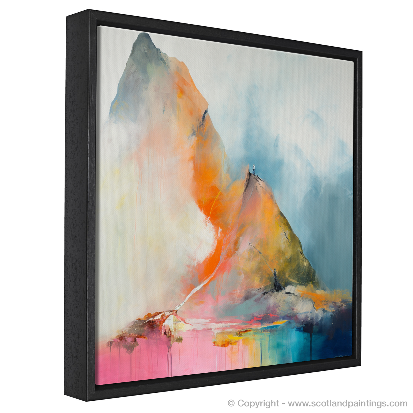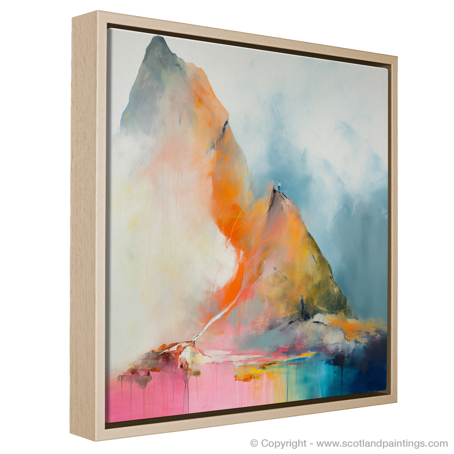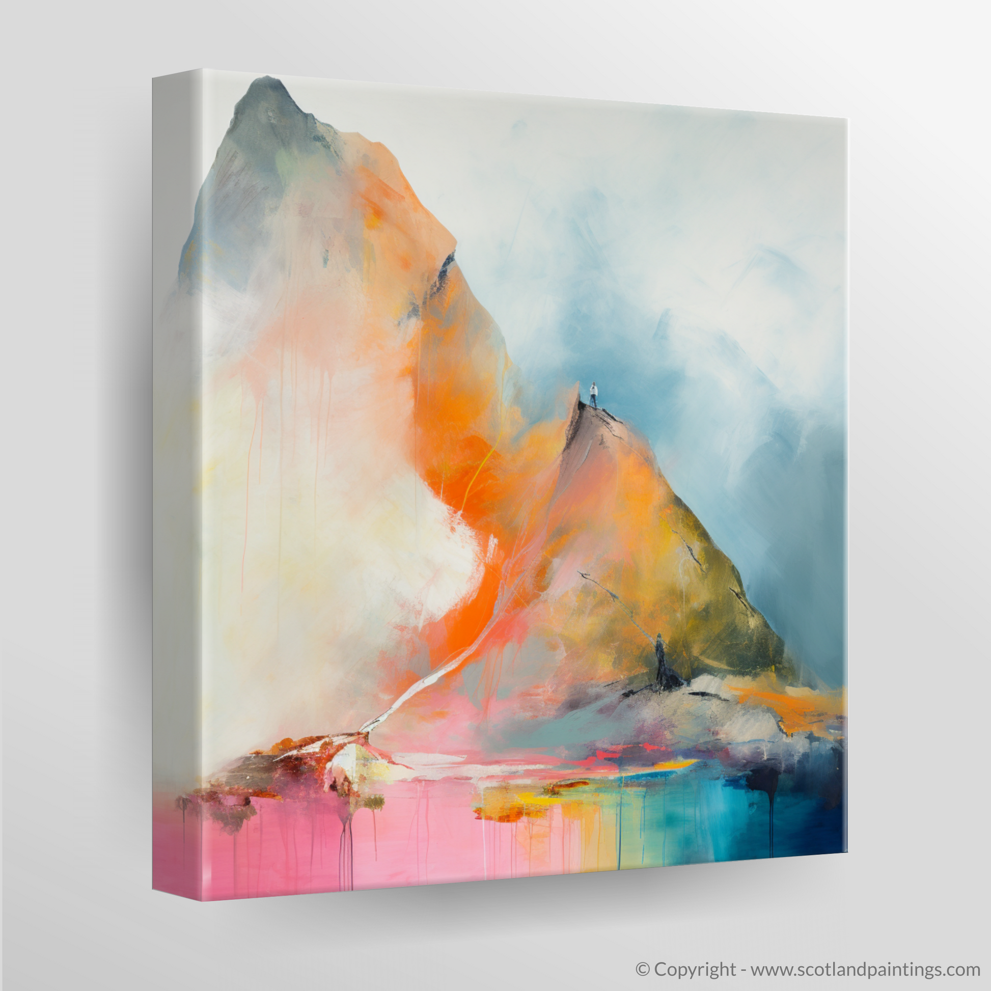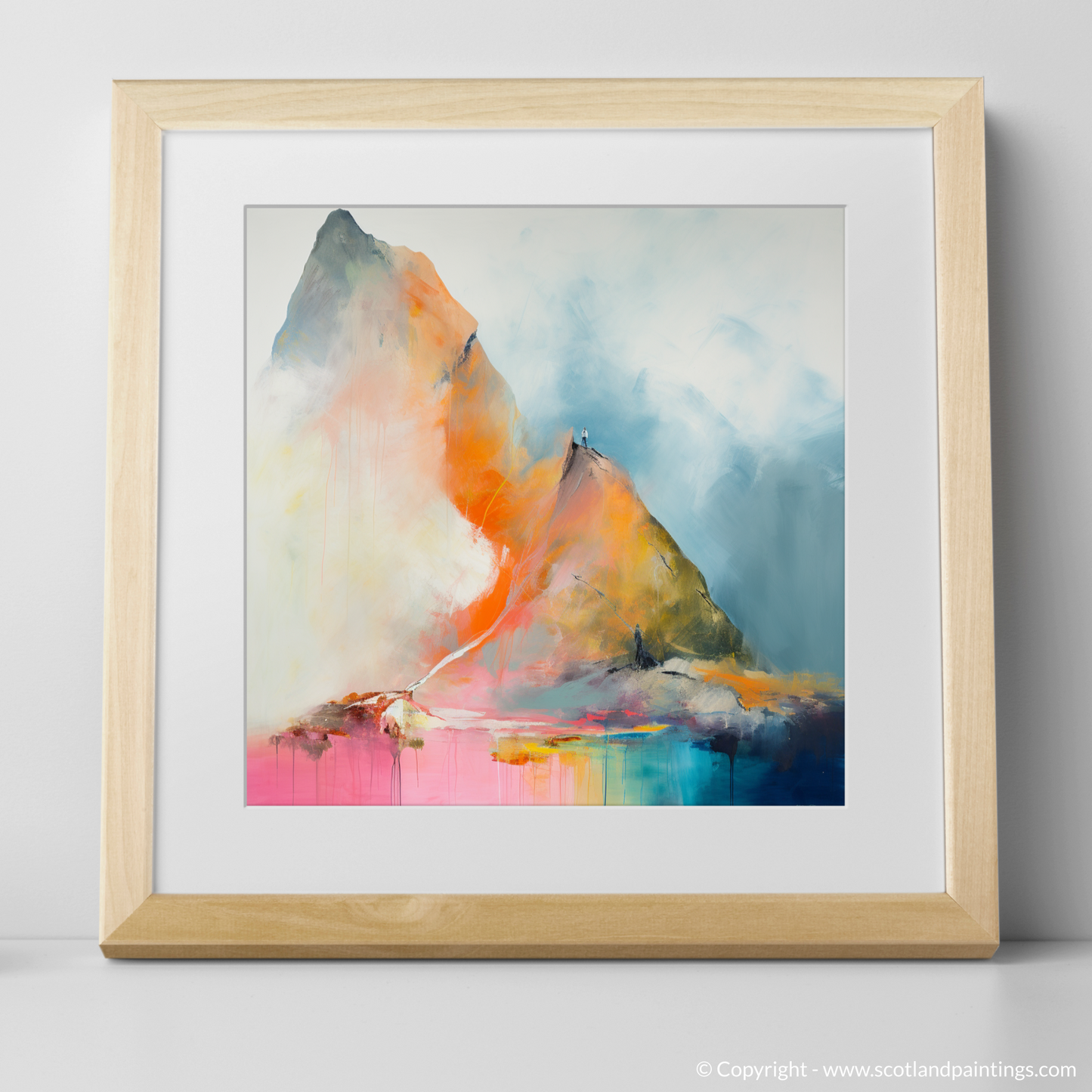 Immerse yourself in the atmospheric allure of Glencoe with this evocative abstract print. The essence of the Highlands has been masterfully captured through a bold symphony of vibrant hues and sweeping brushstrokes. Dominated by an enigmatic misty peak, the composition portrays a solitary climber reaching the summit, symbolising both isolation and triumph against the awe-inspiring backdrop.