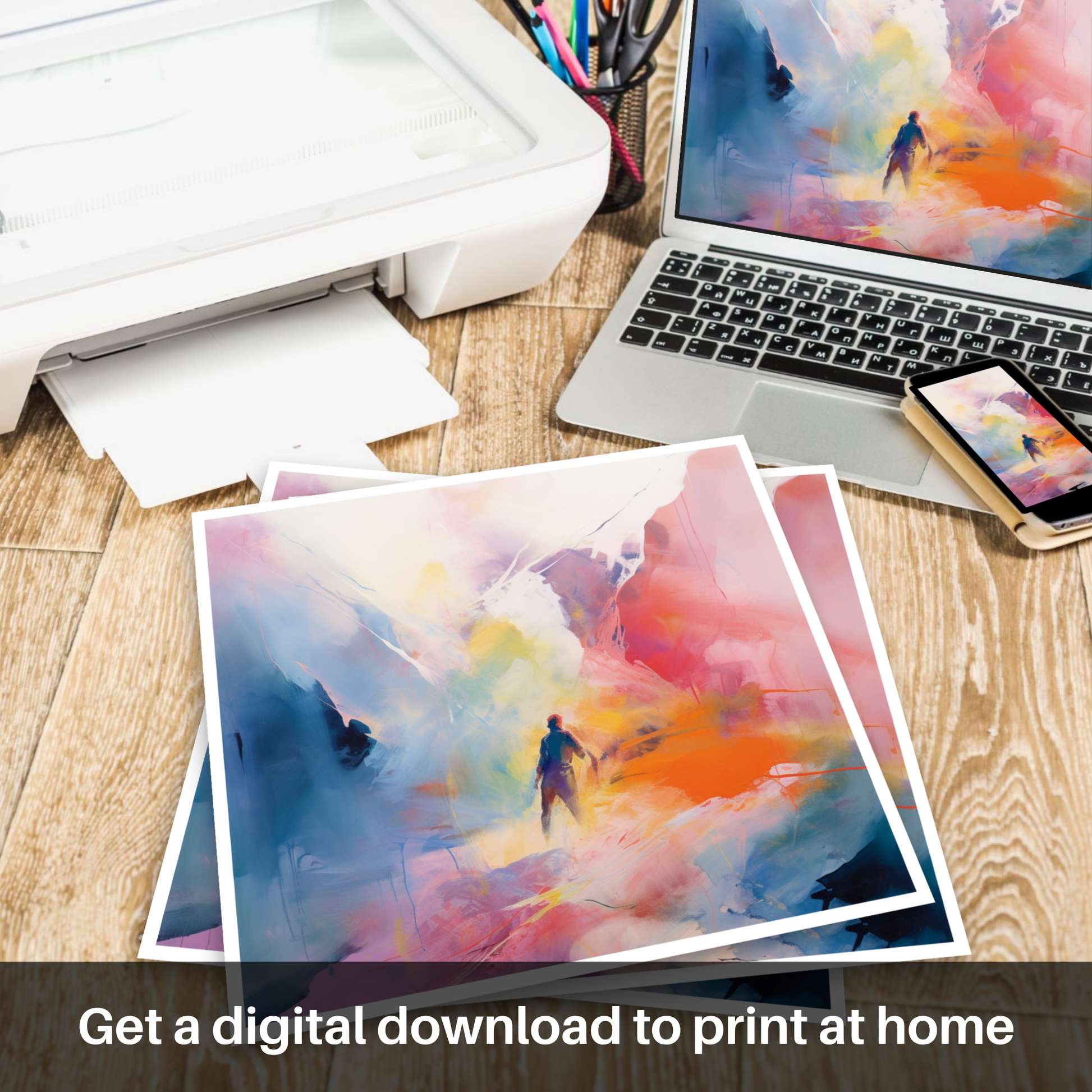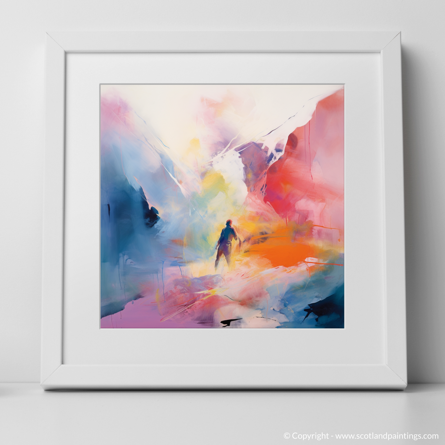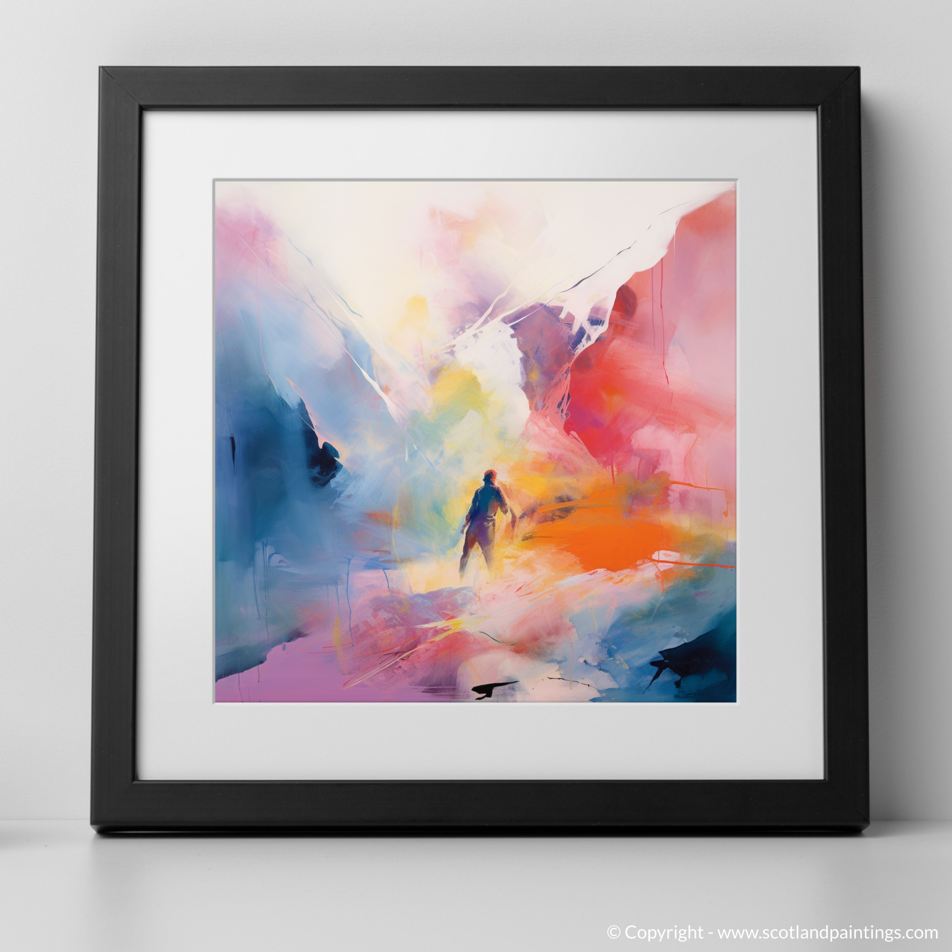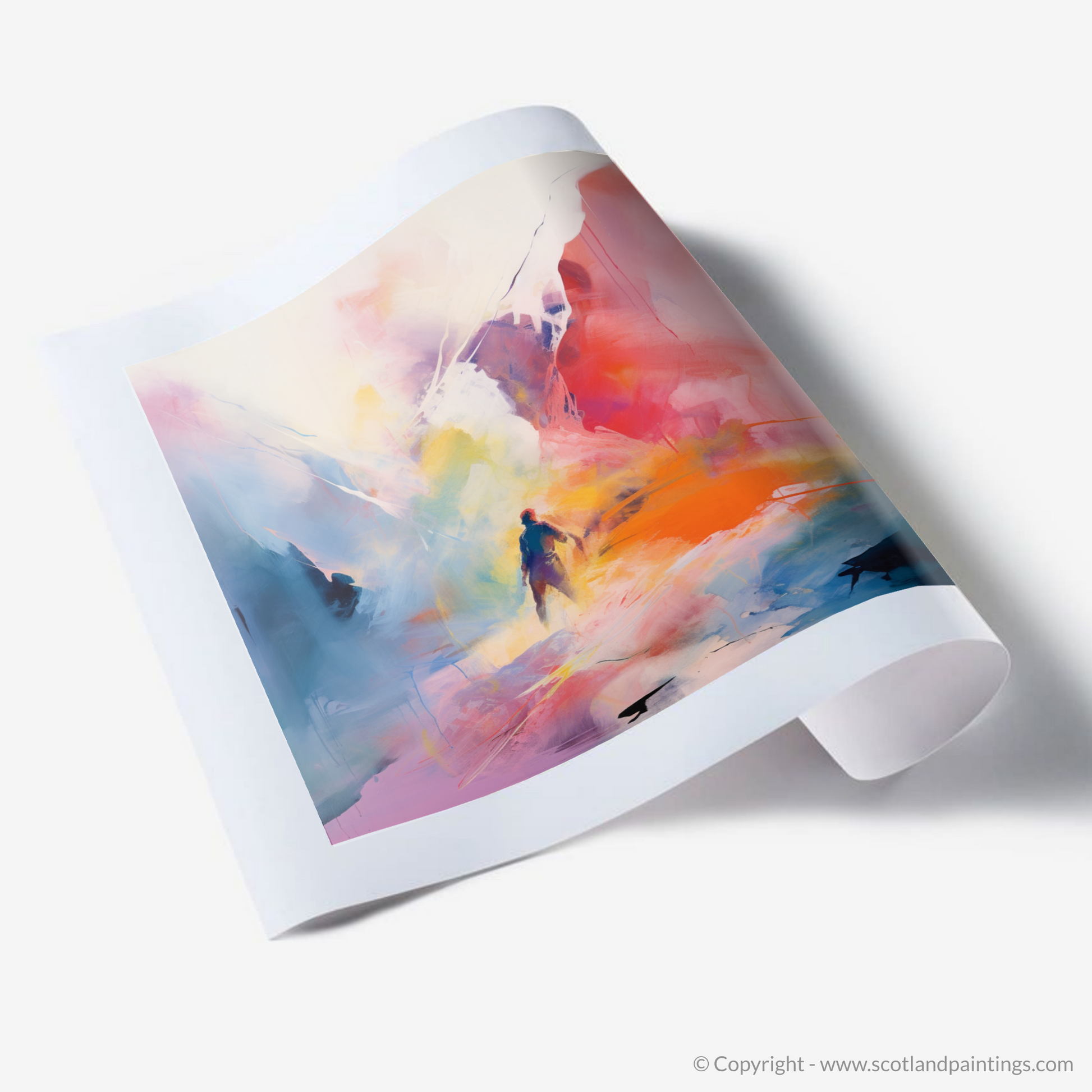 Perfect for enthusiasts of both nature and art, this abstract portrayal is poised to become a centrepiece in any space, adding a touch of introspective wonder to the location it adorns. Enliven your walls with this visual poem dedicated to the misty peaks of Glencoe and the daredevils who seek to conquer them.