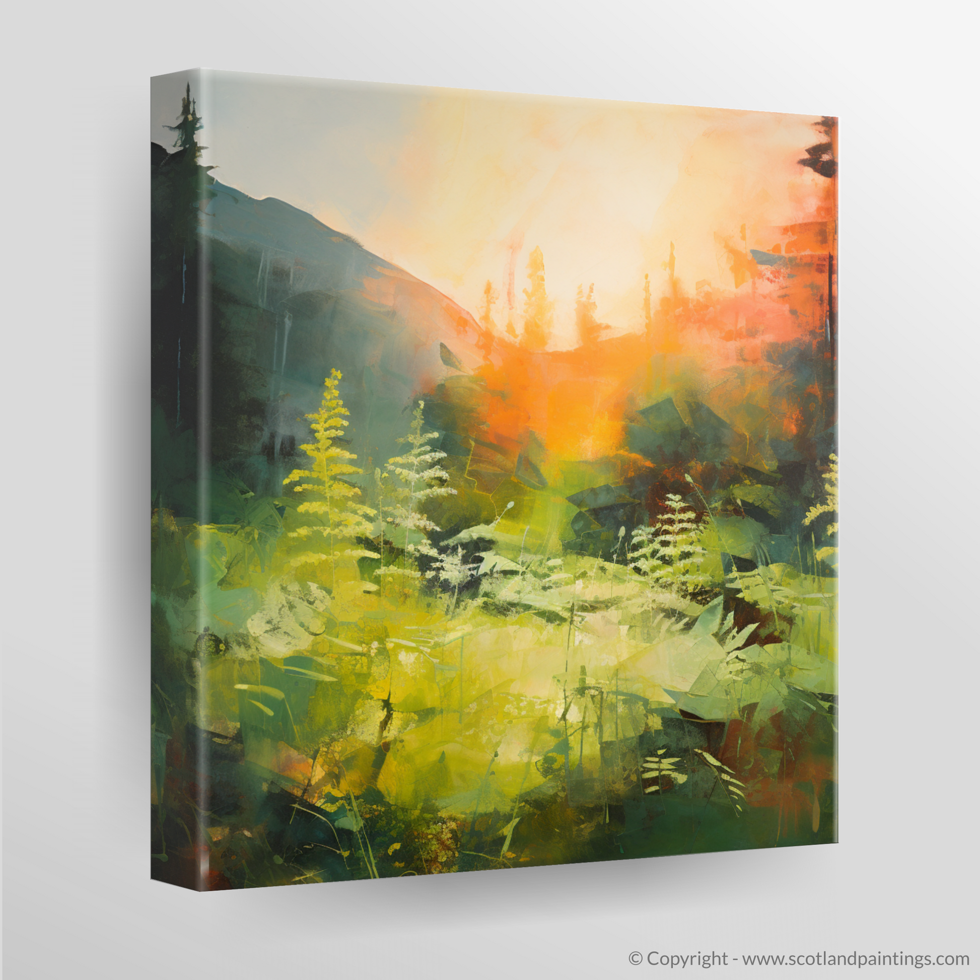 Immerse yourself in the abstract radiance of the Scottish Highlands with this striking print from our 'Glencoe' collection. Evoking the ephemeral beauty of golden hour, the piece is a masterful interplay of light and shadow where the natural world meets the canvas in a spectacle of colour.