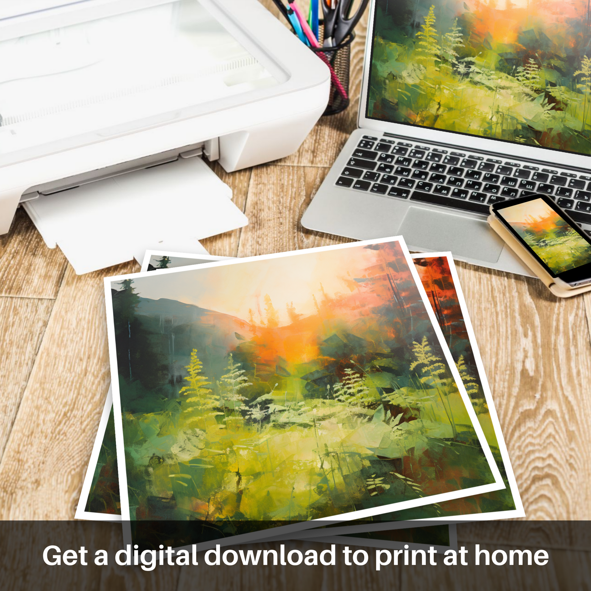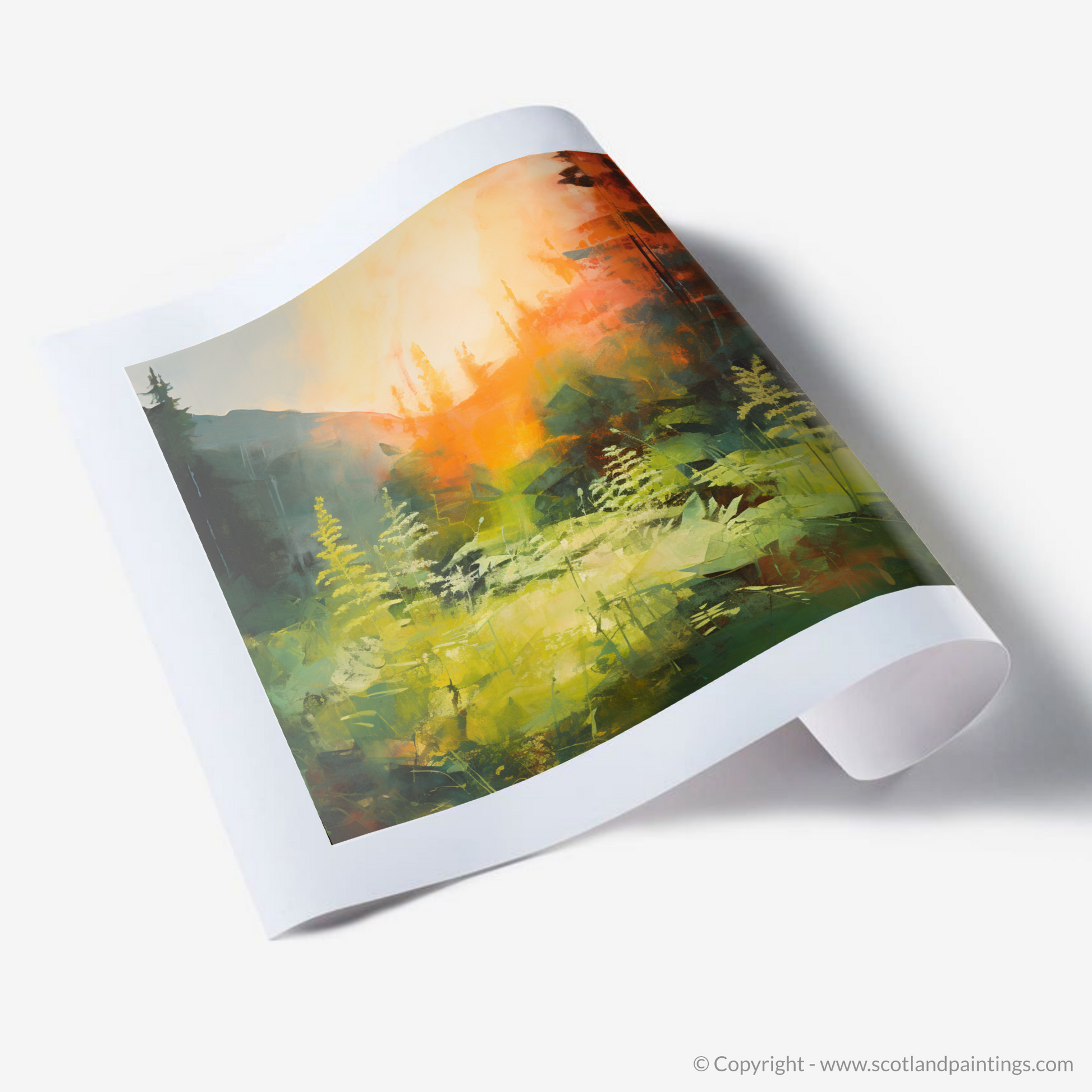This piece is a tribute to the magic hour—when nature's palette comes alive with its most vibrant colours, inviting viewers to lose themselves in a moment that is as transient as it is timeless. Perfect for those who wish to bring a touch of the Scottish wilderness into their living space, this print offers an abstract window to the tranquil splendour of Glencoe's glowing ferns.