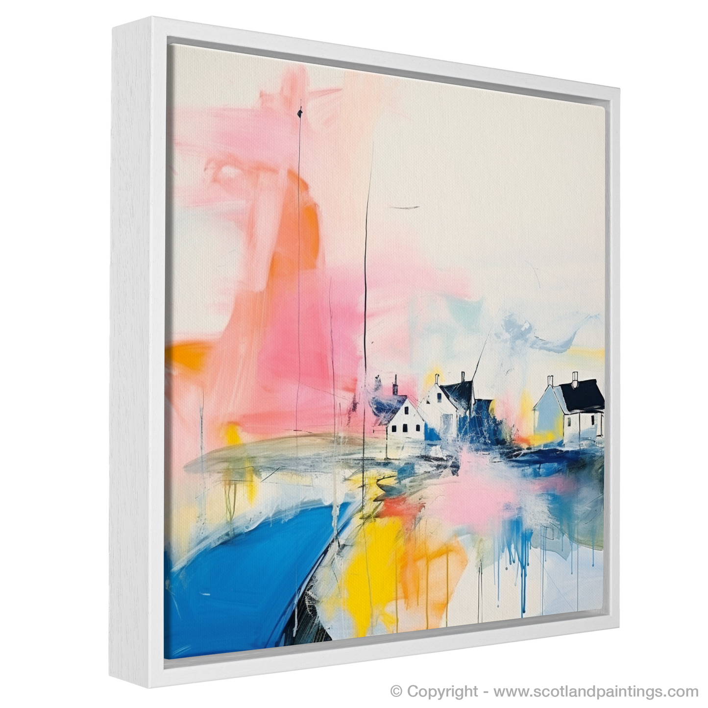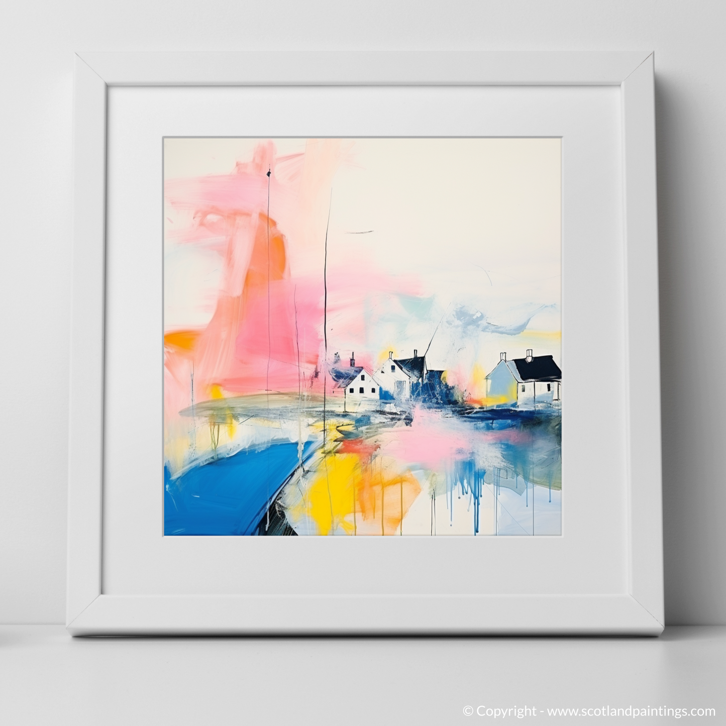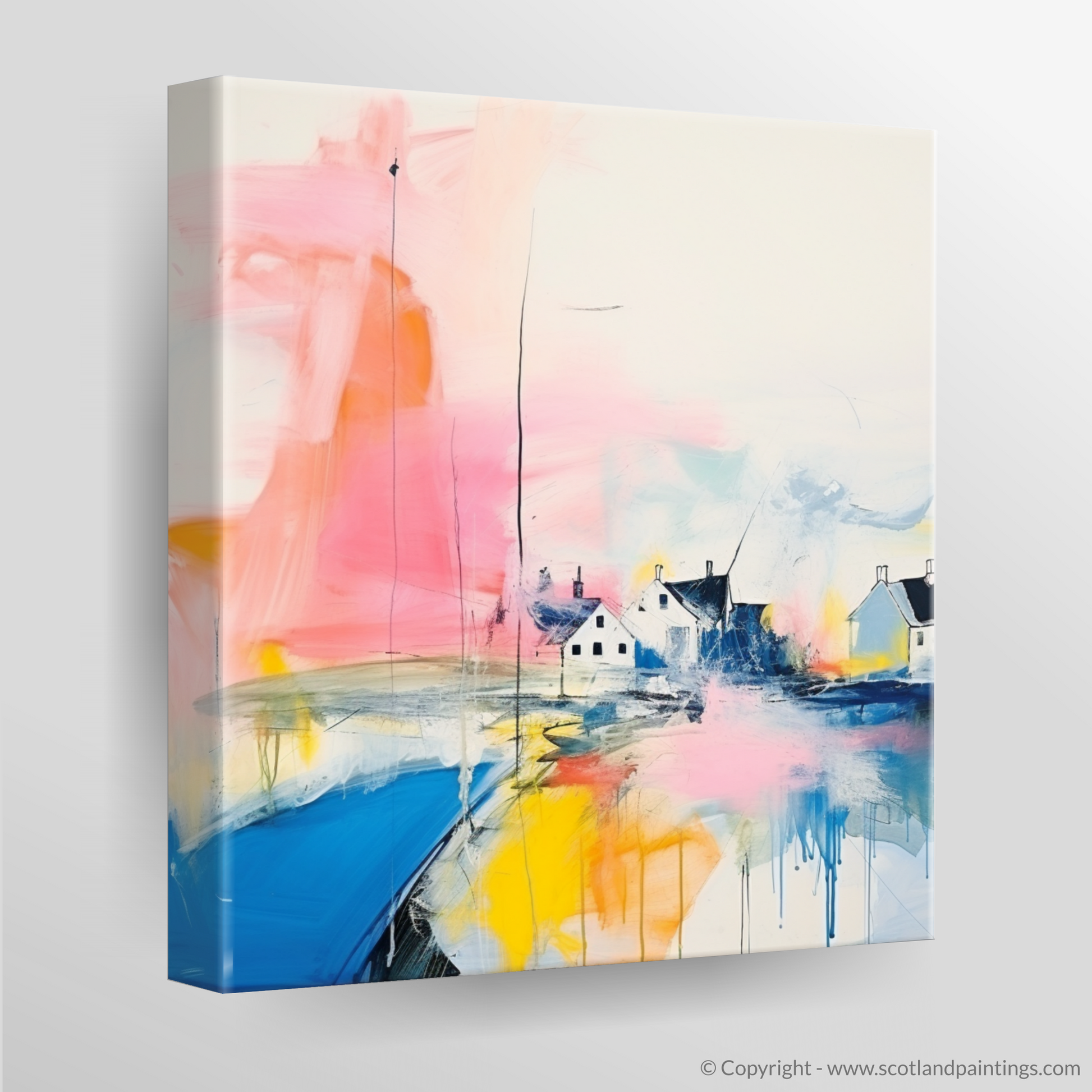 Immerse yourself in the vibrant essence of Aberdeen with this captivating abstract print, a spirited homage to the Granite City nestled in Aberdeenshire. Sweeping strokes of cerulean blue and bright yellow hues dance across the canvas, symbolizing the dynamic juxtaposition of the city's bustling harbour and the tranquil, golden sands of its beach. Bold splotches of coral and pink infuse the piece with the warmth of a sunset bathing the city's historic architecture.