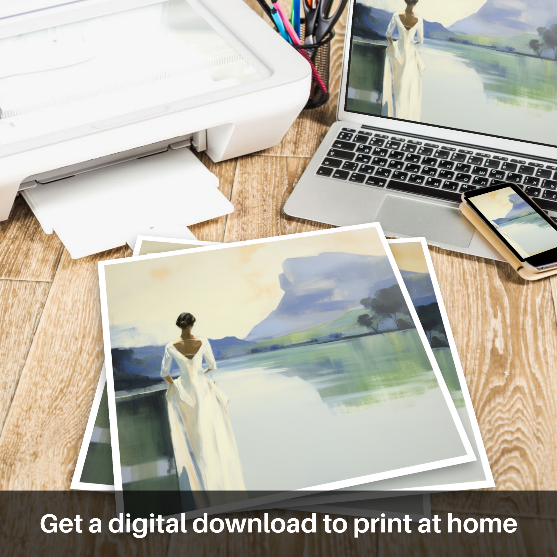 This print, a paramount piece of our 'White Dress' collection, is not merely a visual feast but an evocative journey that resonates with a sense of peace, solitude, and introspection. It is an essence, a mood, a whisper of the Scottish lochs crystallised onto canvas, now available for your personal collection to admire and muse upon daily.