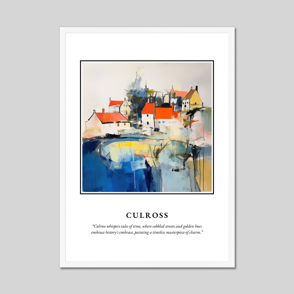 The abstract depiction of this storied village in our poster beautifully encapsulates the harmony between Culross's rich history and its vibrant present. This artwork is not merely a visual delight but a daily reminder of the charm and tales of a place where every corner whispers stories old and new.