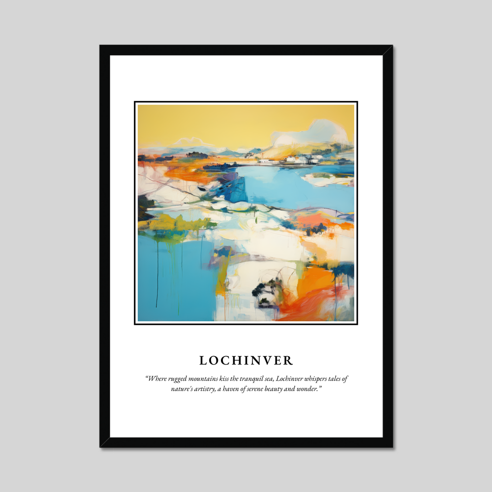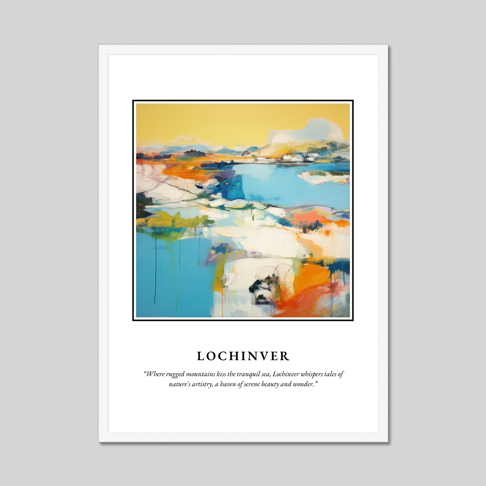 The abstract painting beautifully represented in our poster captures the essence of Lochinver's unique charm—a blend of untamed nature and serene tranquillity. With this artwork, you invite the serene beauty and wonder of Lochinver into your home, a testament to Scotland’s rich natural artistry that continues to inspire and captivate.