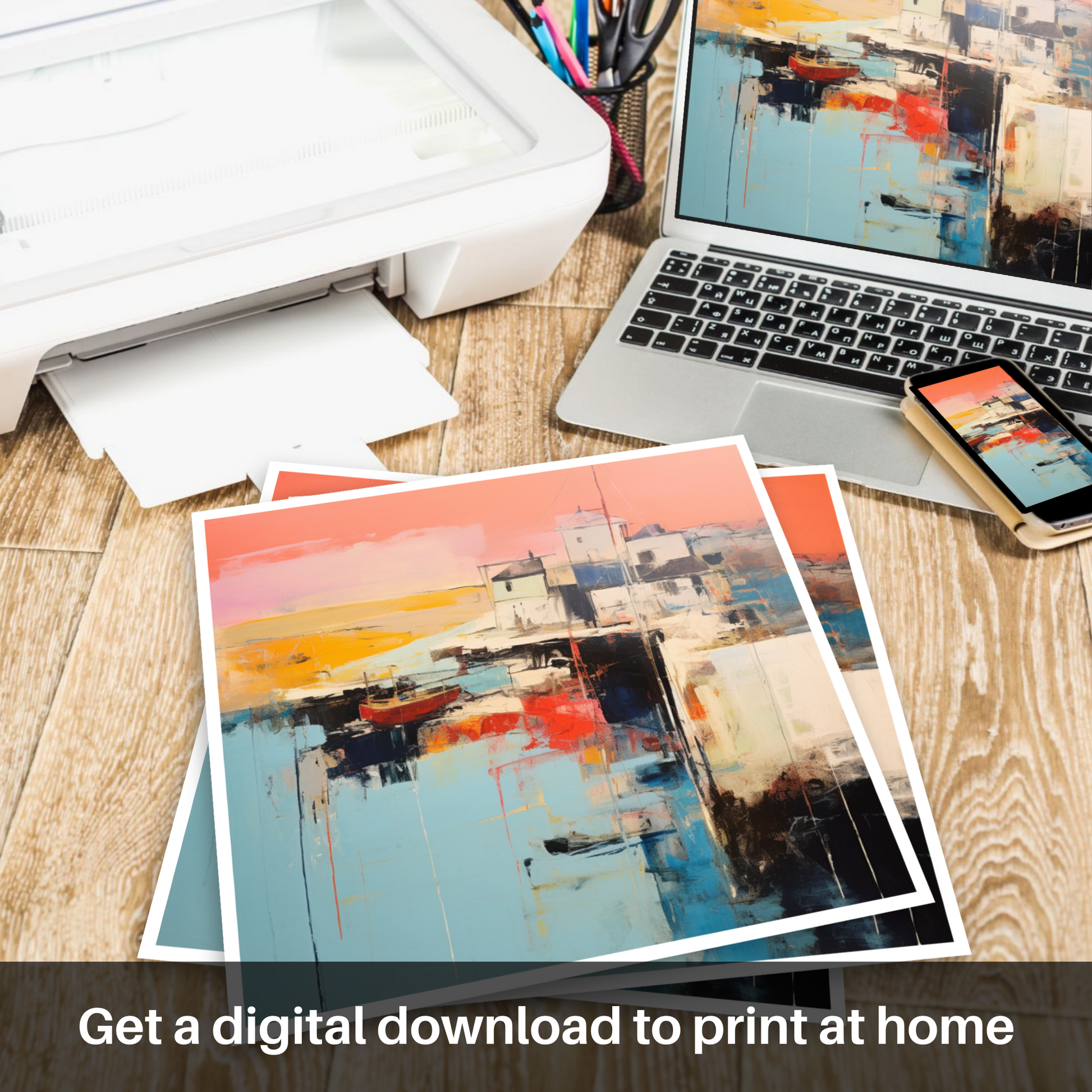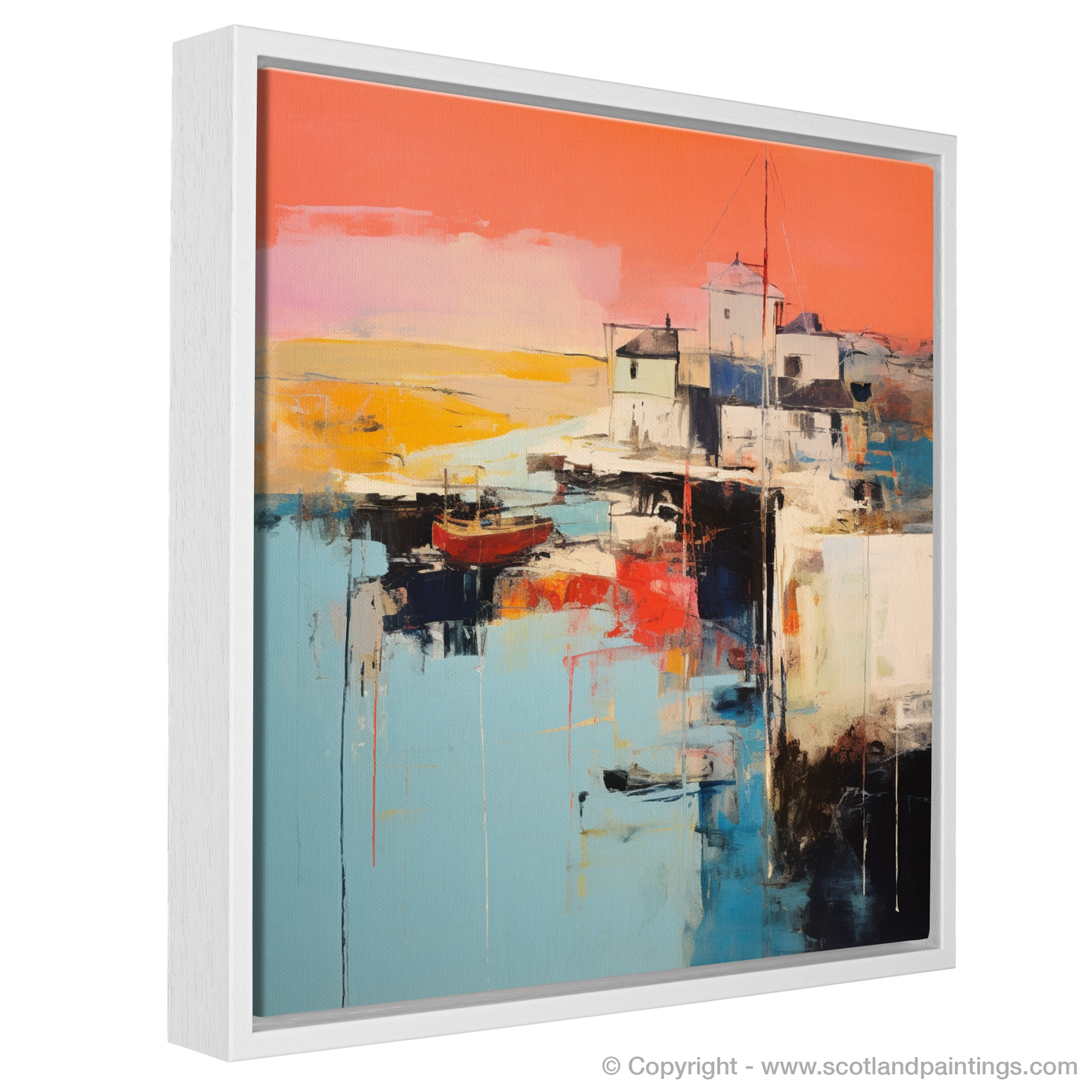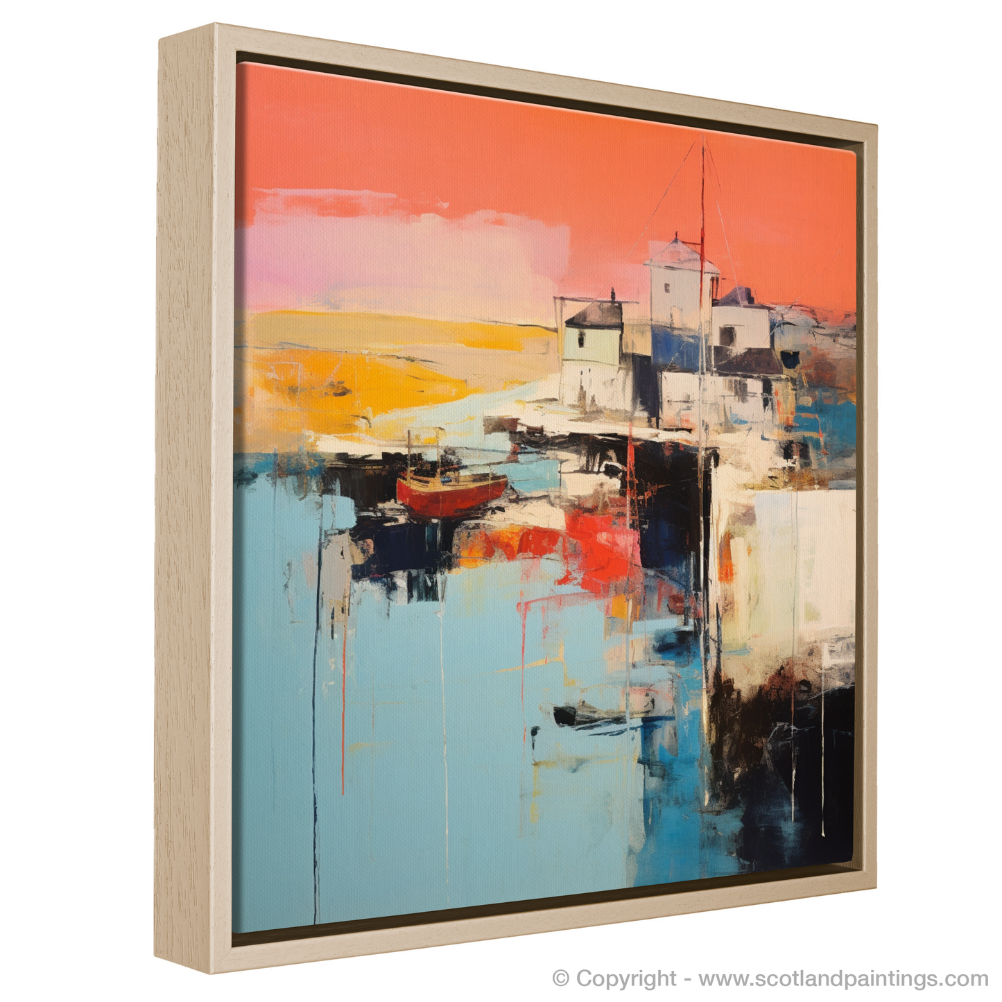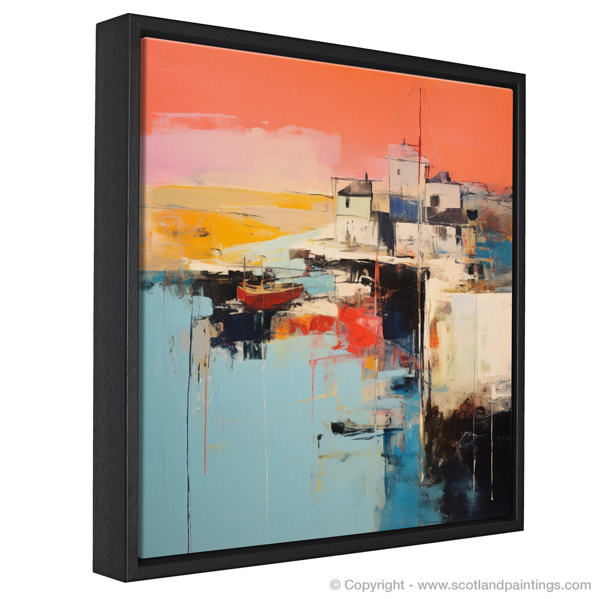 Capturing the ephemeral glow of twilight as it kisses the day's end, this evocative print brings the serene beauty of Cullen Harbour to life through a symphony of abstract splendour. The canvas is awash with a vivacious palette, where the boldness of fiery corals and oranges seamlessly transitions into the subdued whispers of pastel yellows, mirroring a sunset's fleeting dance across the horizon.