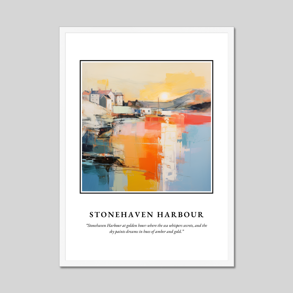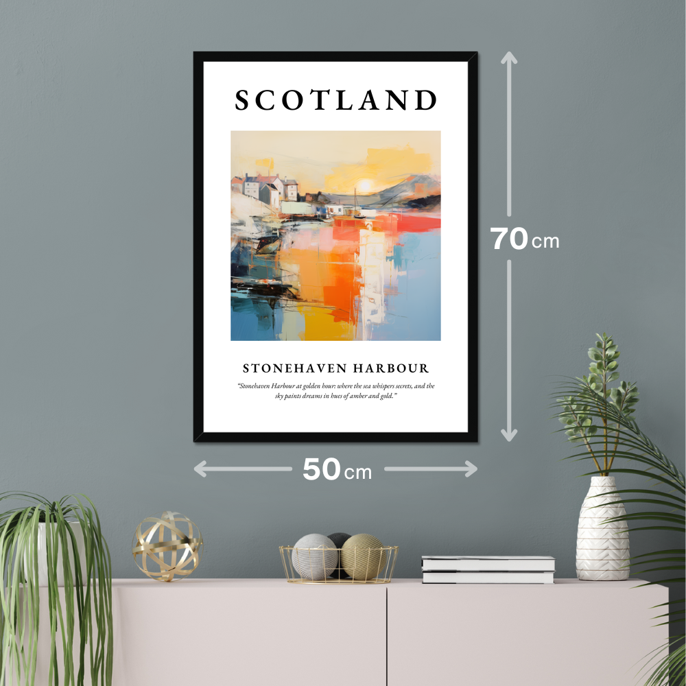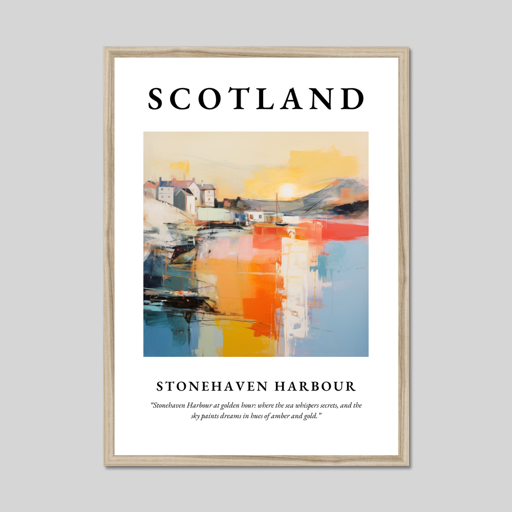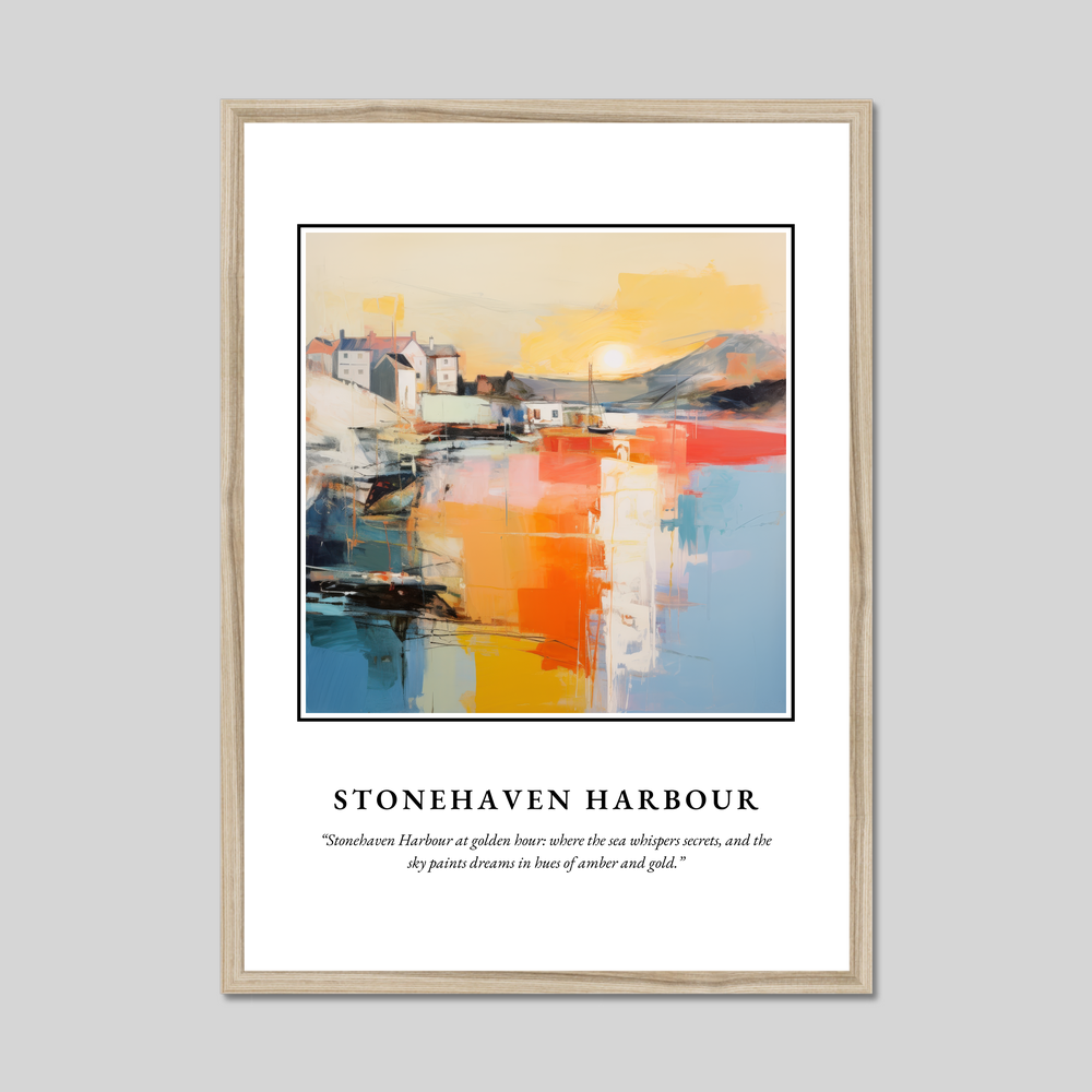 Celebrate the enchanting beauty of Scotland with our striking framed poster print, a stunning focal point for any room. Measuring 50cm x 70cm, this large poster elegantly captures the magic of Stonehaven Harbour in a captivating abstract style. Choose from black, white, or natural wood-effect frames to complement your decor and make this art piece a true centrepiece.