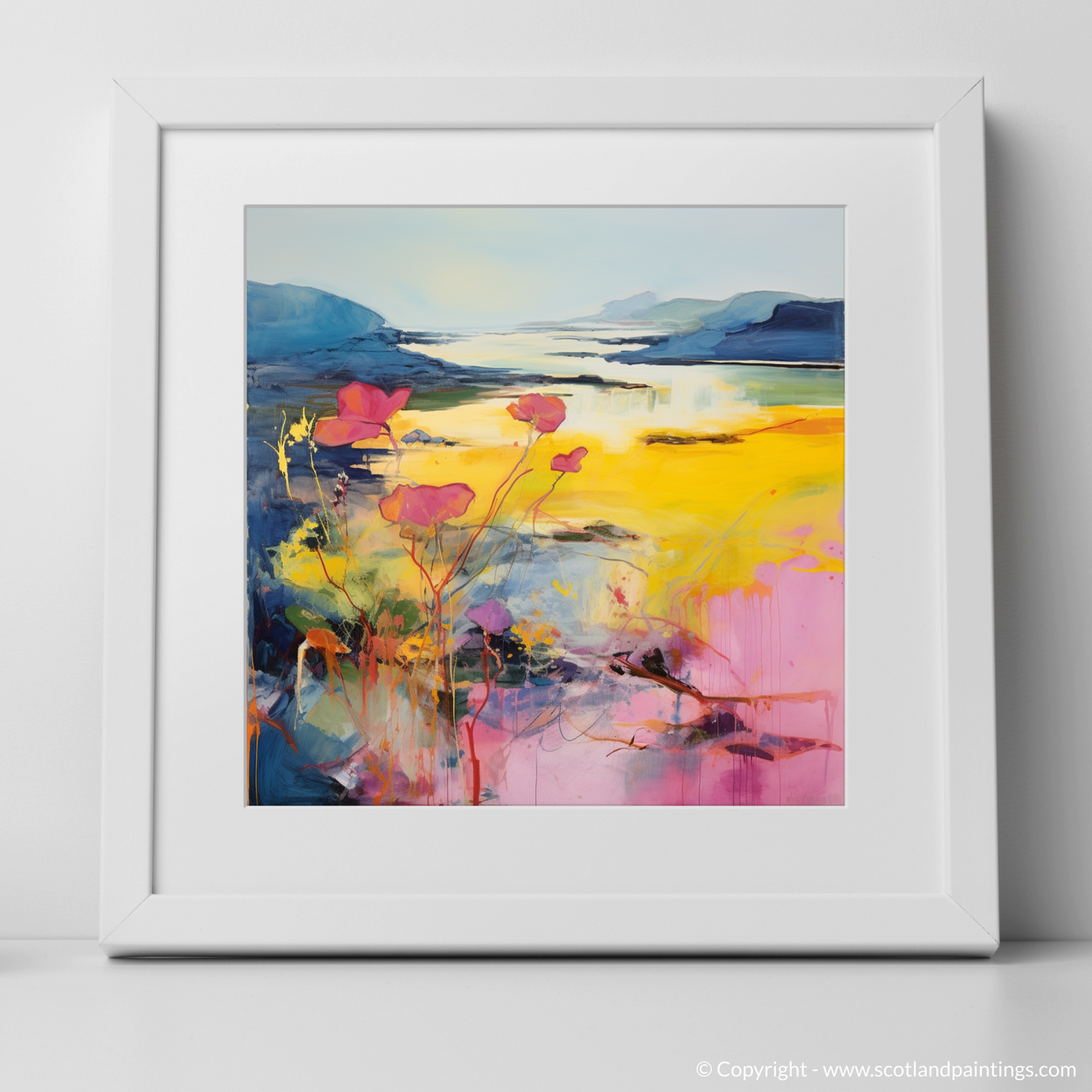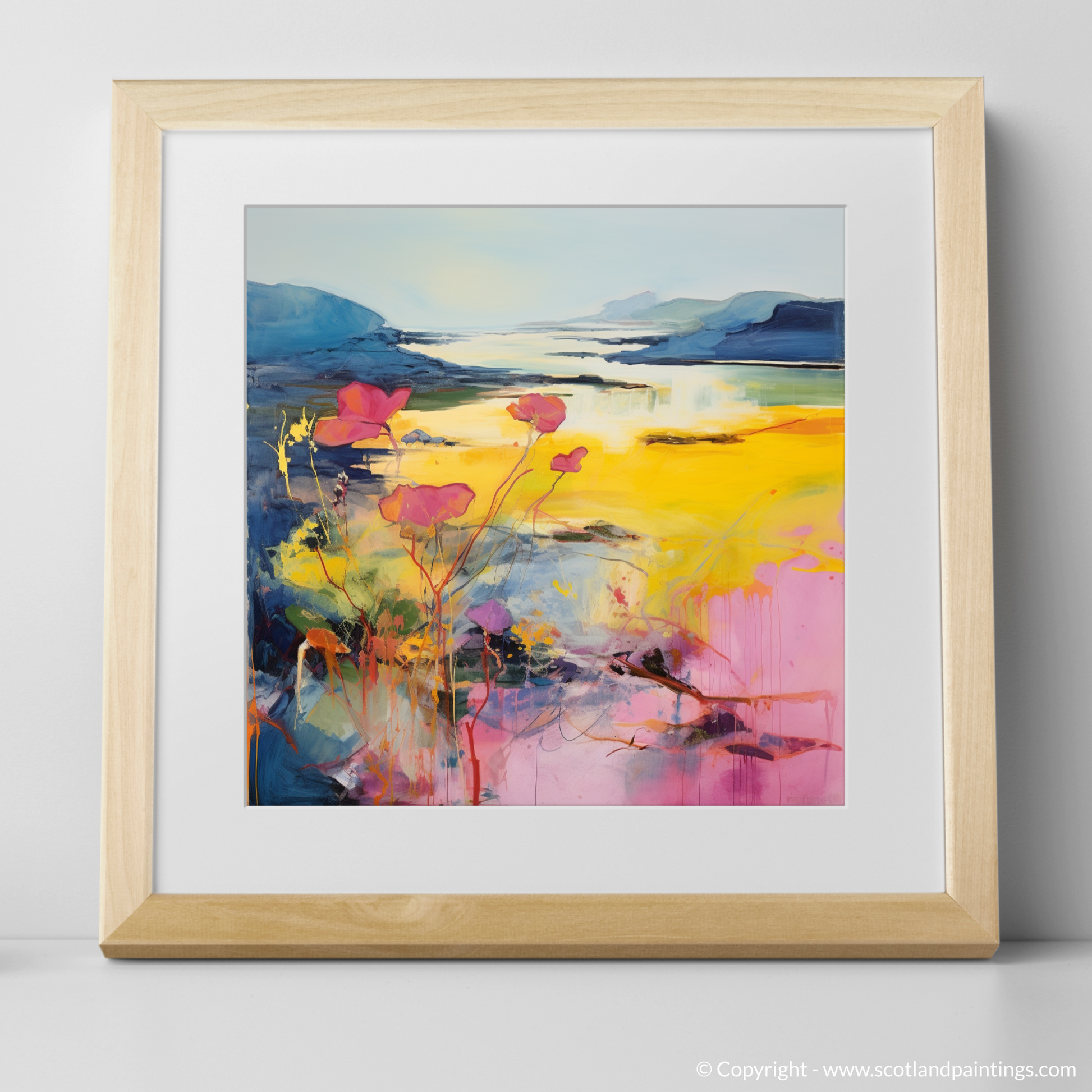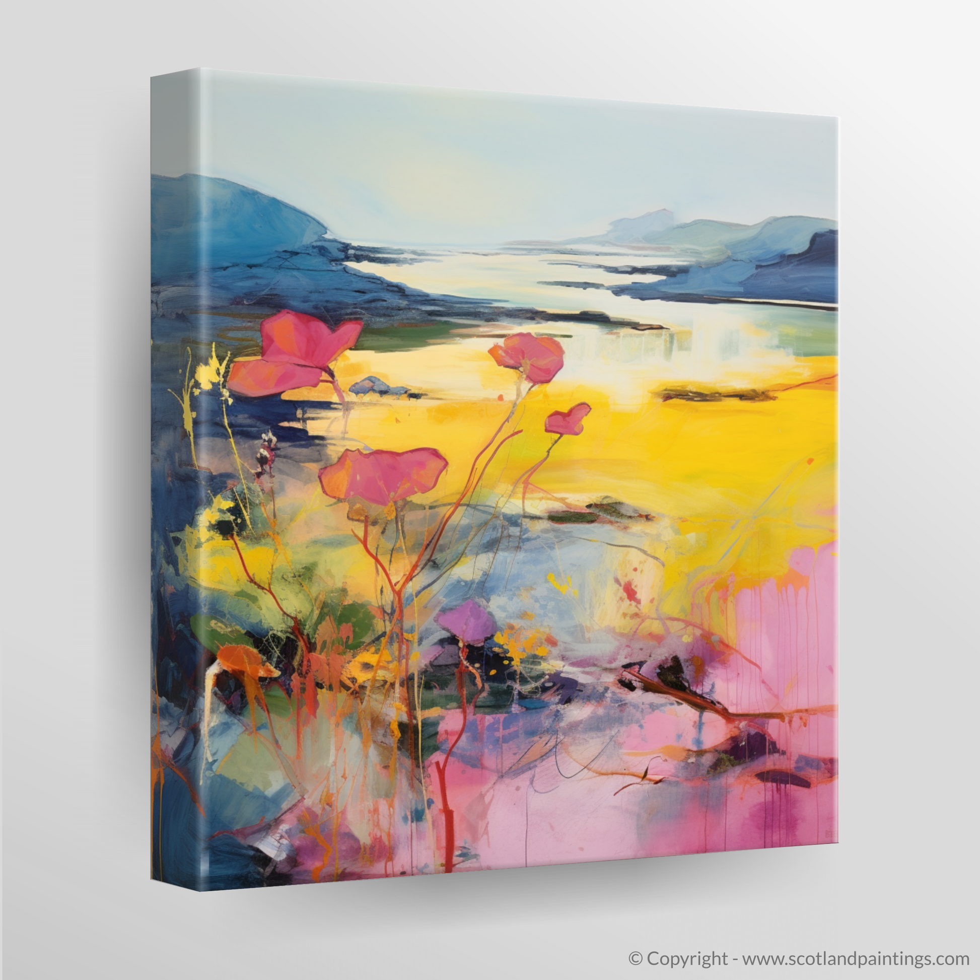 Imagine the wild, untamed beauty of Argyll and Bute's coastline, translated through the vivid and evocative strokes of abstract art. This entrancing print captures the essence of primrose blossoms as they sway gently in the coastal breeze, their delicate forms set against a backdrop of sweeping Scottish vistas.