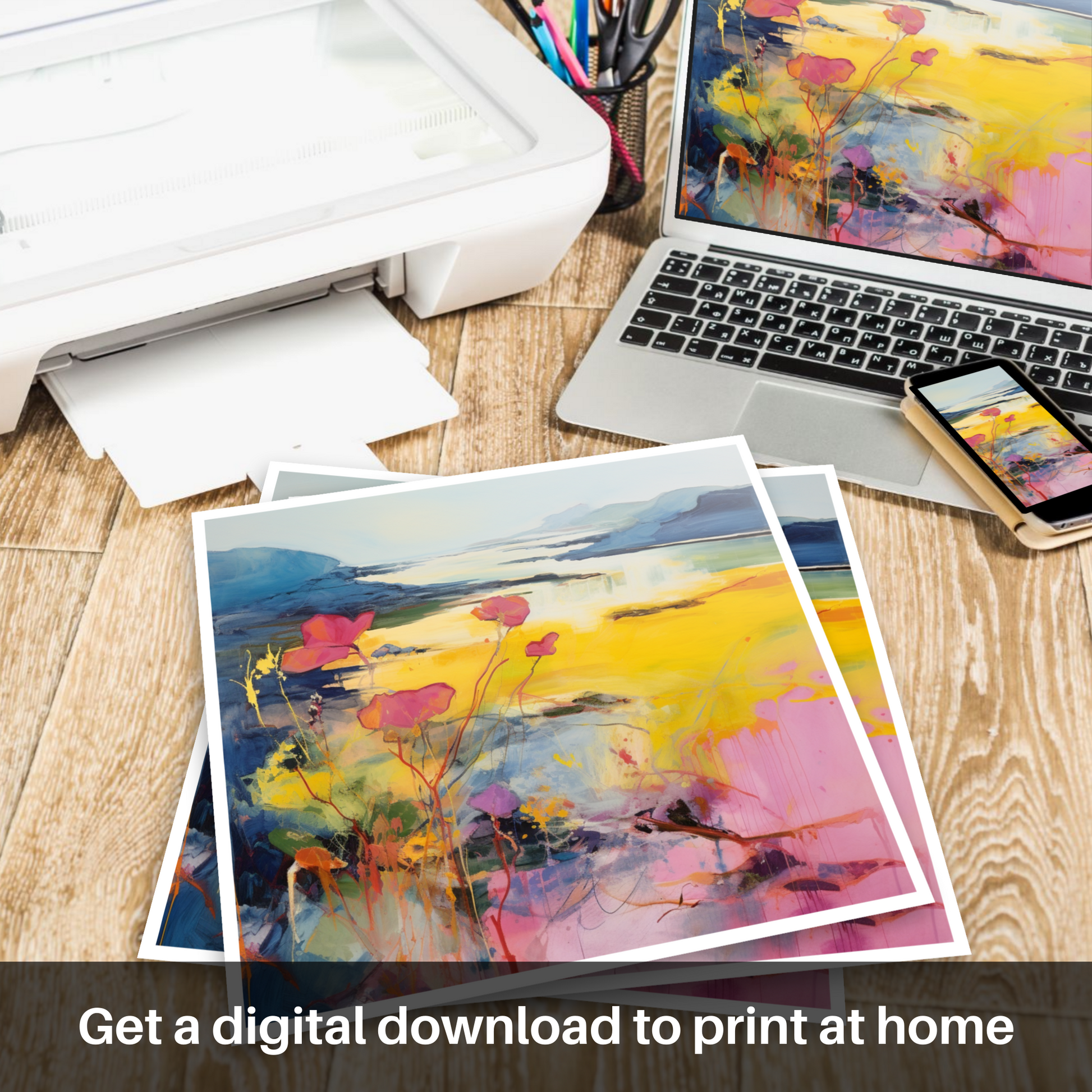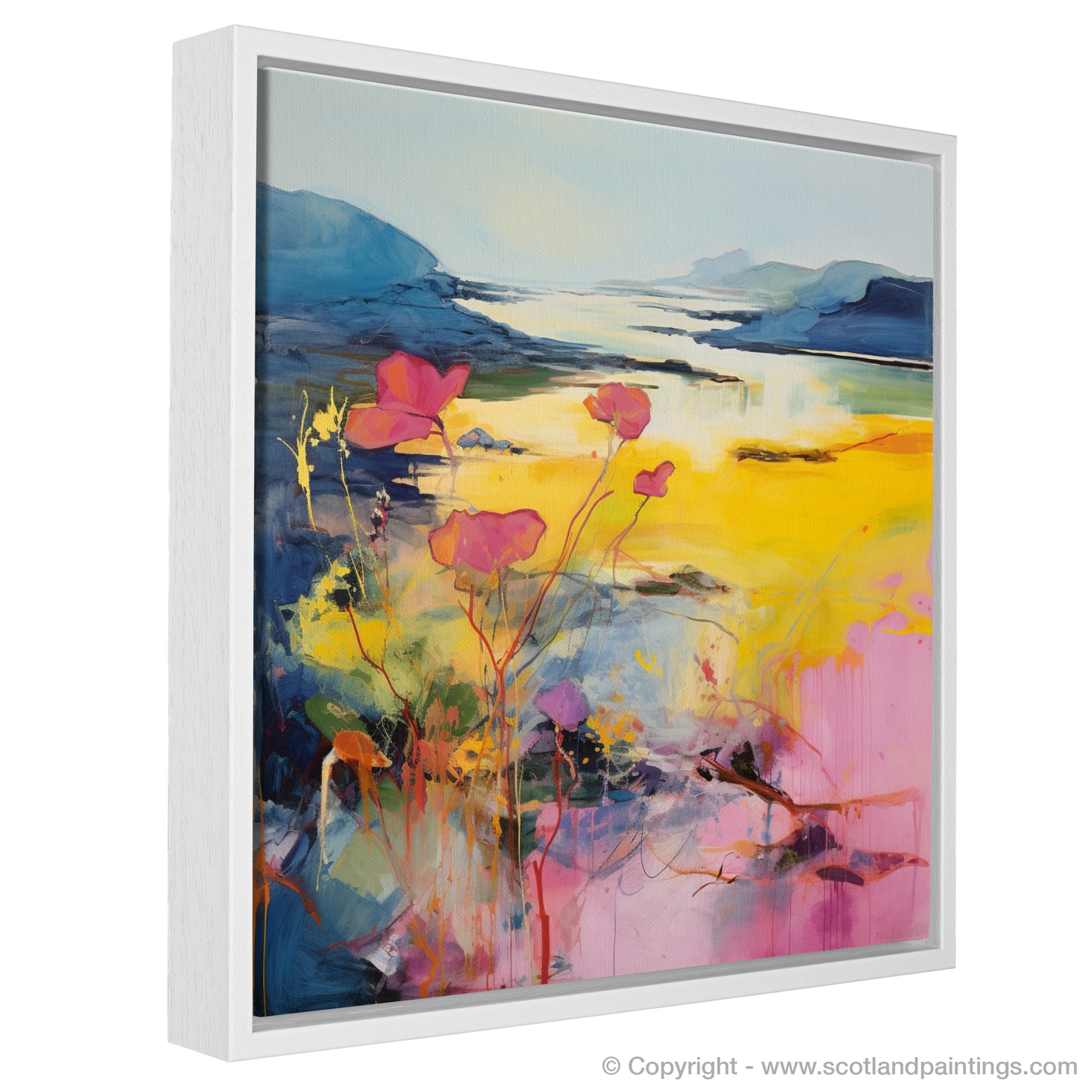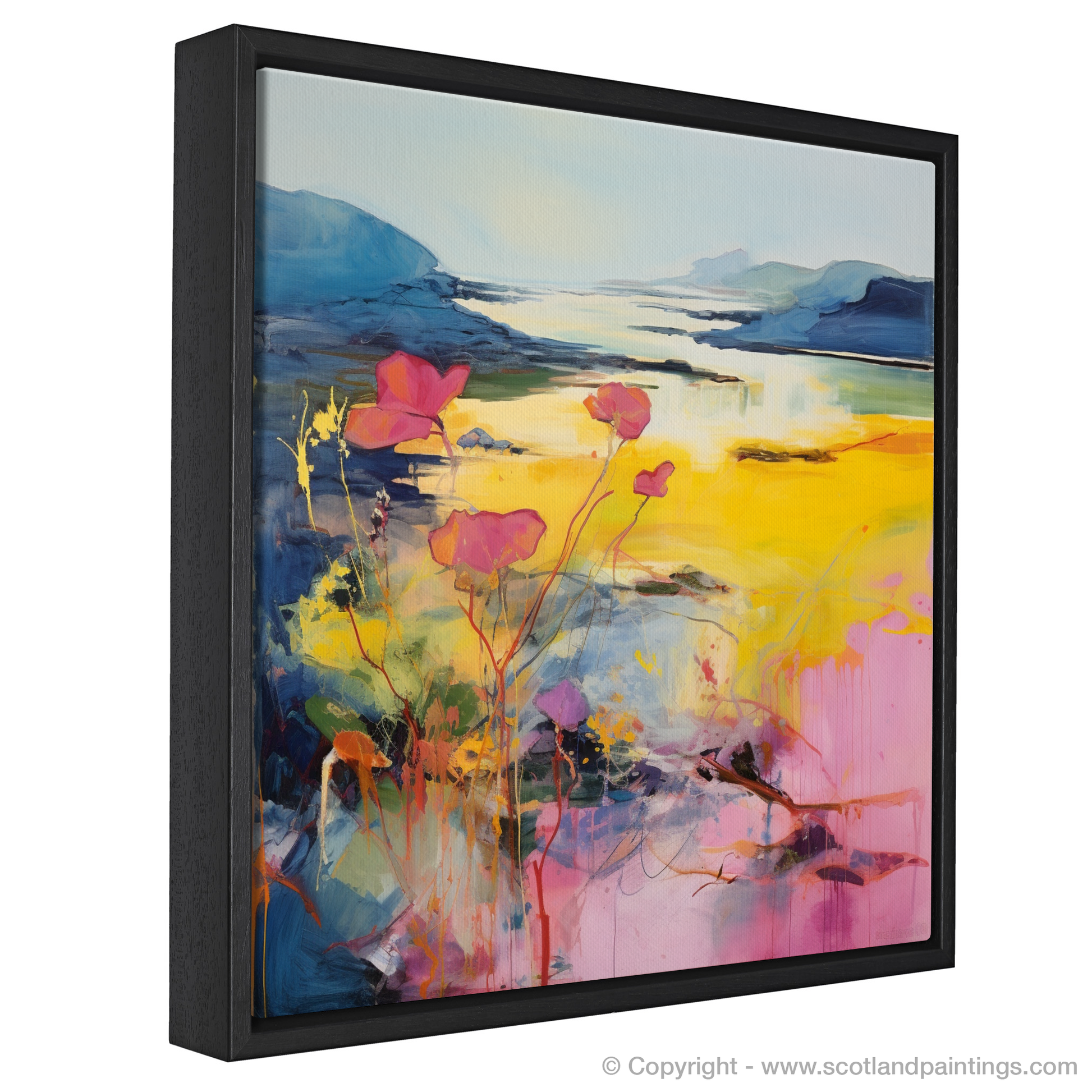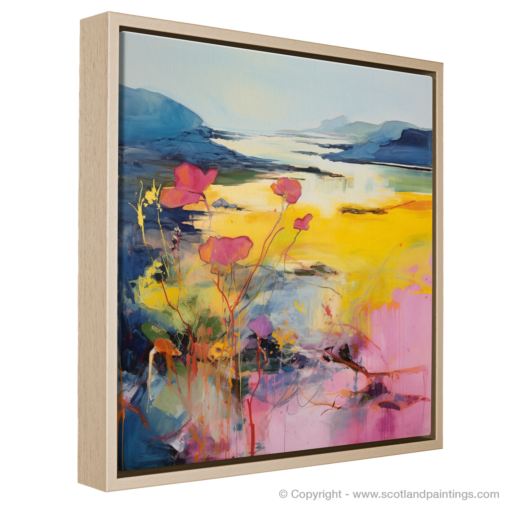Imagine the wild, untamed beauty of Argyll and Bute's coastline, translated through the vivid and evocative strokes of abstract art. This entrancing print captures the essence of primrose blossoms as they sway gently in the coastal breeze, their delicate forms set against a backdrop of sweeping Scottish vistas.