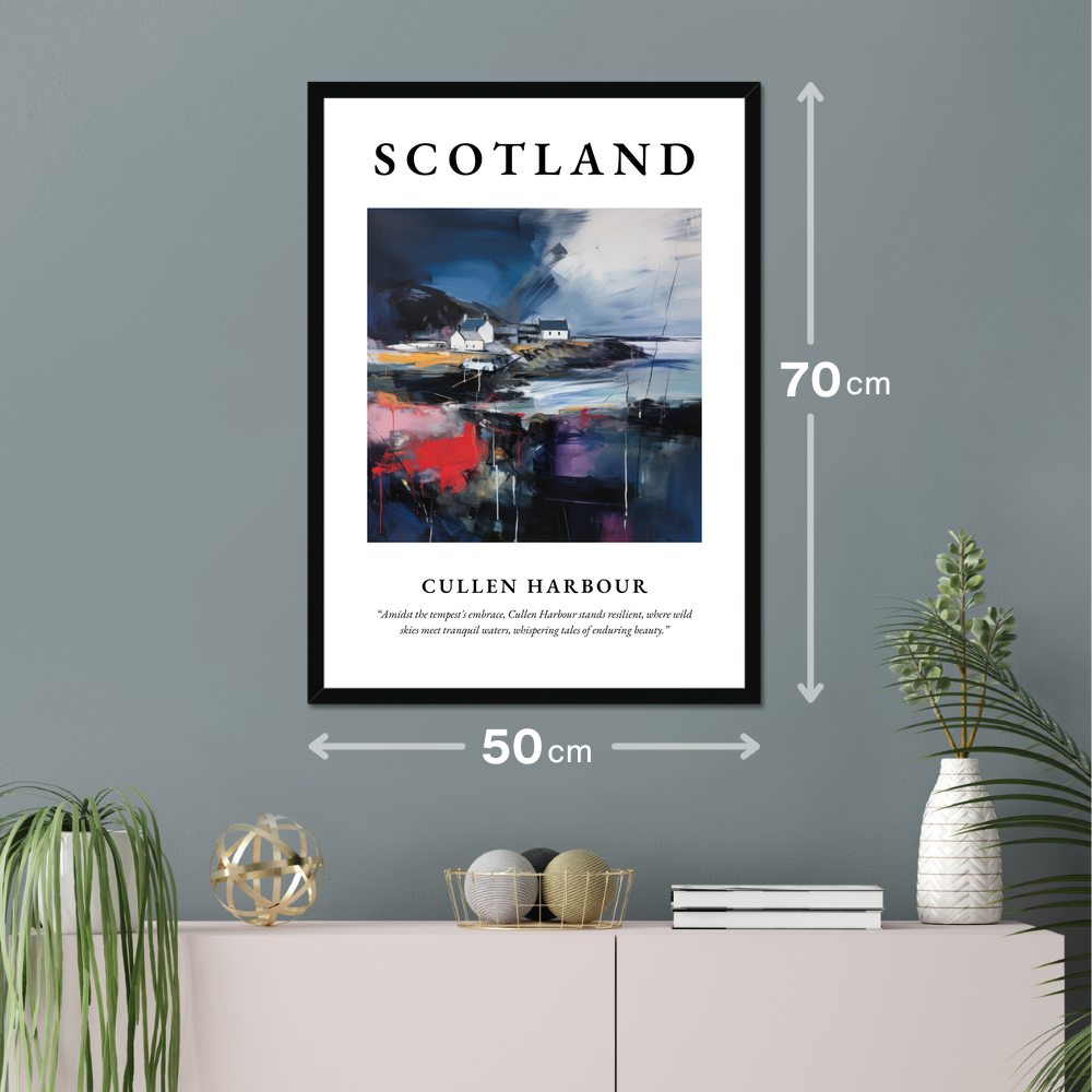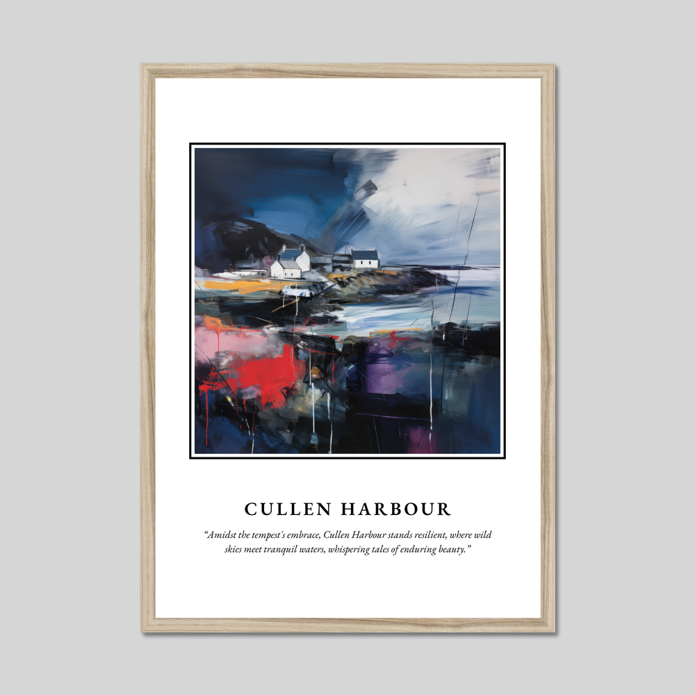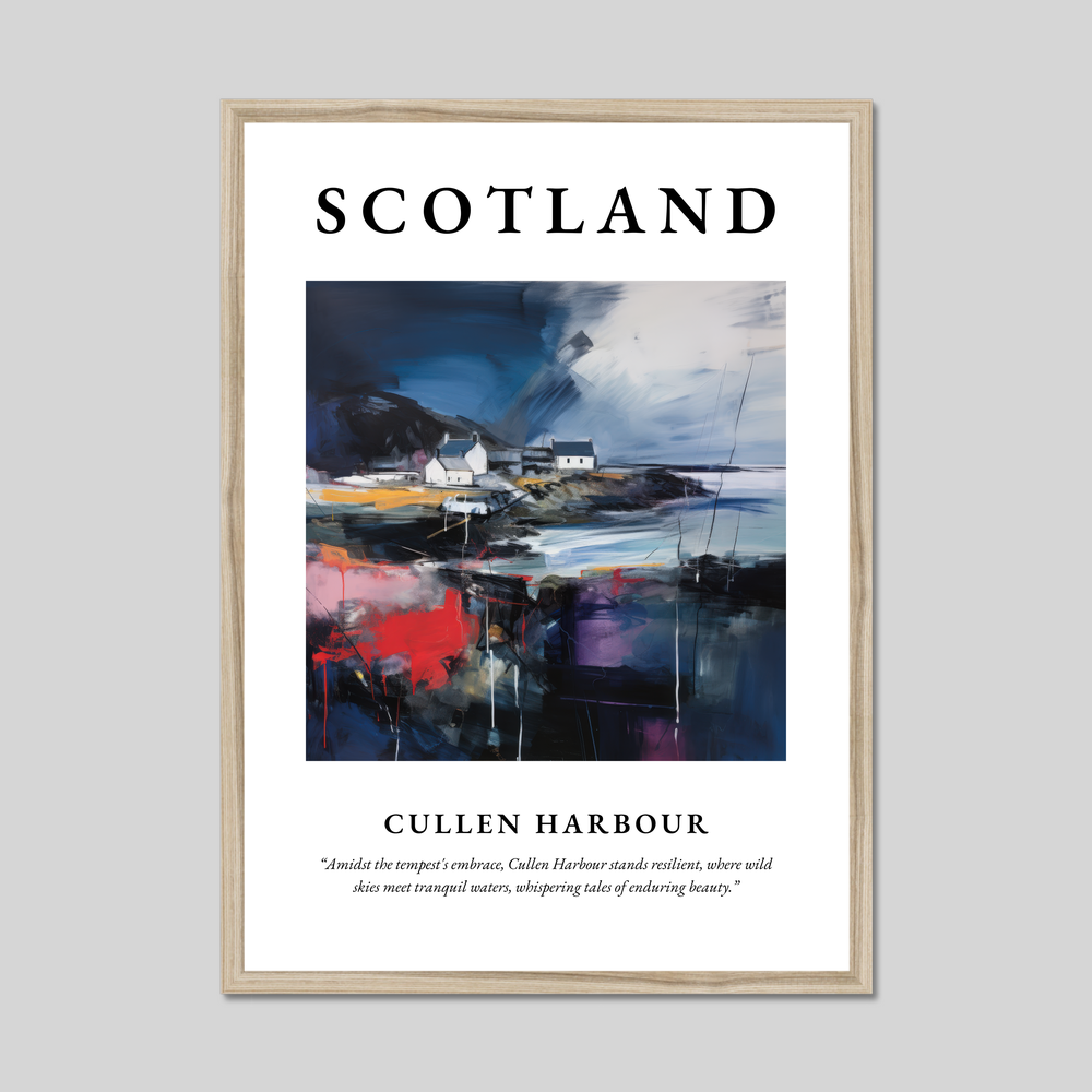 Enhance your space with an exquisite piece from our "Scottish Harbours" collection—a magnificent framed poster print that captures the essence of Cullen Harbour in an abstract style. Available in black, white, or natural wood-effect frames, this large 50cm x 70cm poster is designed to infuse any room with the spirit of Scotland, honouring its natural beauty and enduring allure.